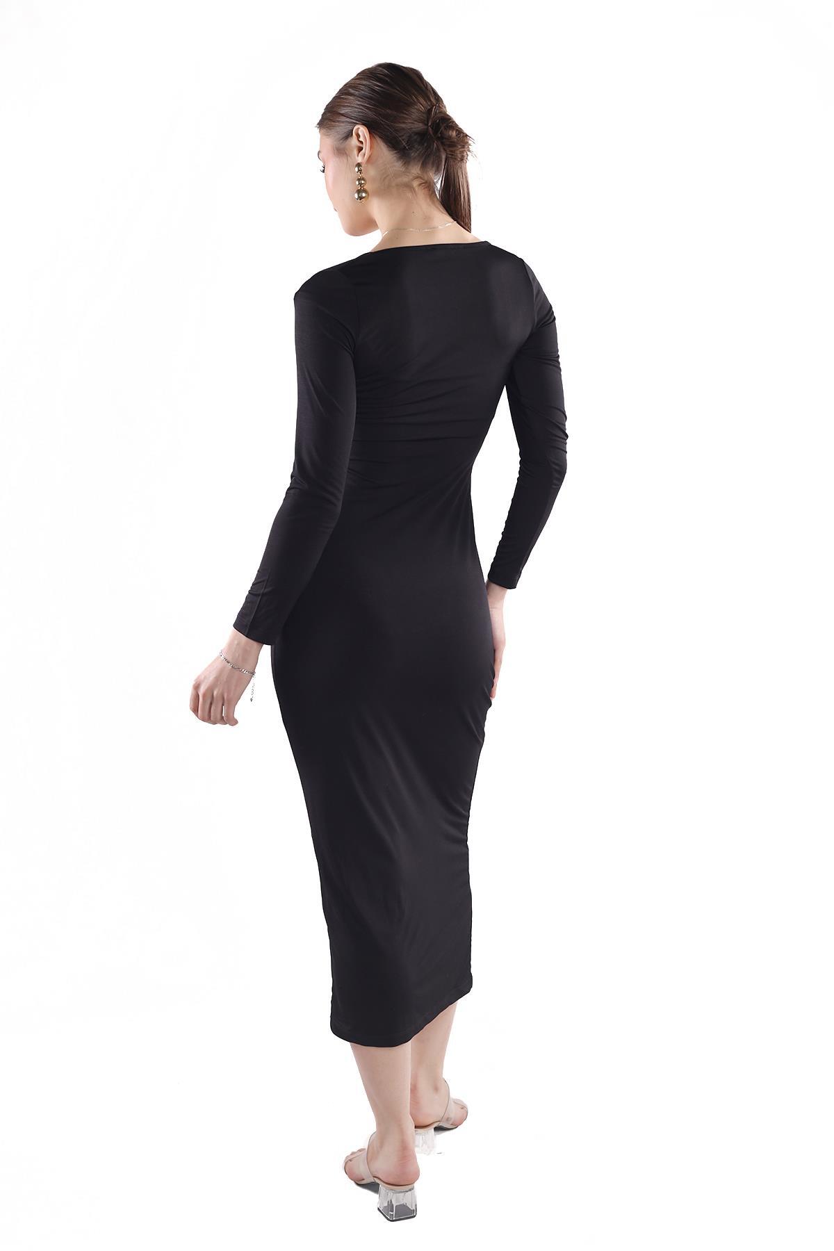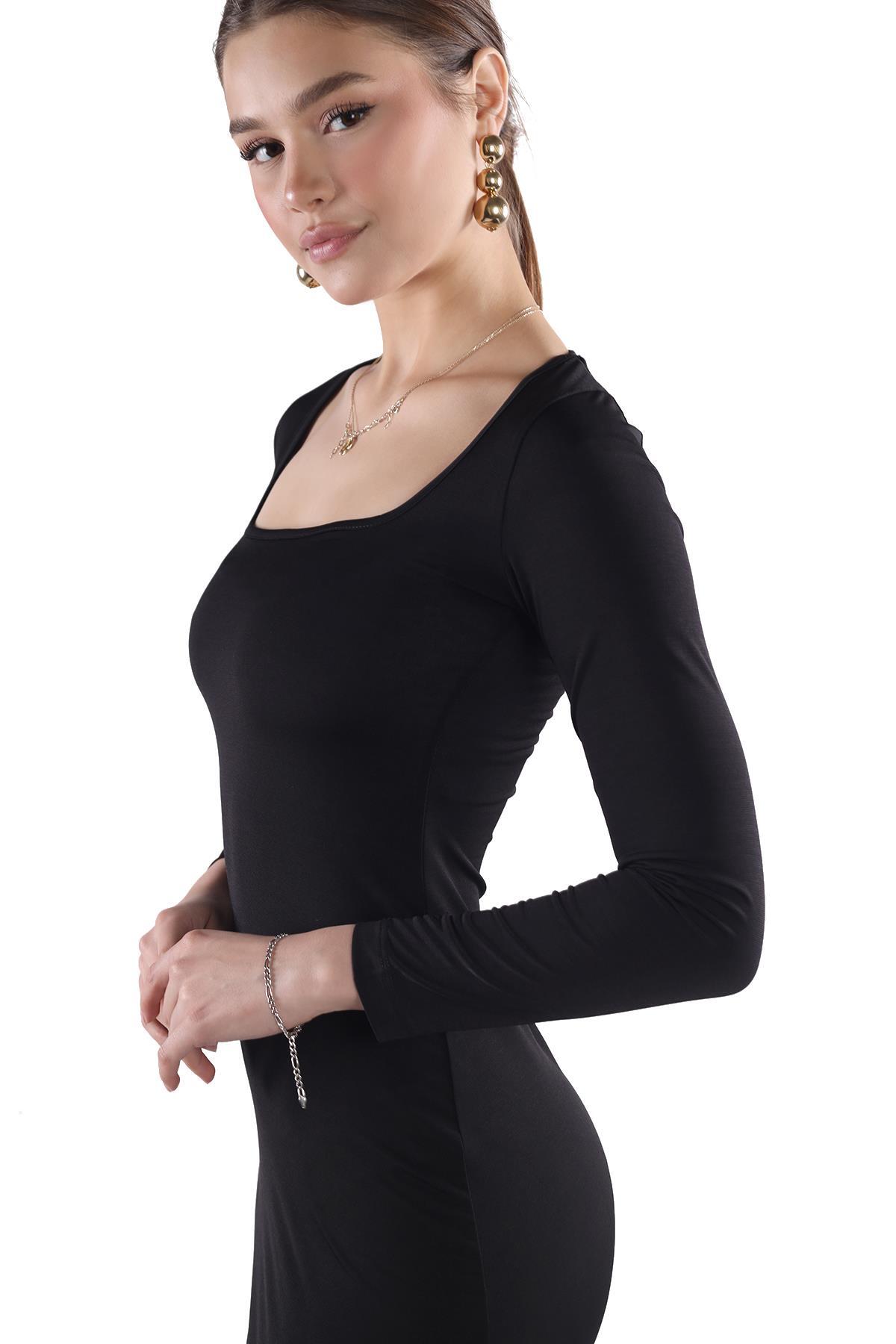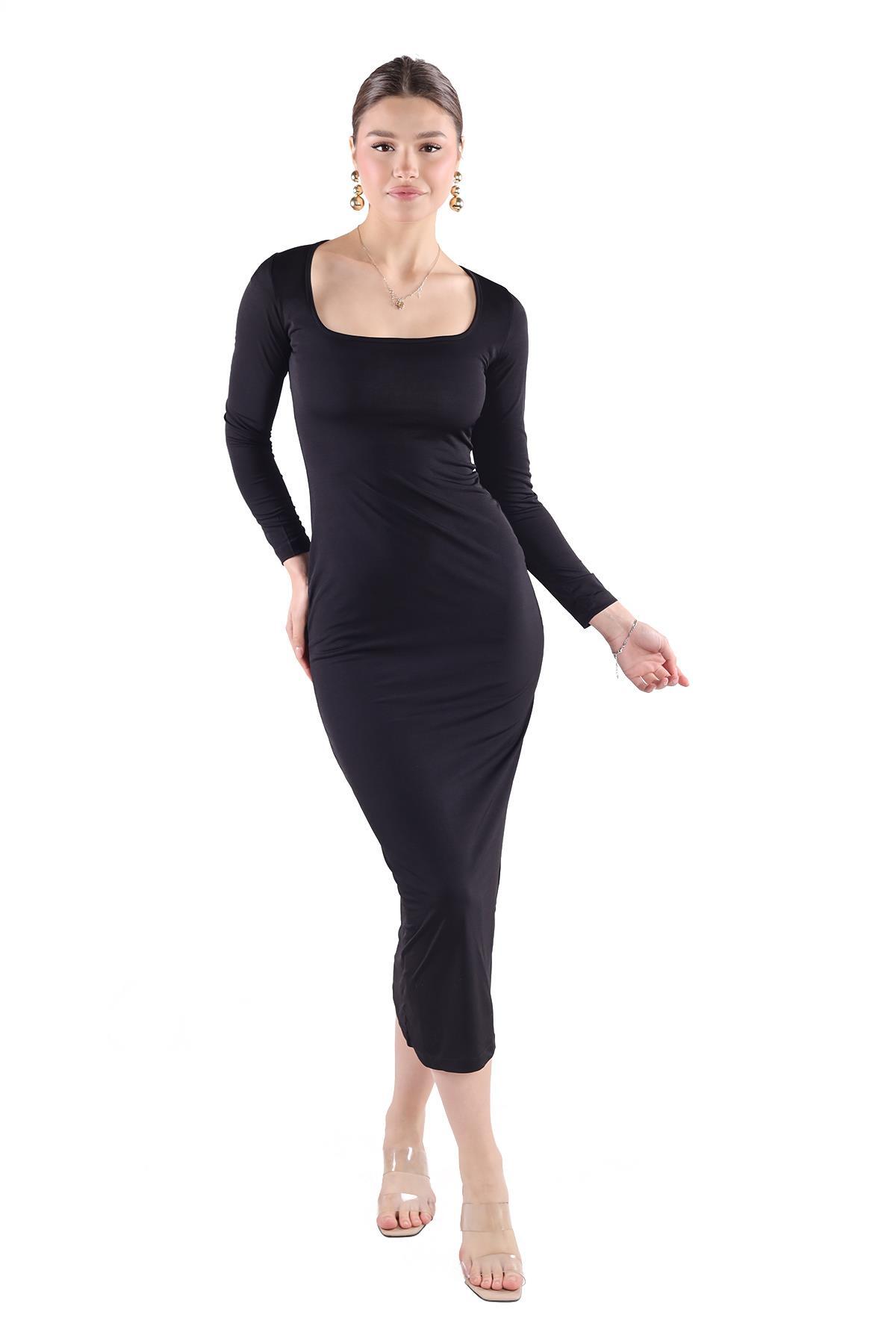 Siyah Kare Yaka Elbise 385