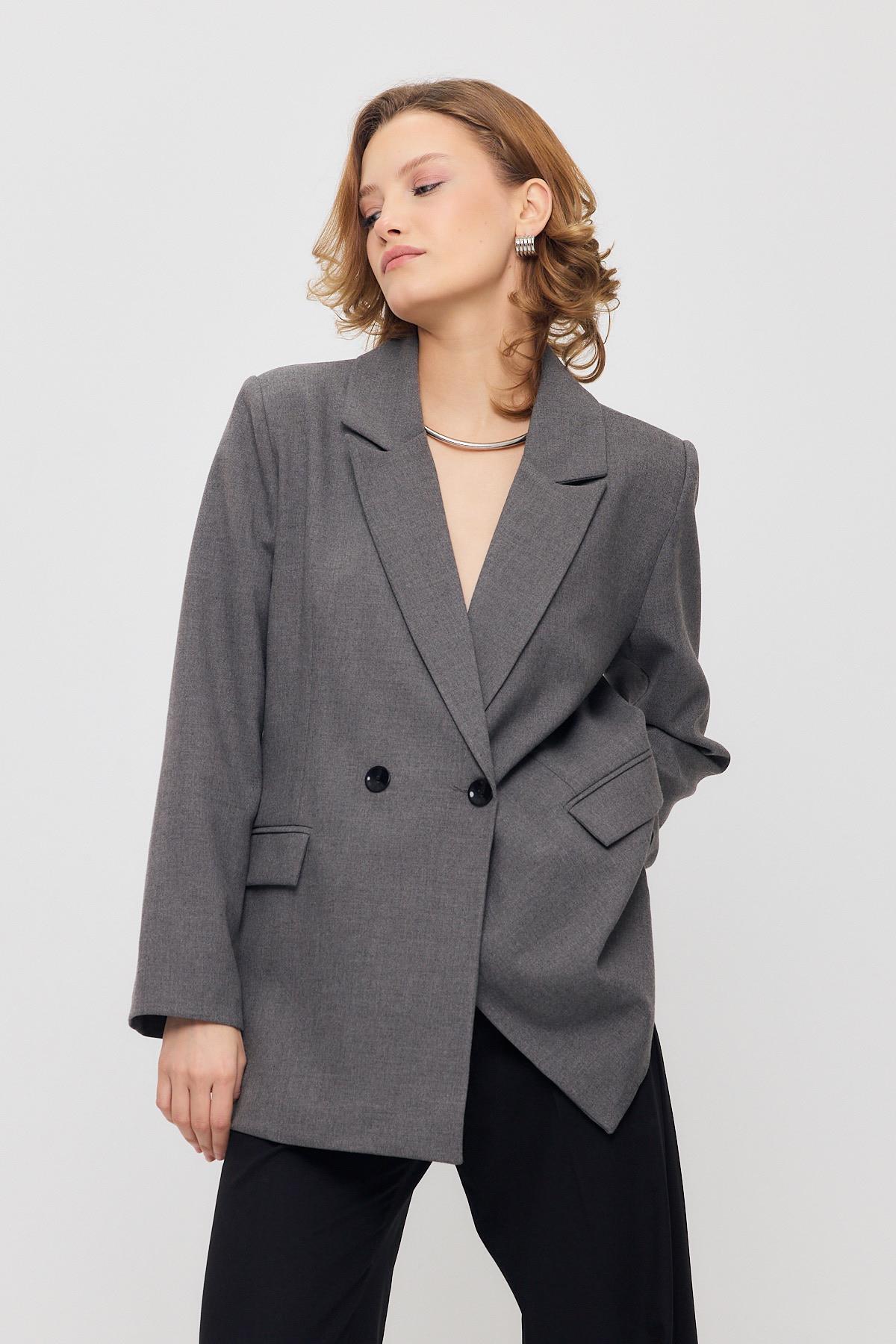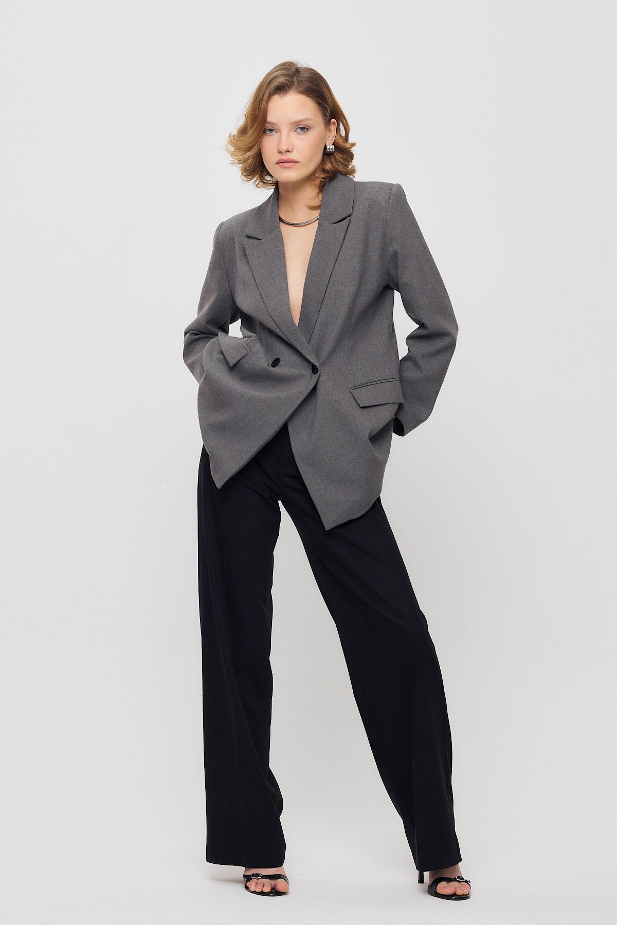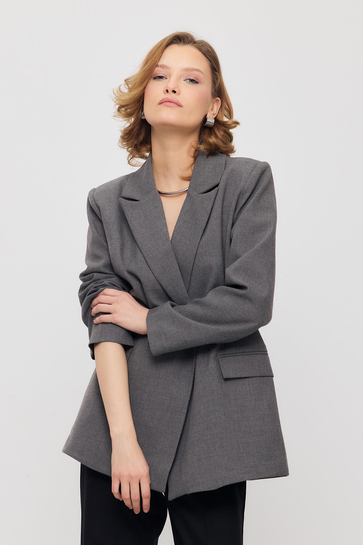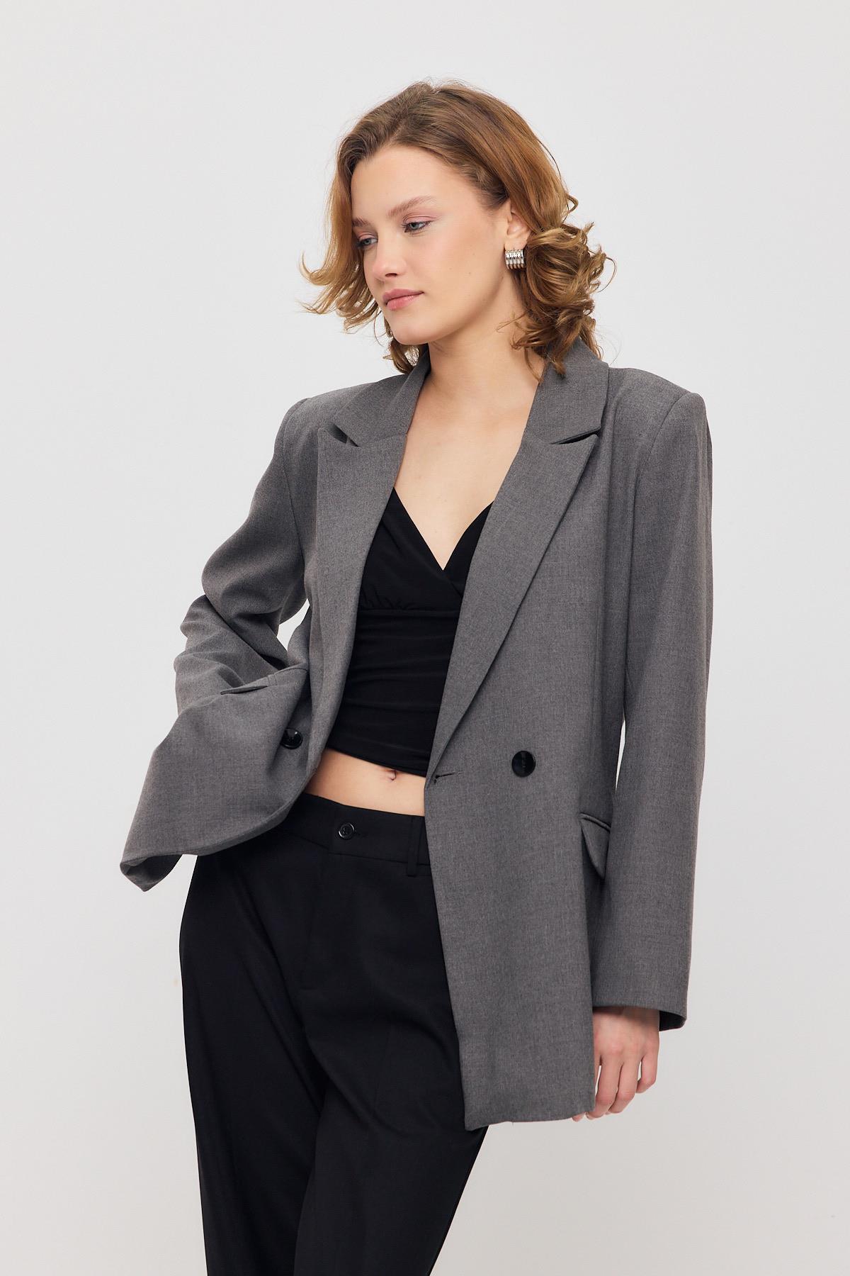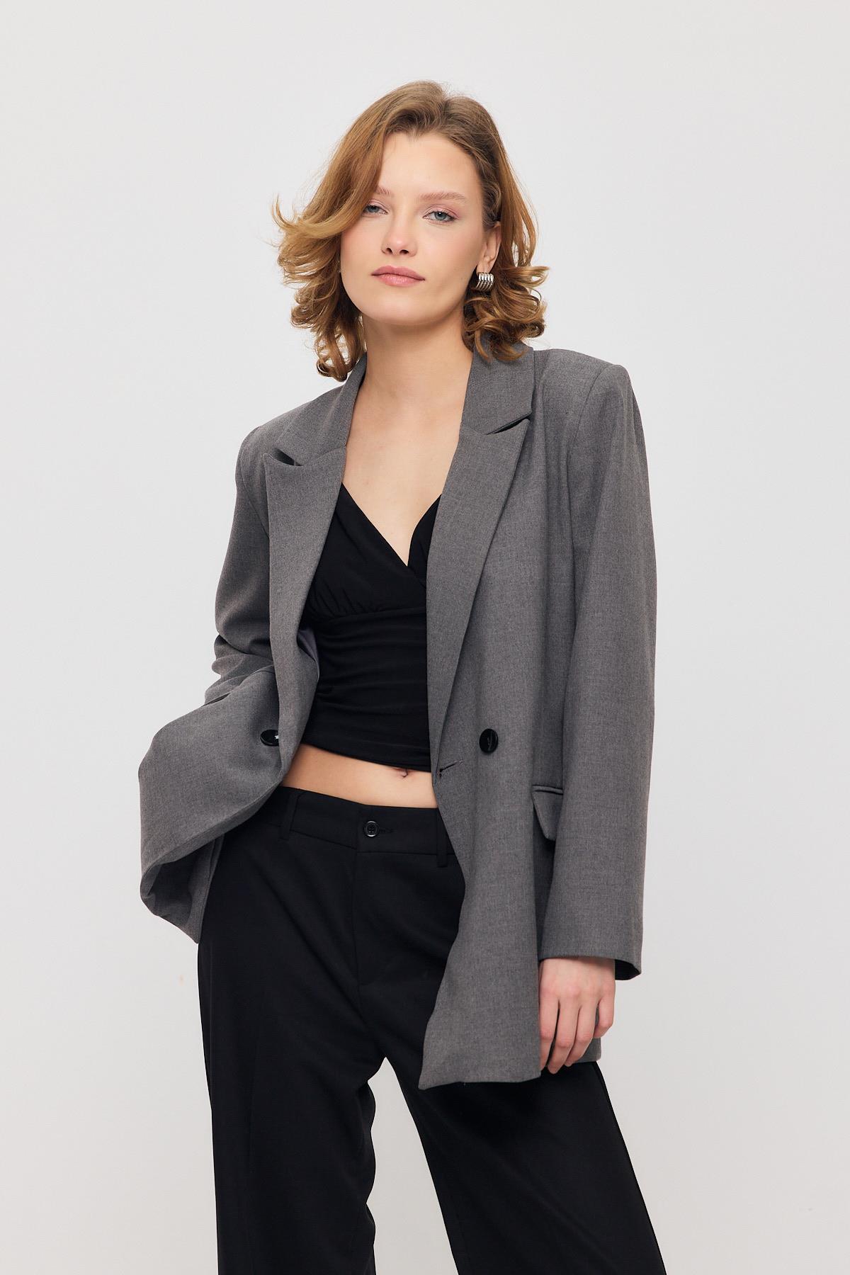 Gri Çift Düğme Cep Kapaklı Ceket 3882