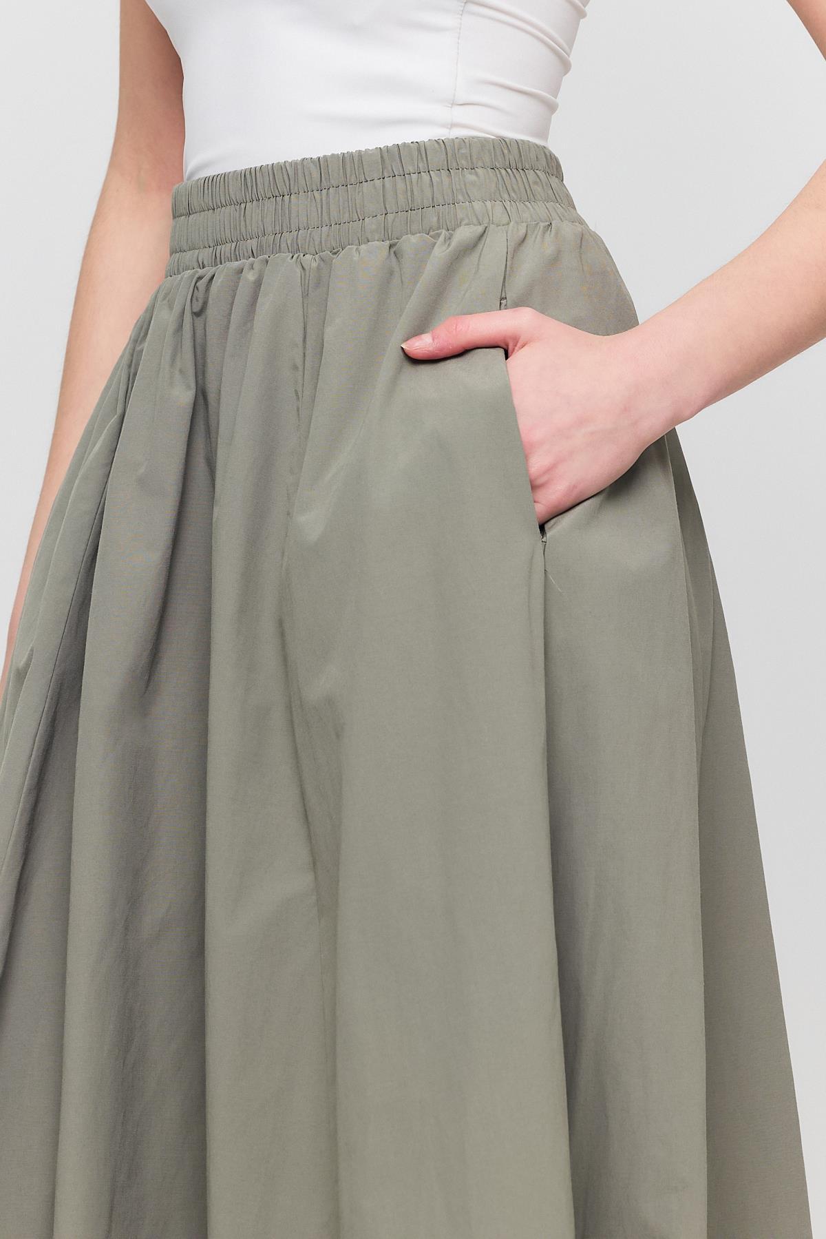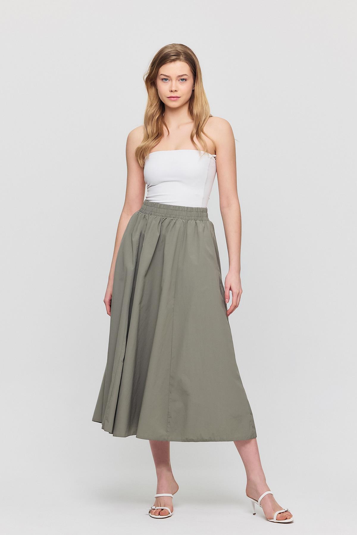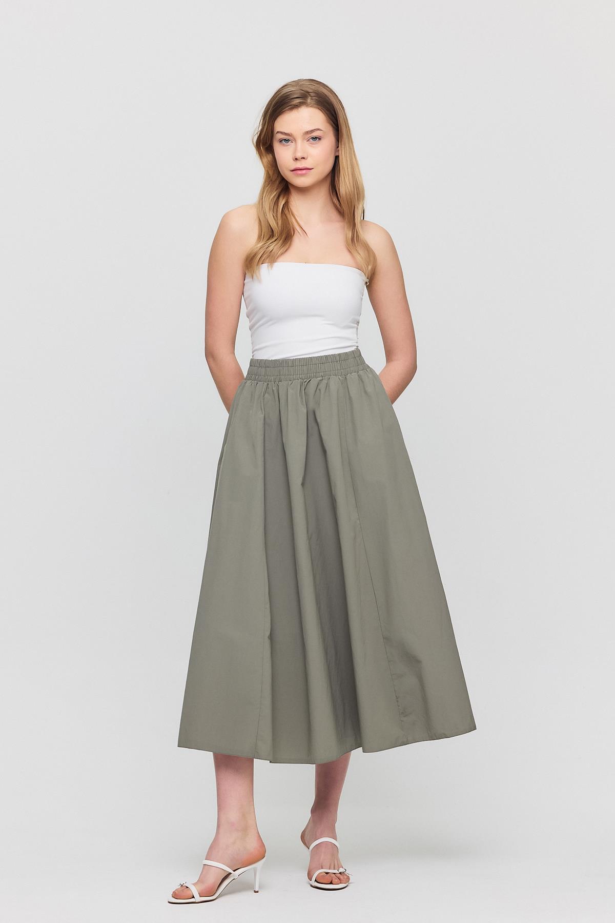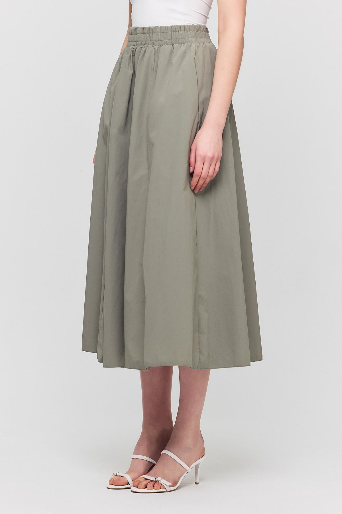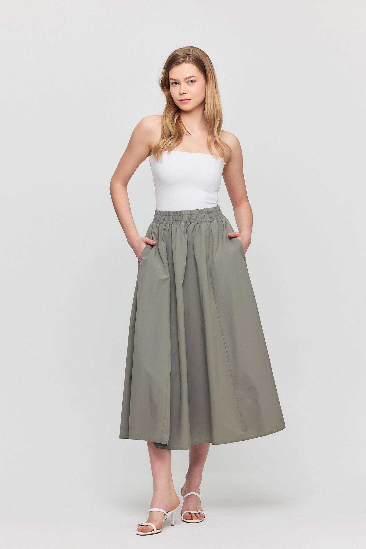 Olive Yeşili Cep Detay Mevlana Etek 3950