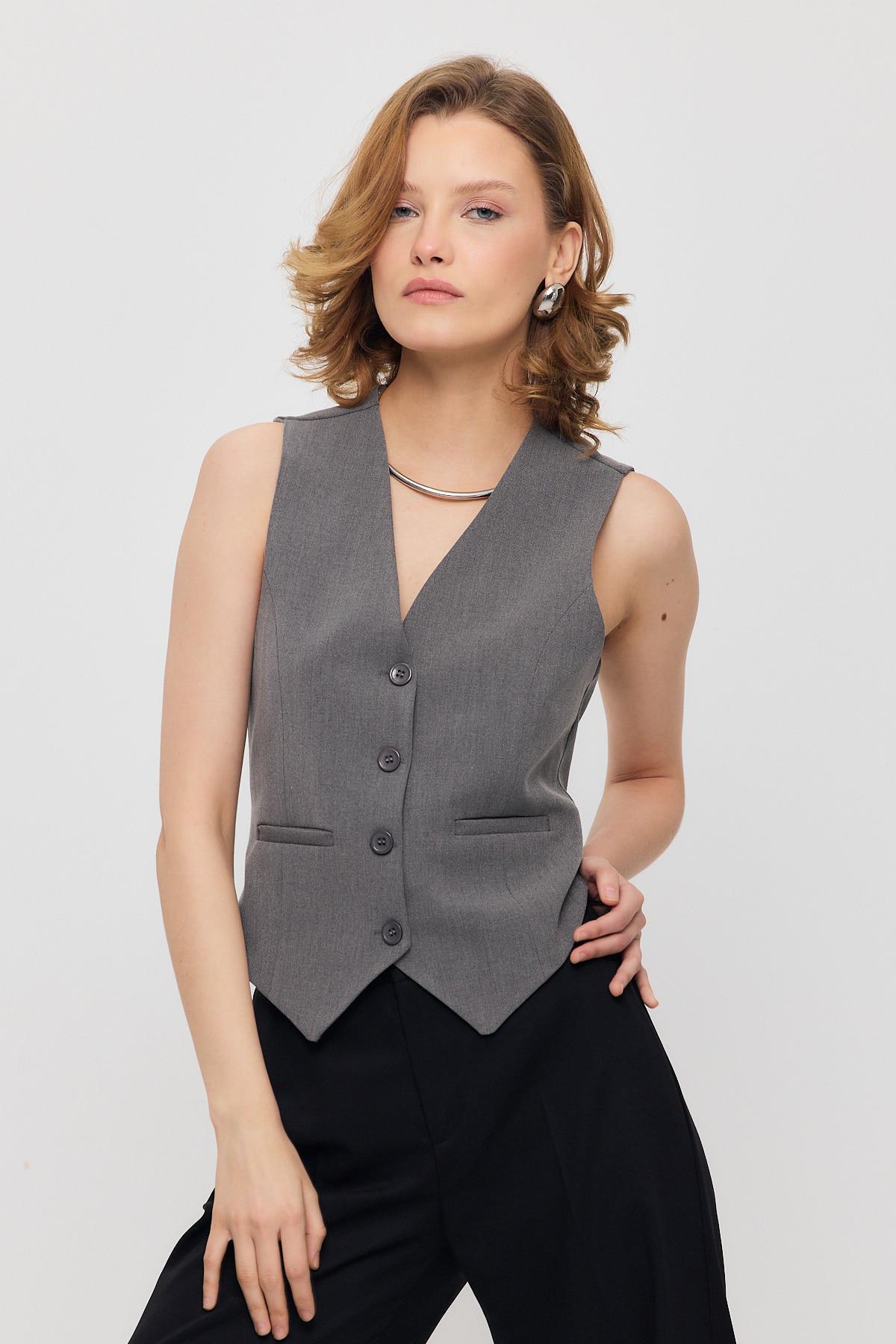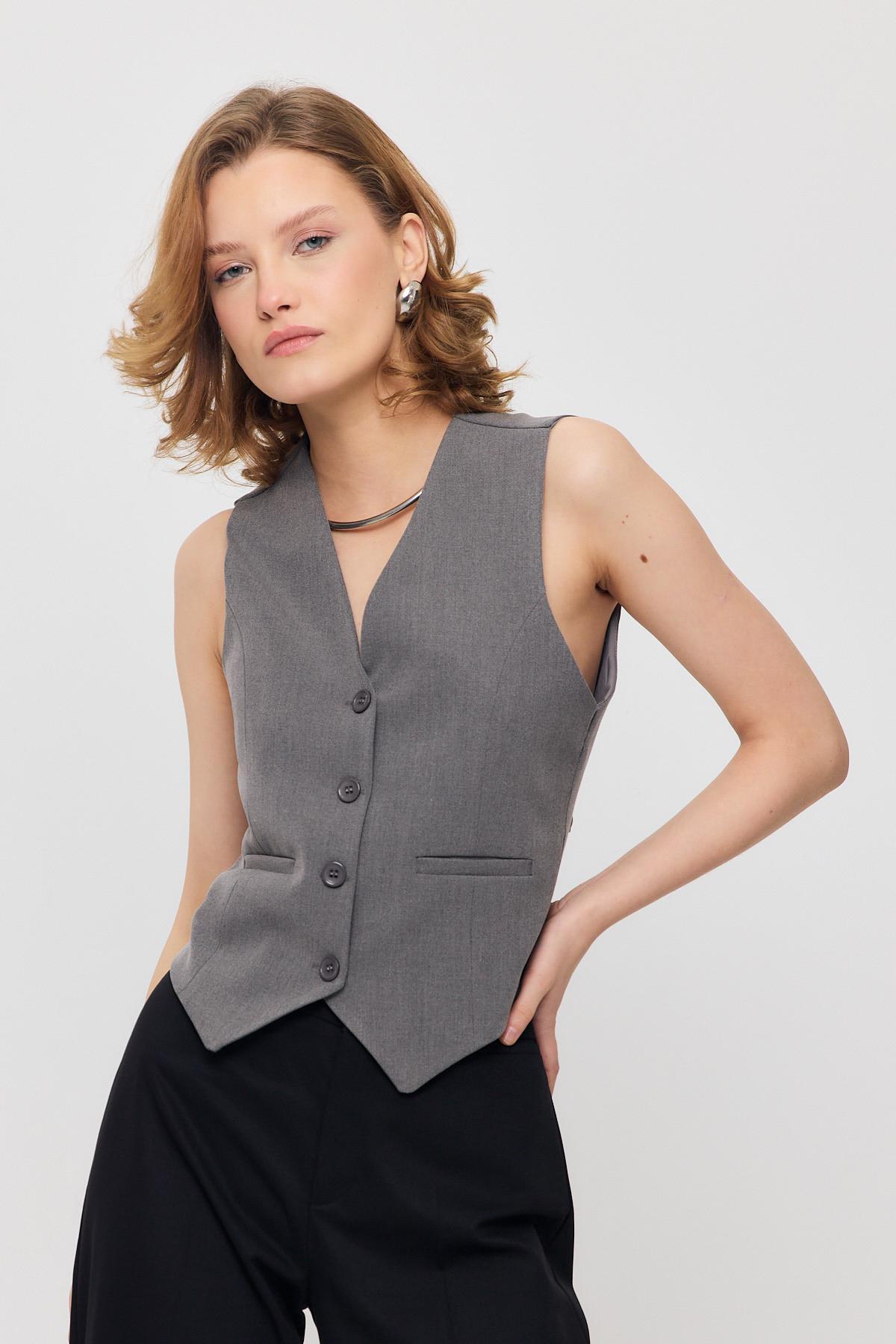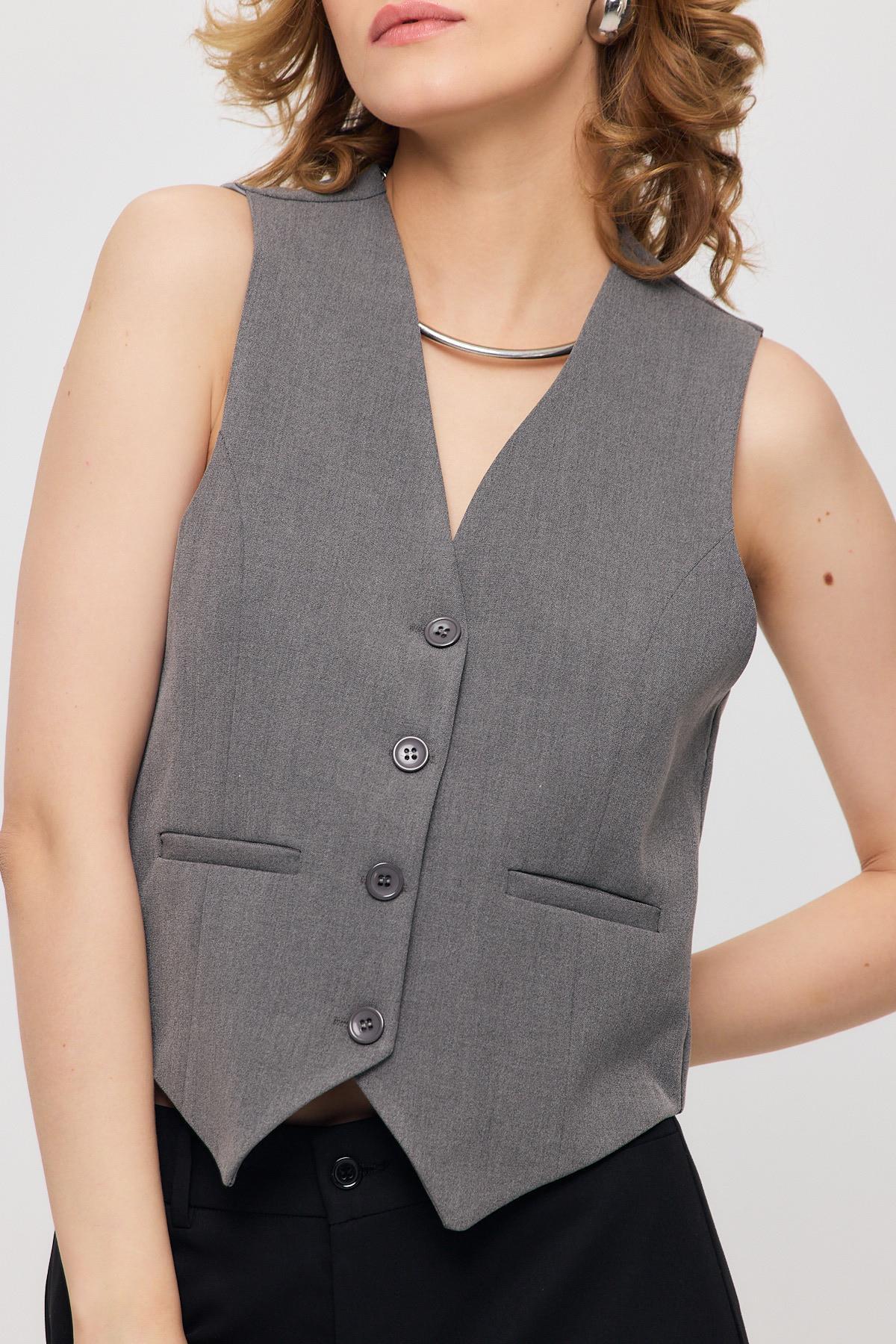 Gri Bel Kemer Detay Yelek 3953