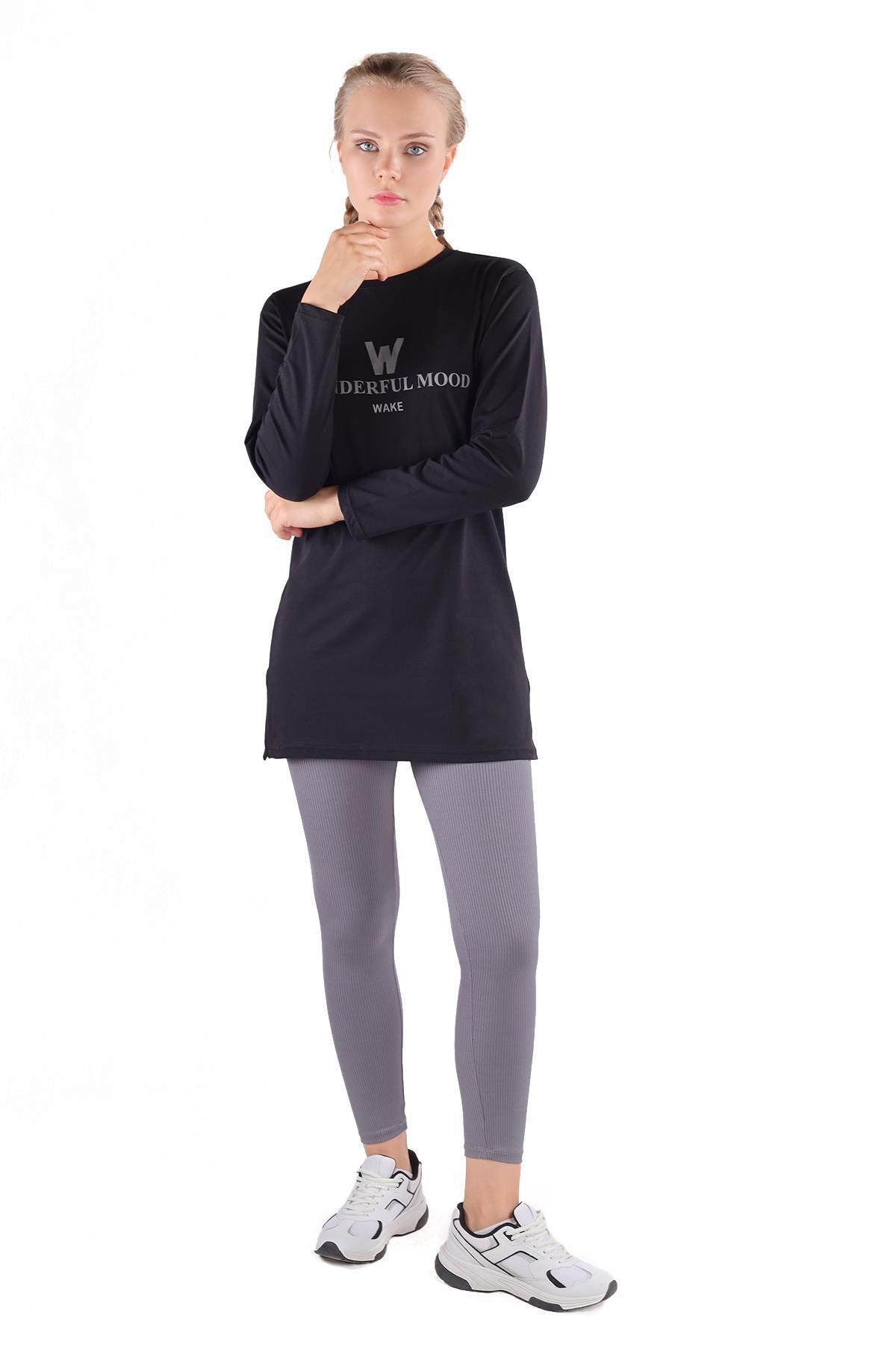 Siyah WonderFul Baskılı Uzun Kol Tunik 3981
