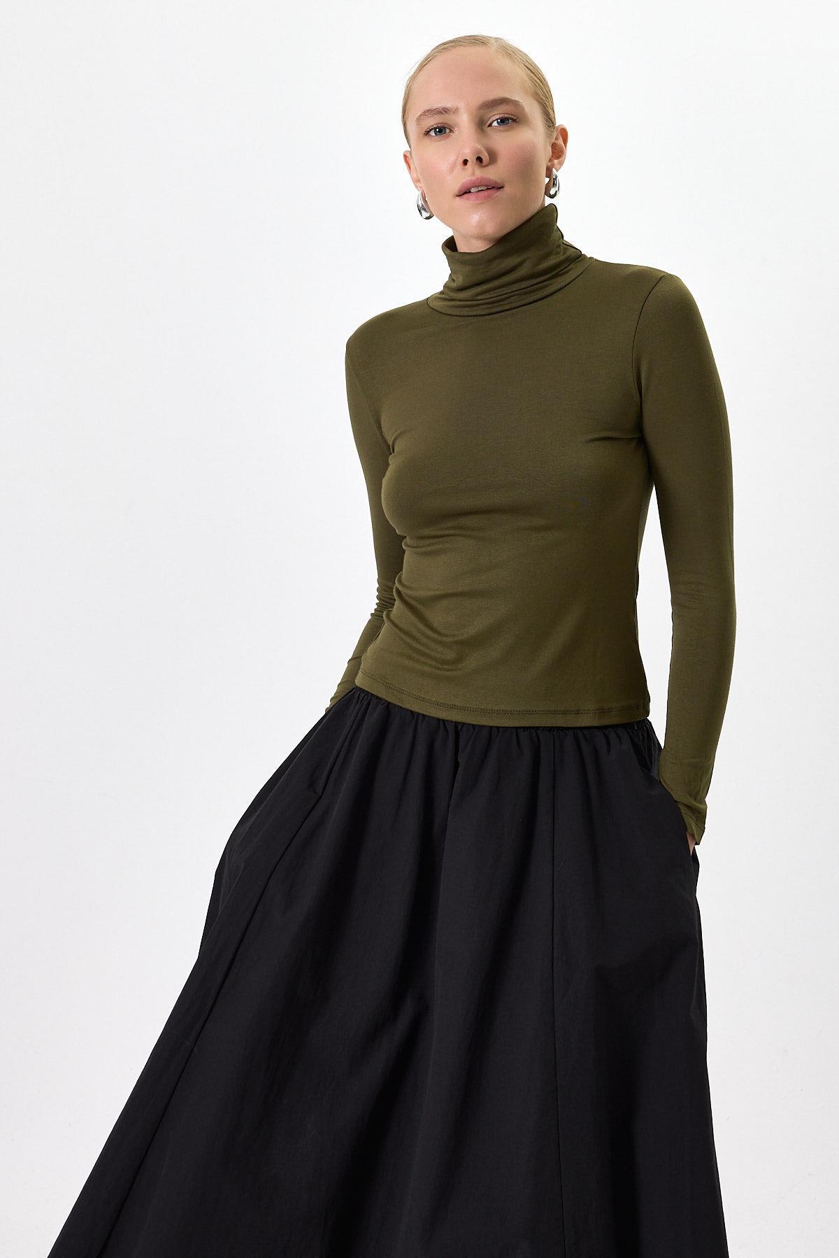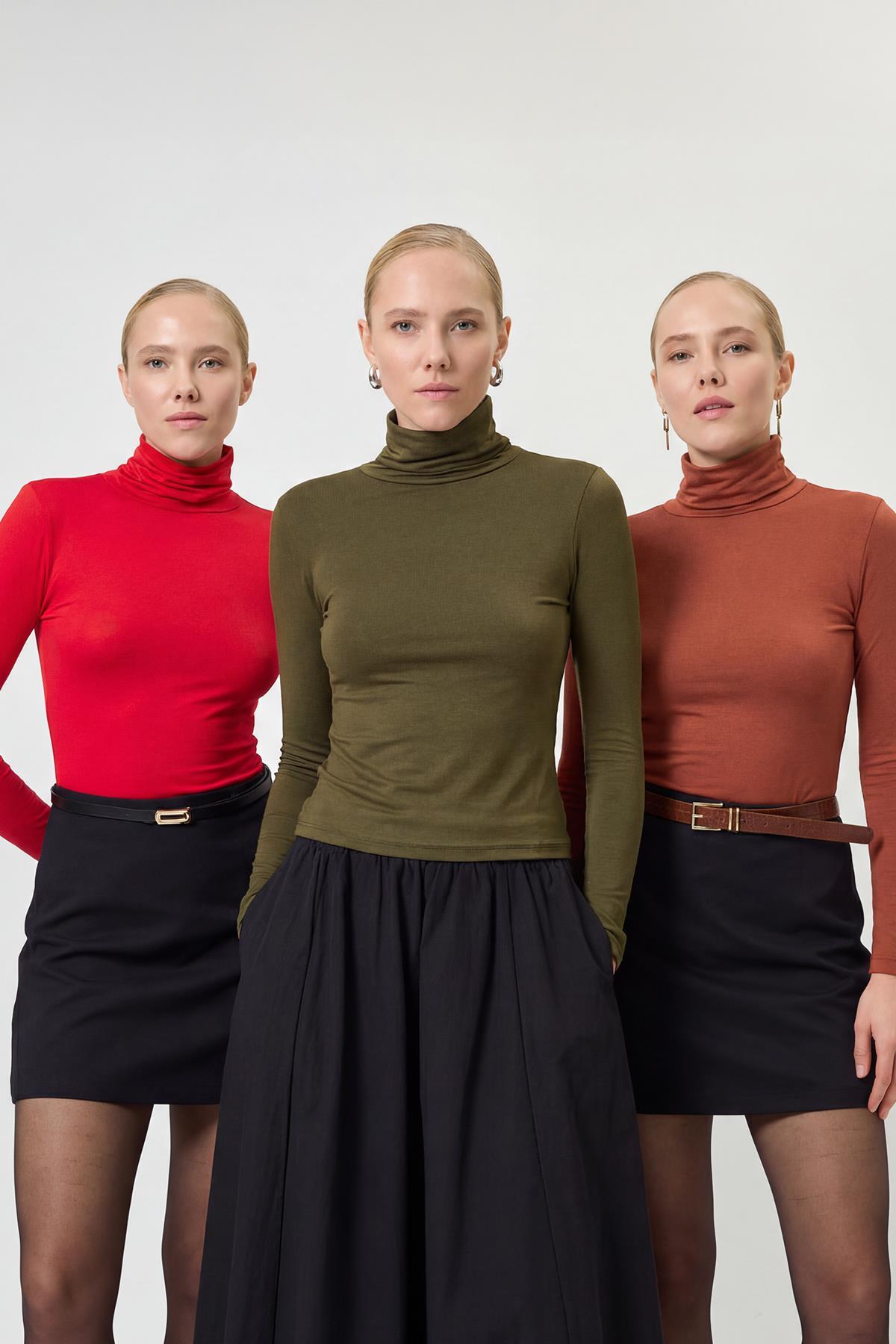 Haki-Kiremit-Kırmızı Balıkçı Yaka Bluz 2504