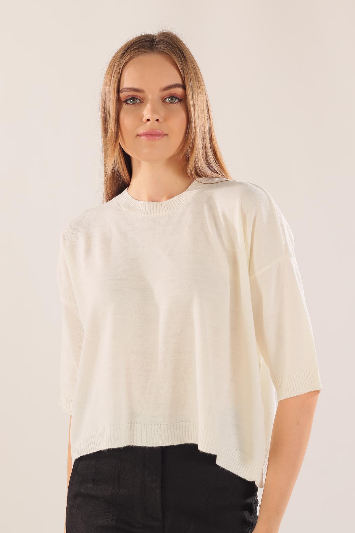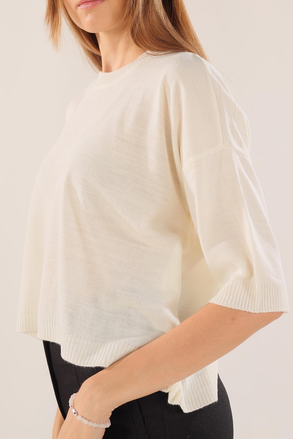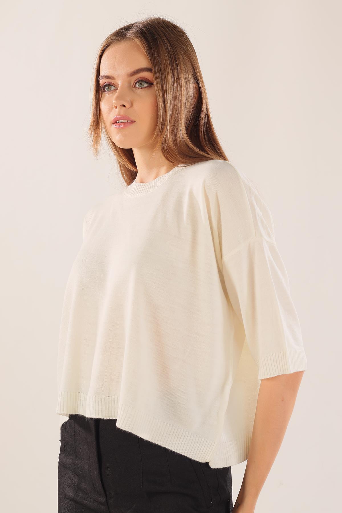 Ekru Yarım Kol Triko Kazak 400