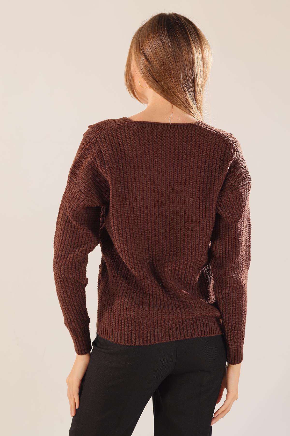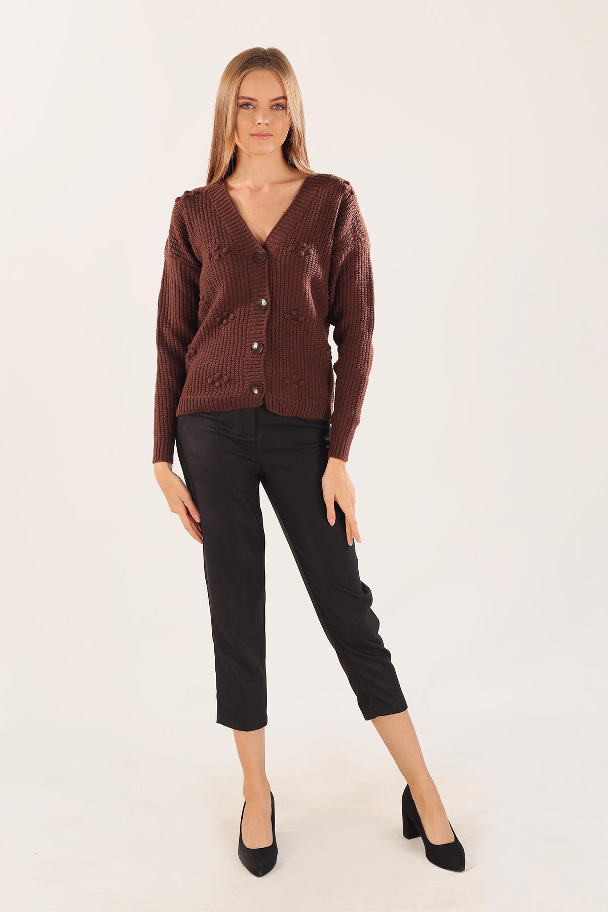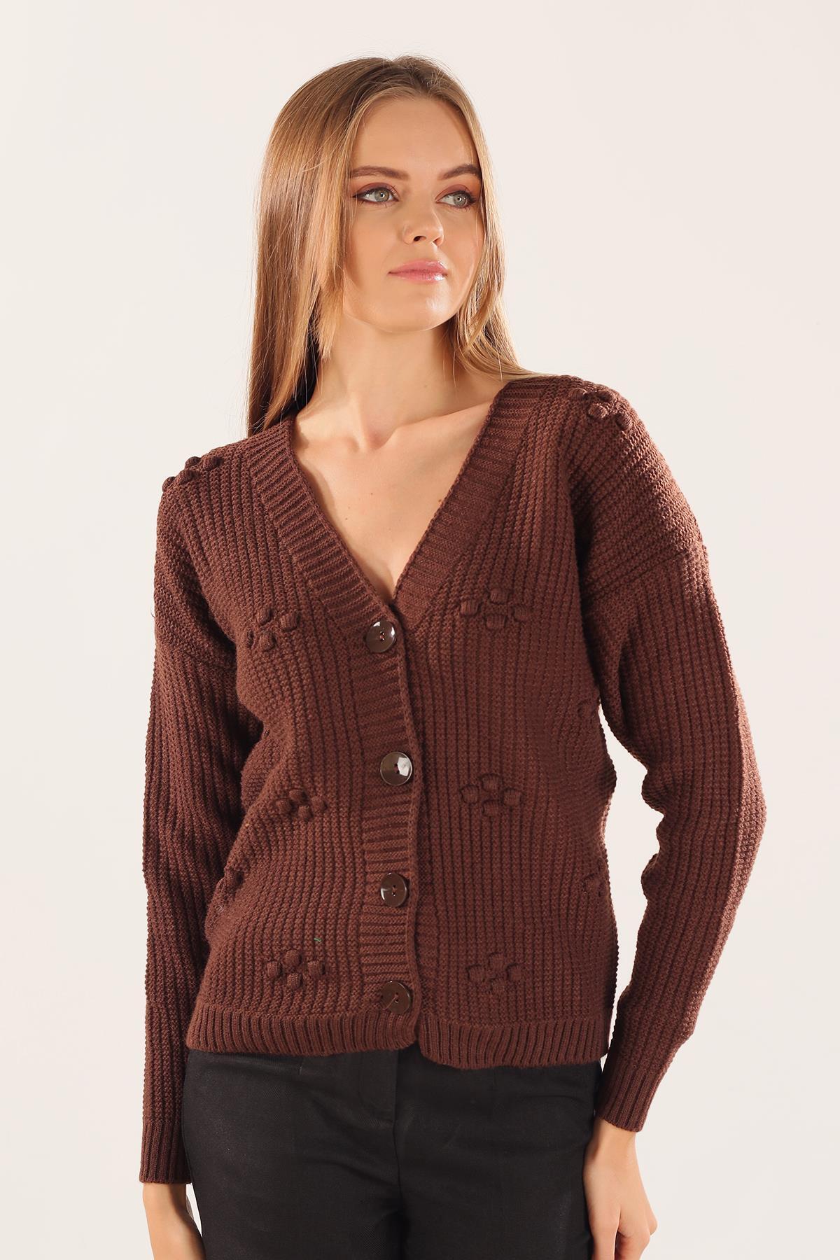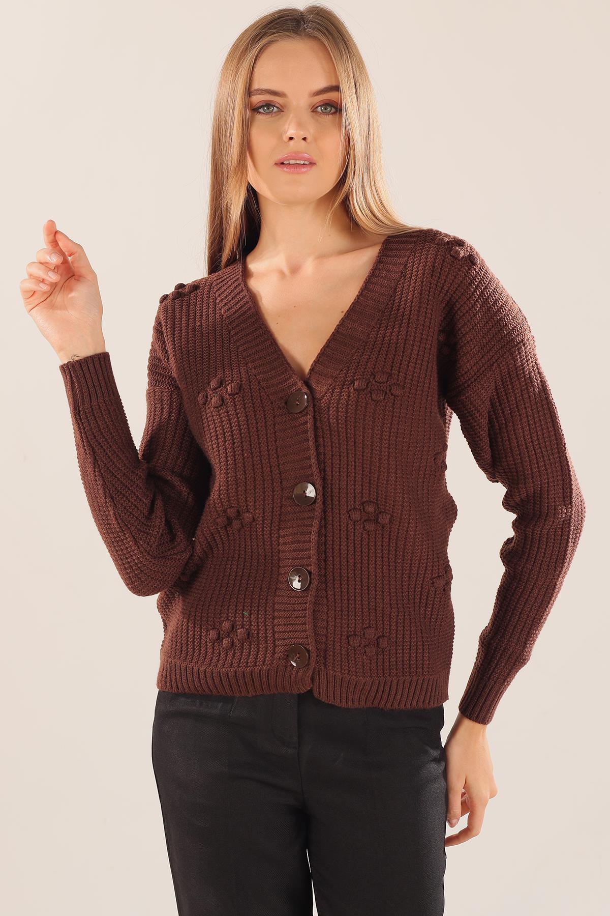 Acı Kahve Kabartma Desen Düğmeli Hırka 4002