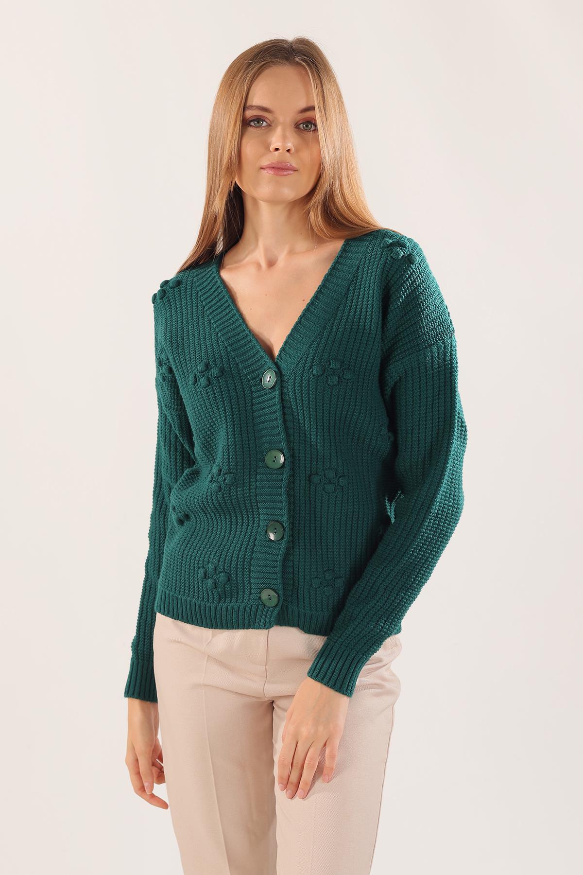 4002 Kabartma Desen Düğmeli Hırka Nefti
