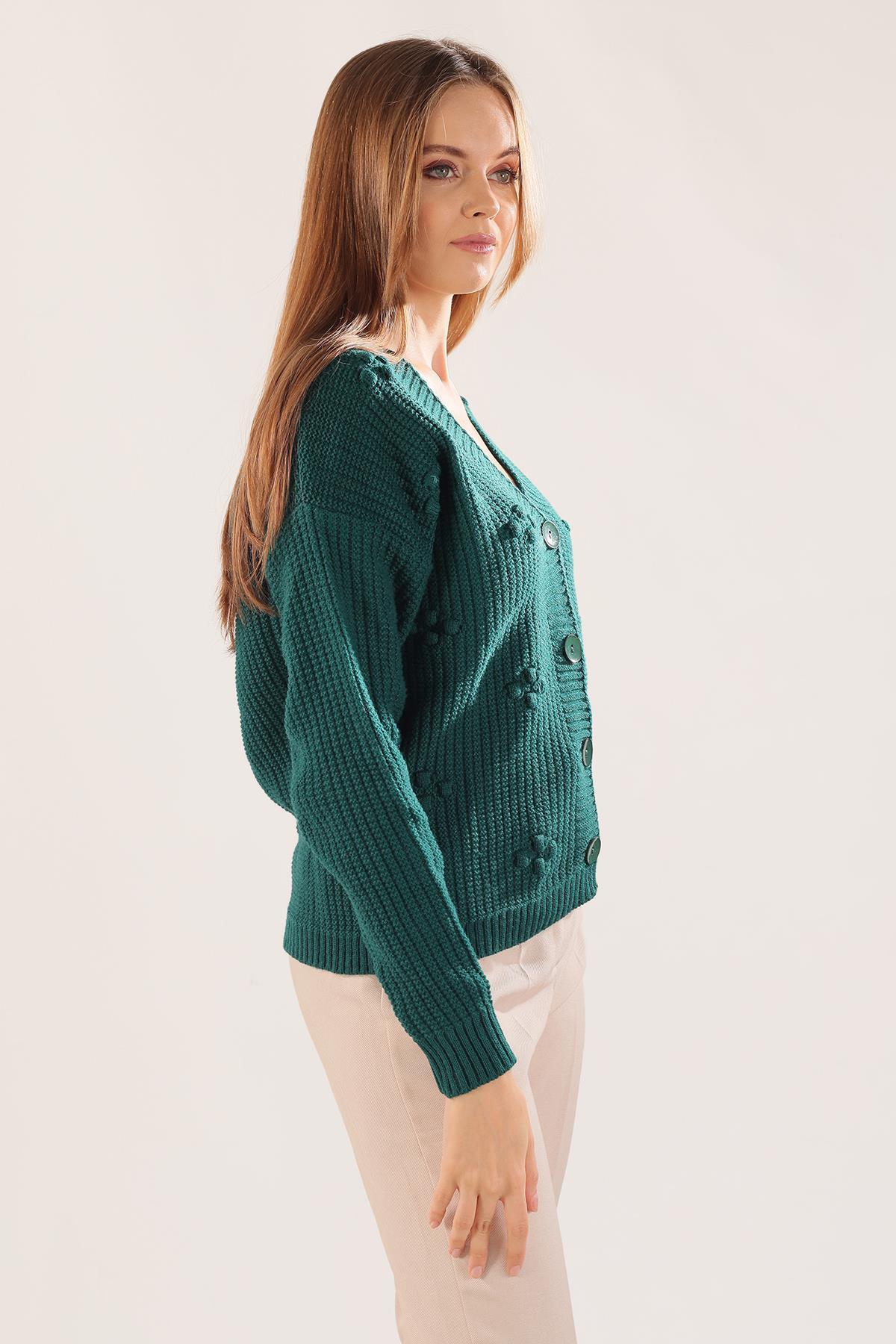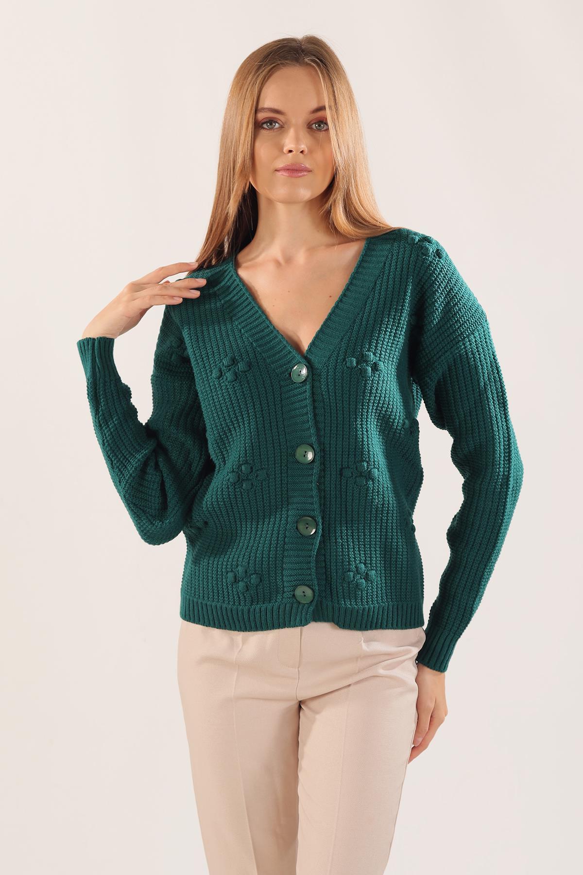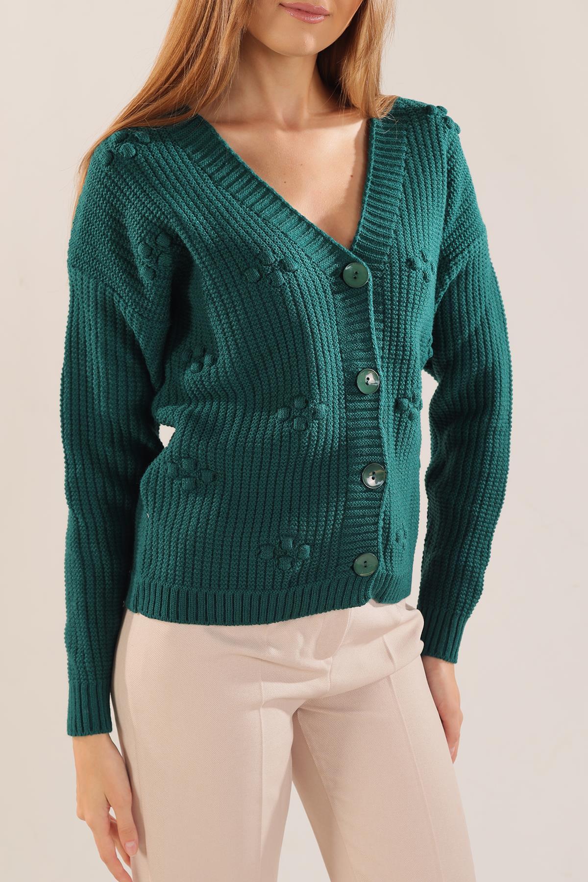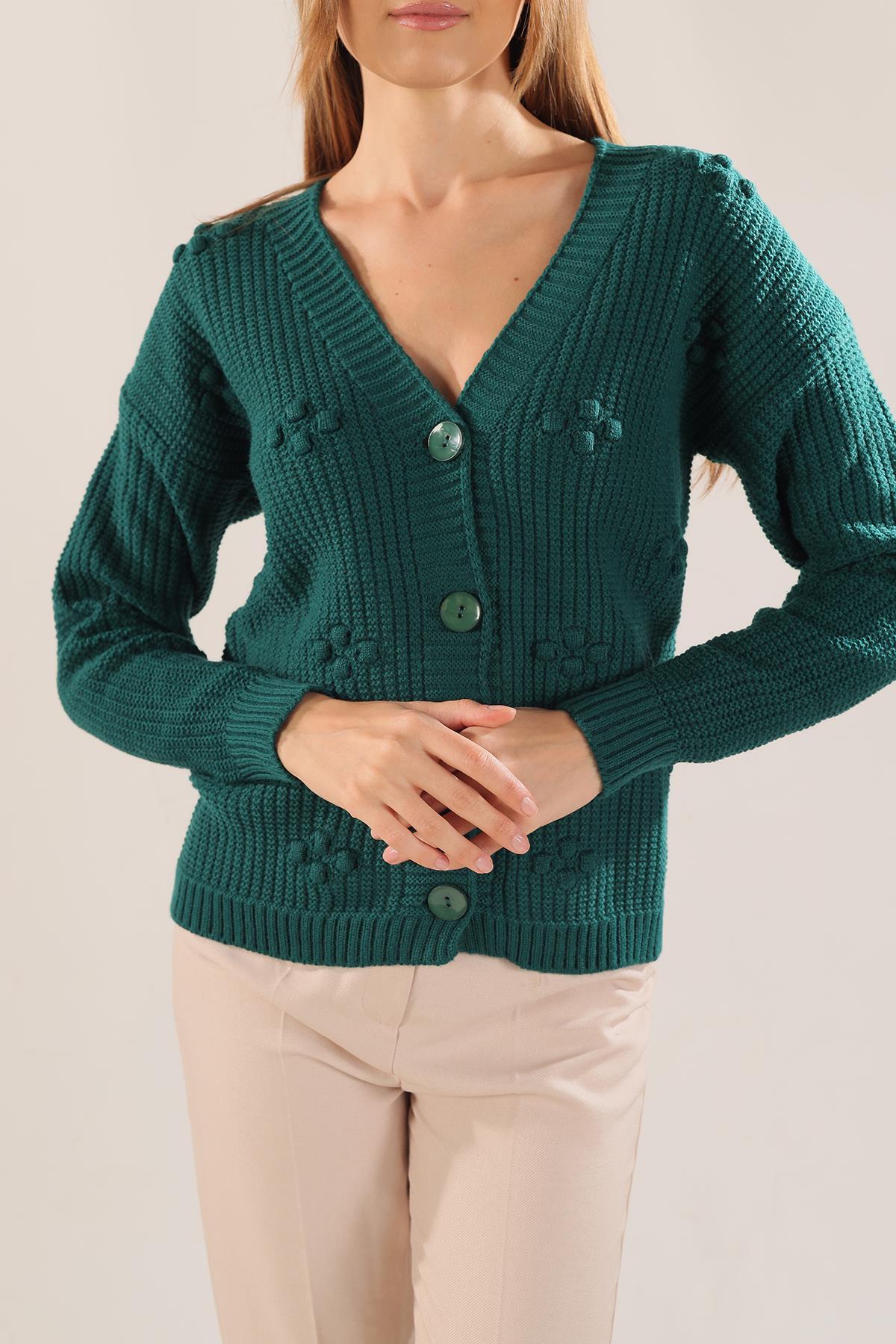 Nefti Kabartma Desen Düğmeli Hırka 4002