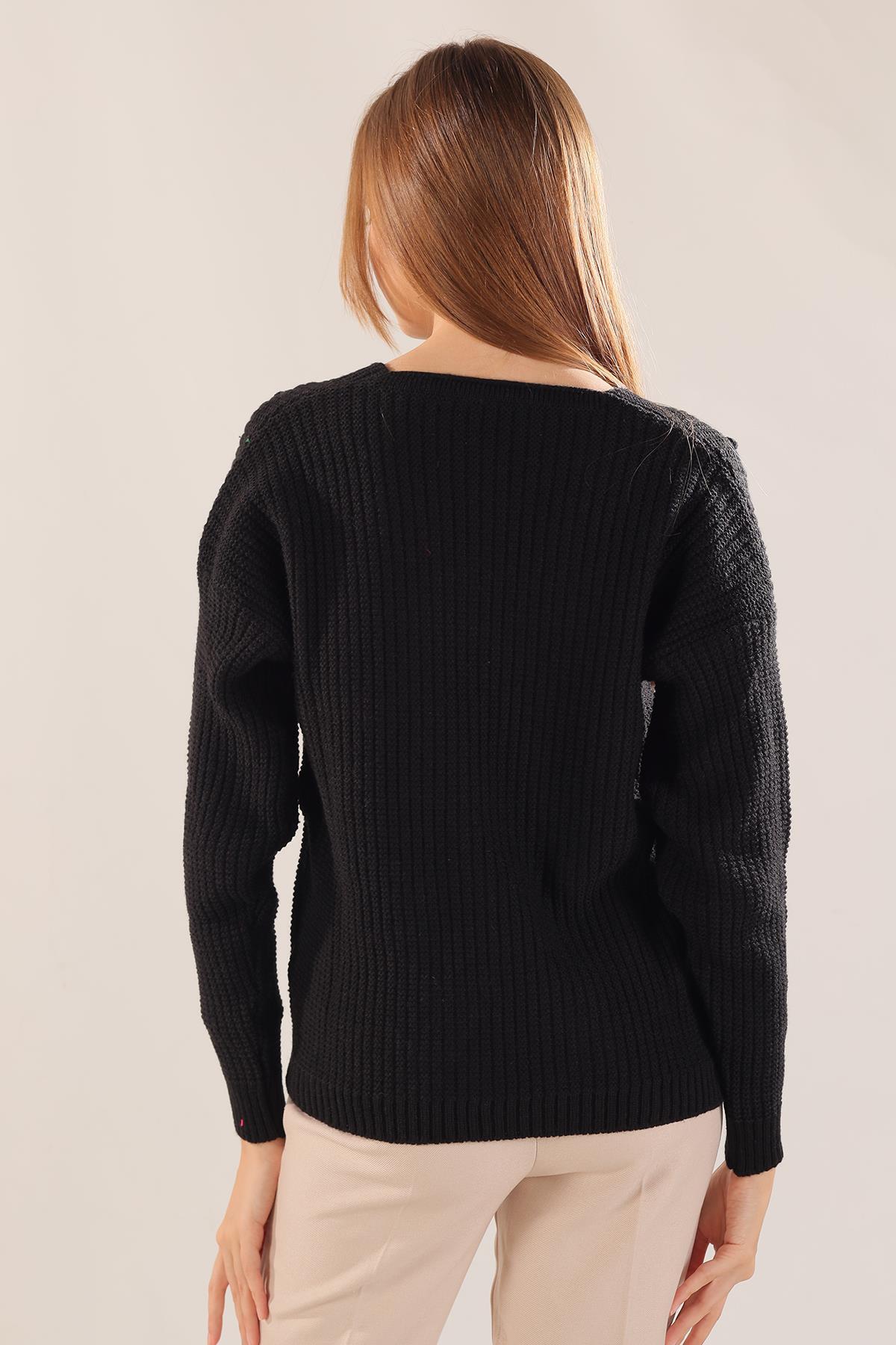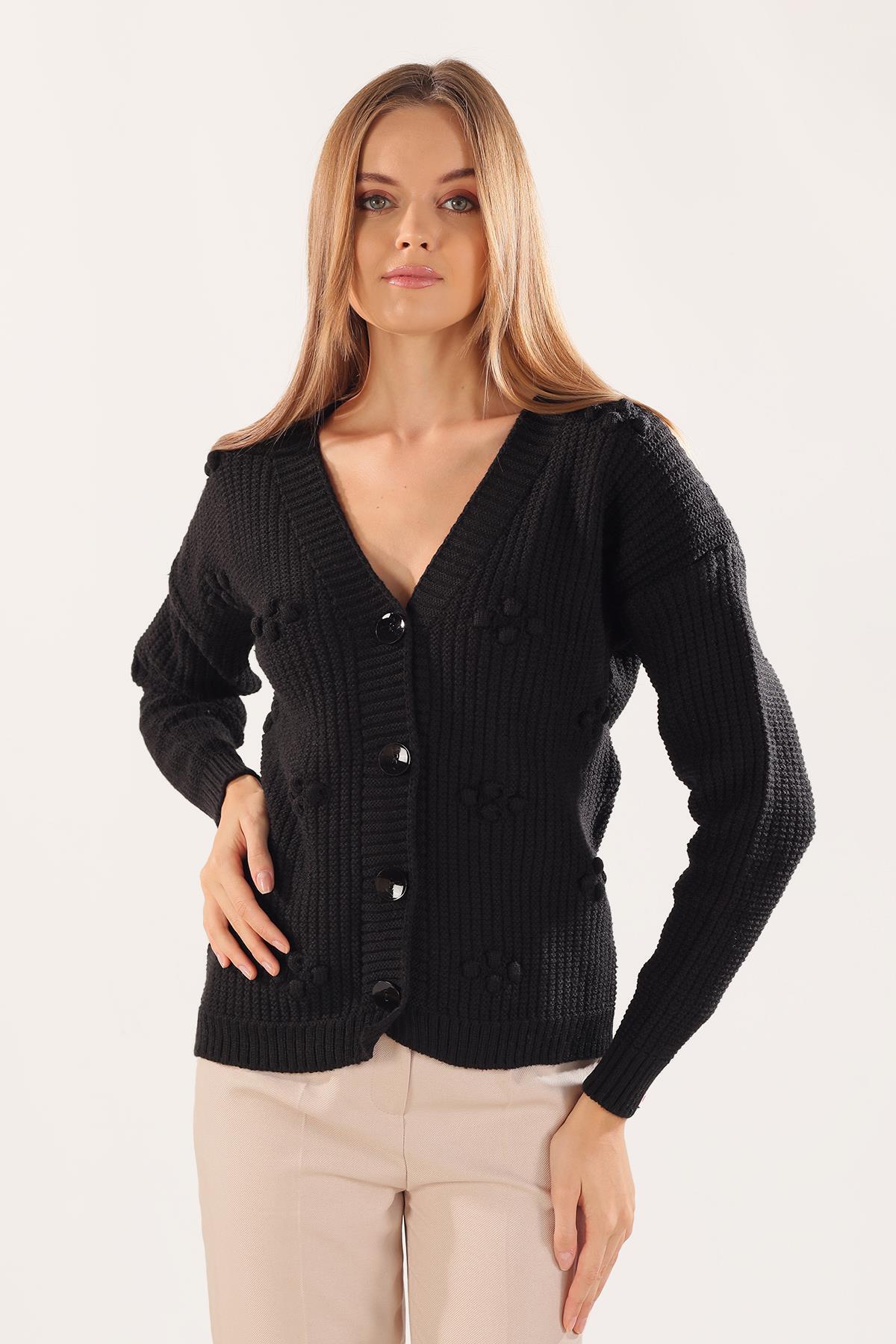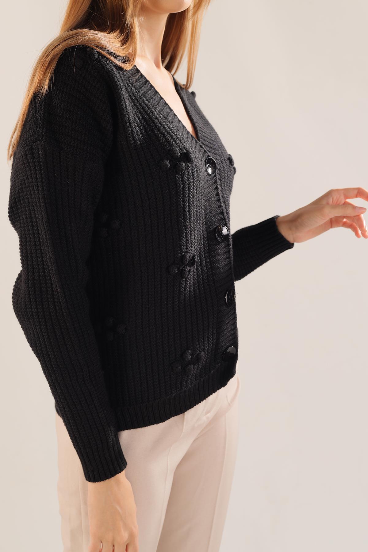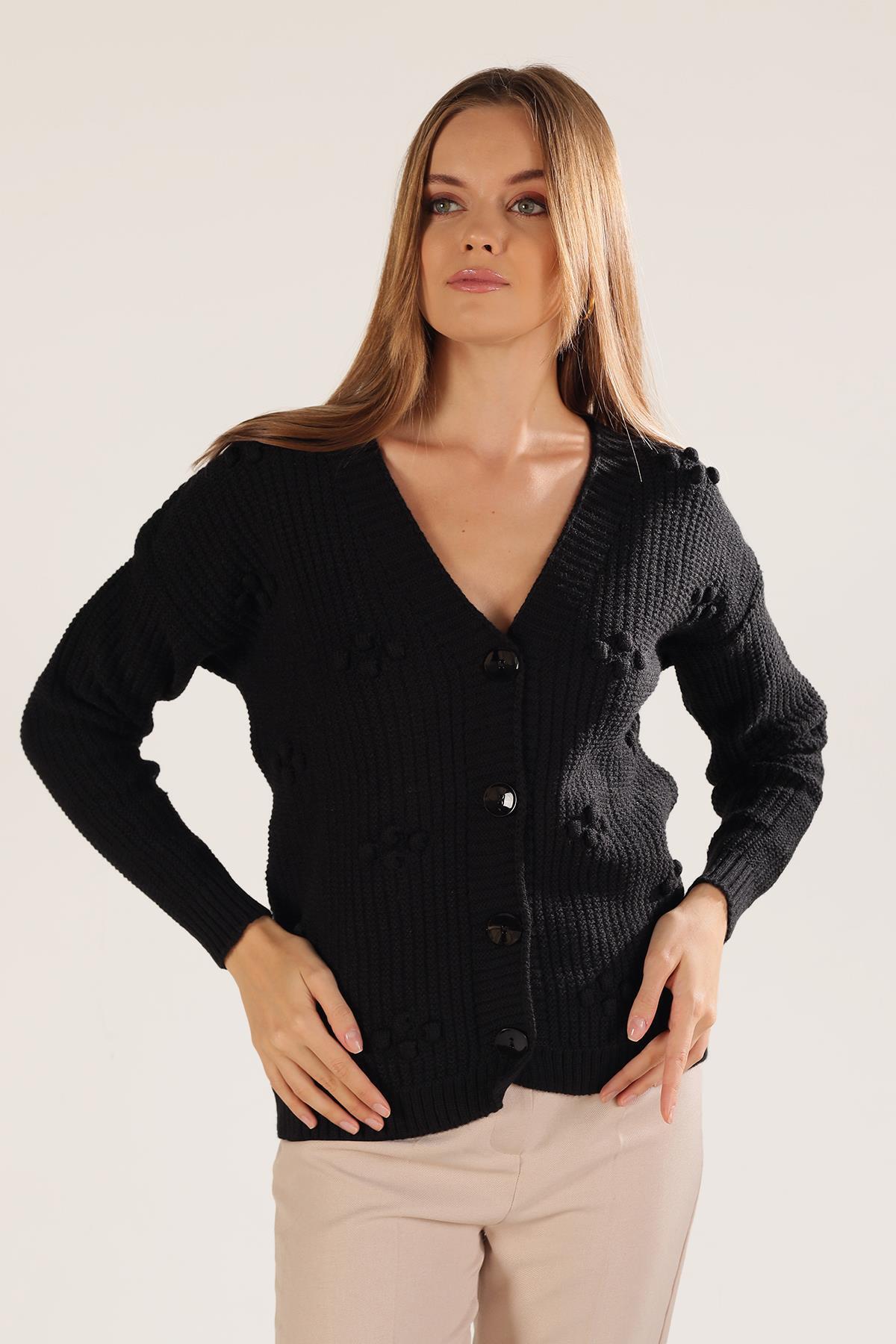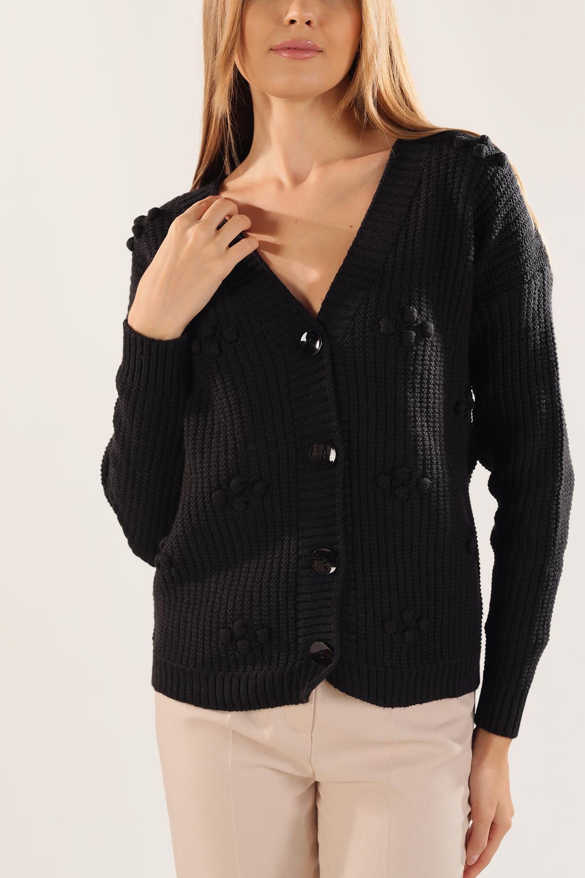 Siyah Kabartma Desen Düğmeli Hırka 4002