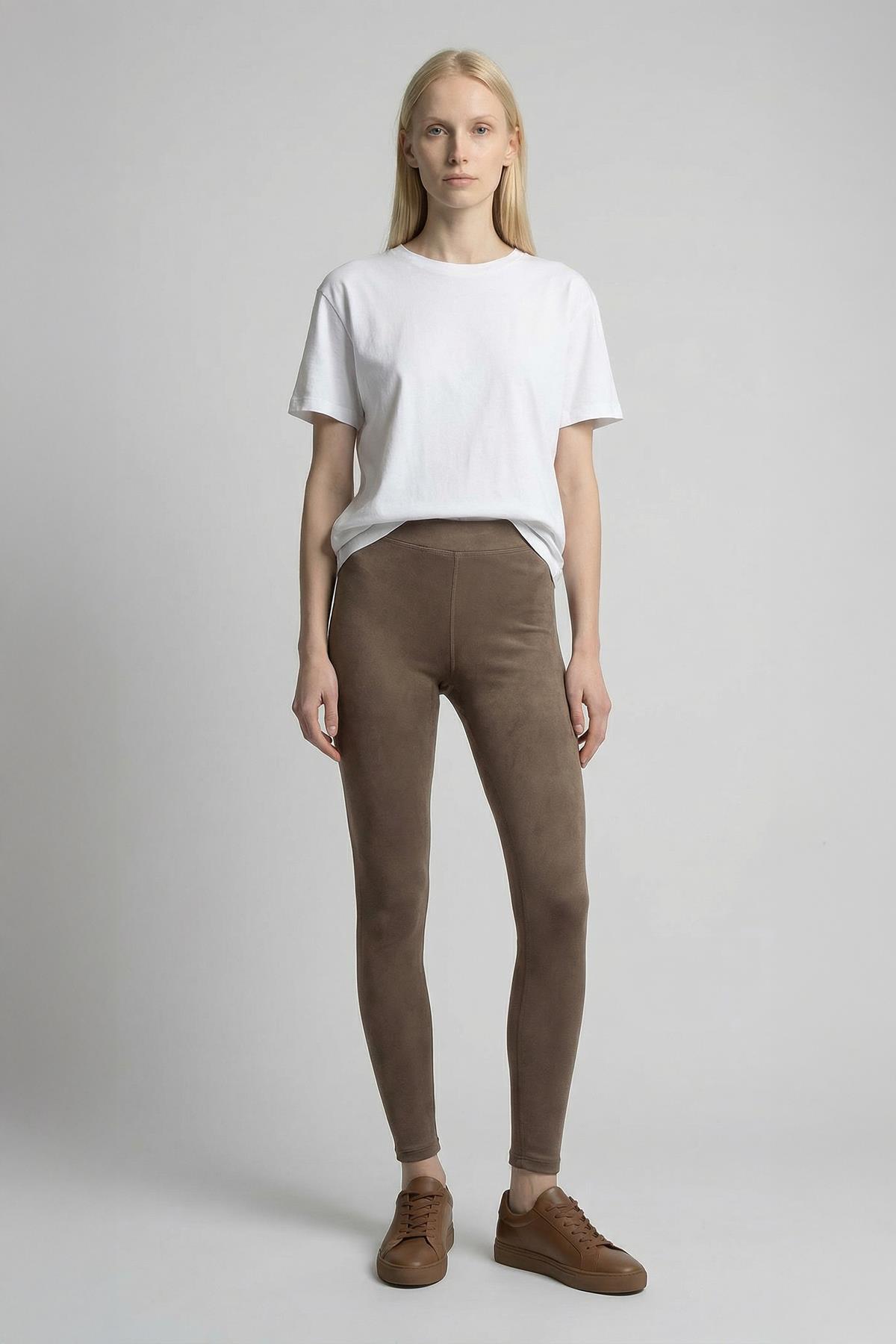 Kahve Yüksek Bel Dikiş Detaylı Tayt Pantolon 1002
