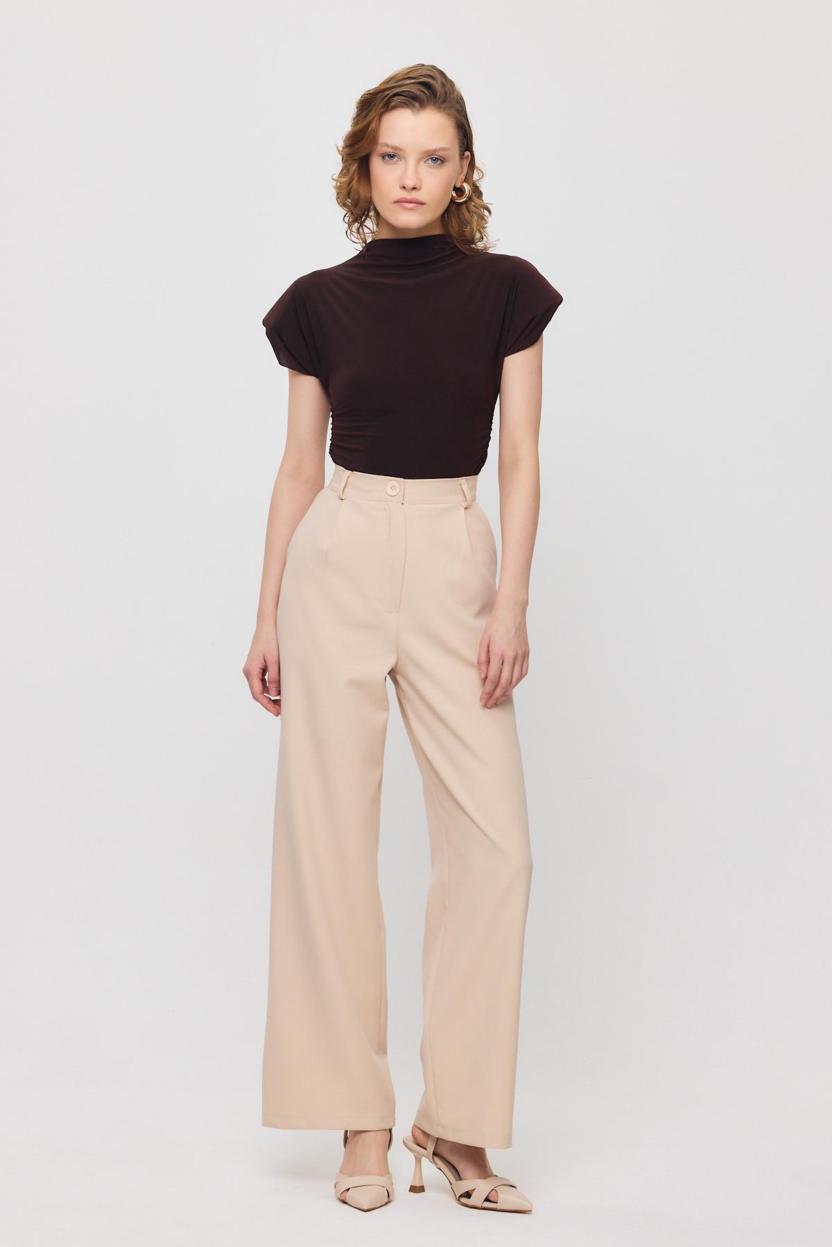 Kahverengi Geniş Paça Yüksek Bel Yandan Bağlamalı Kadın Pantolon 8255A
