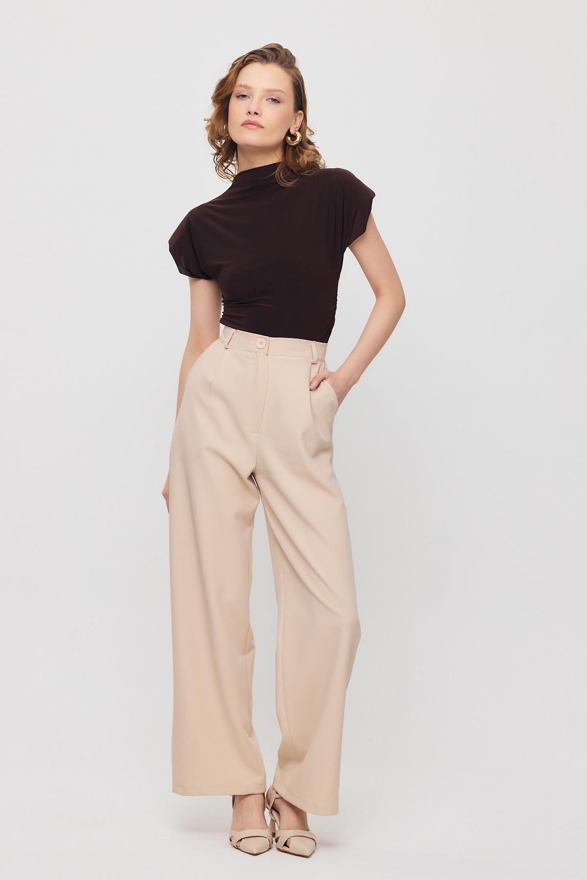 Bej Pile Detay Palazzo Pantolon 4003A