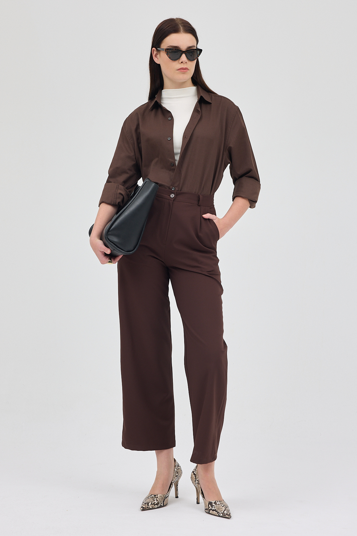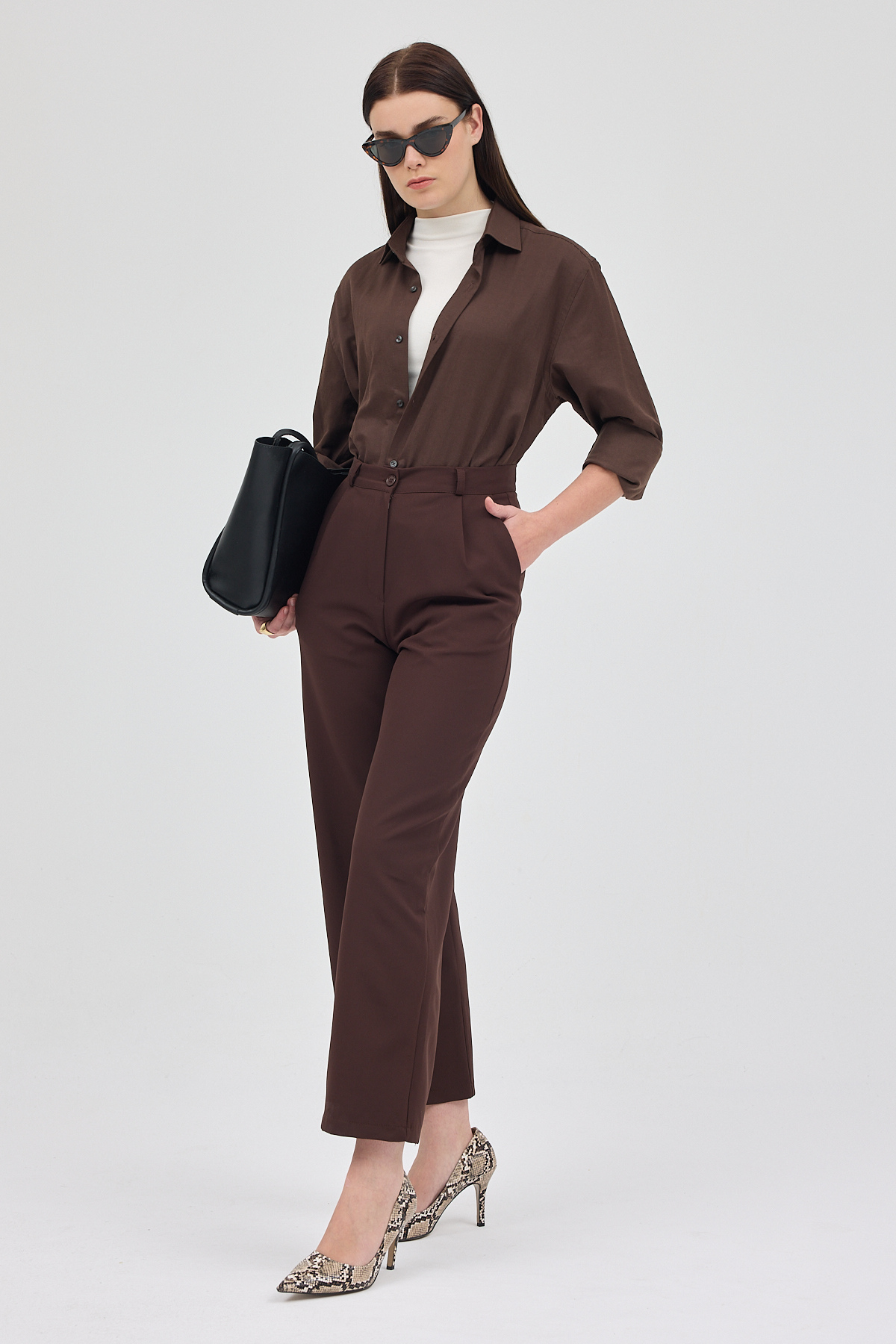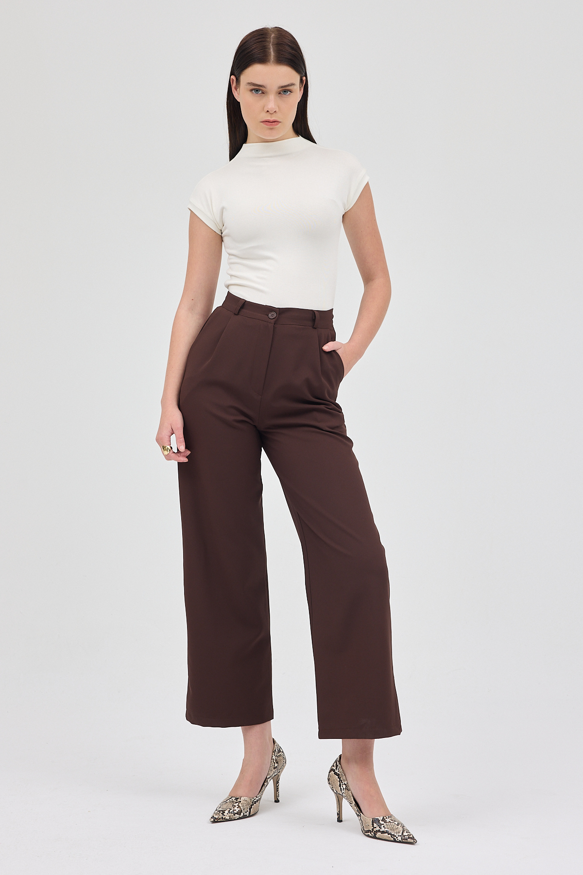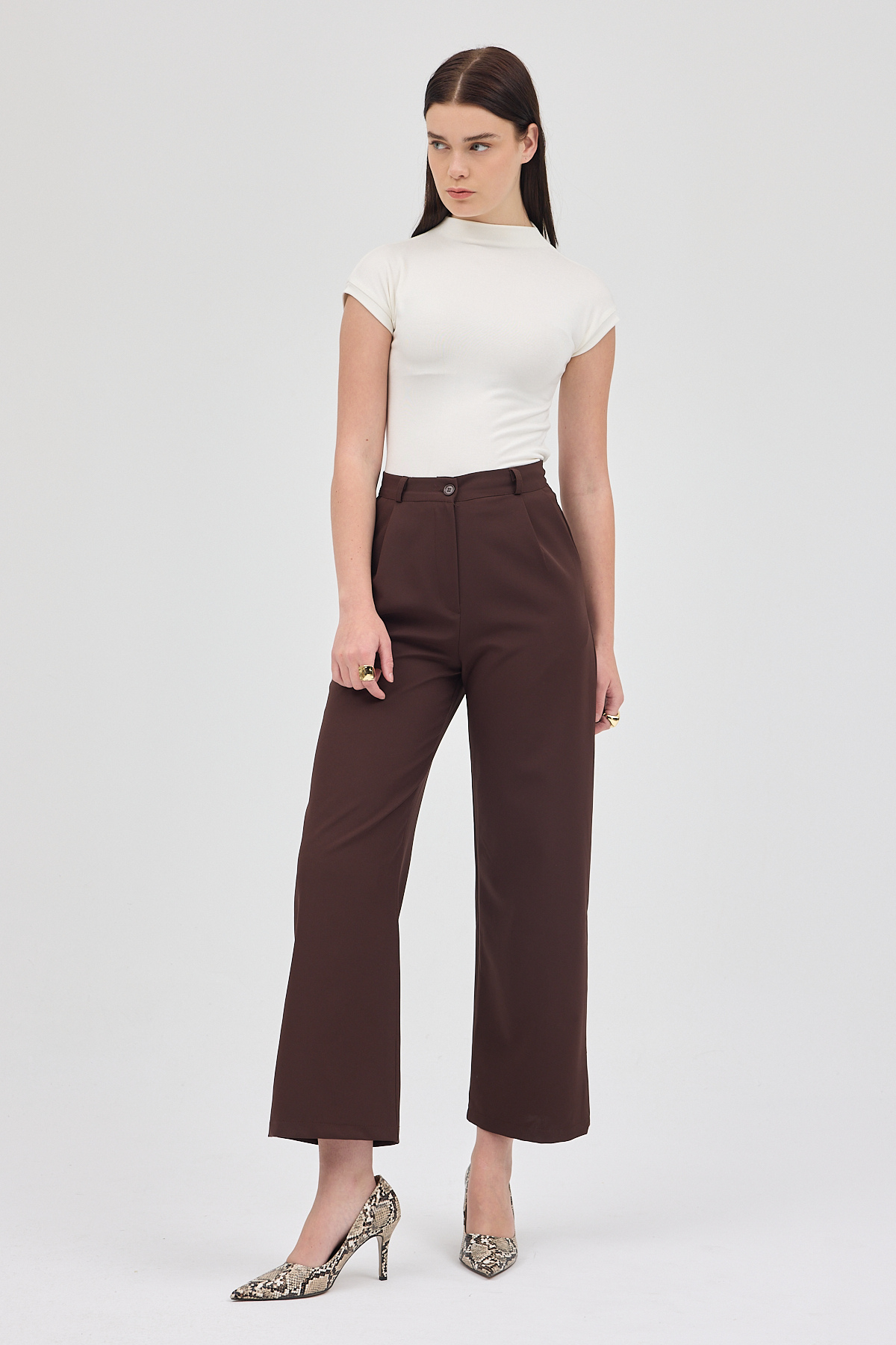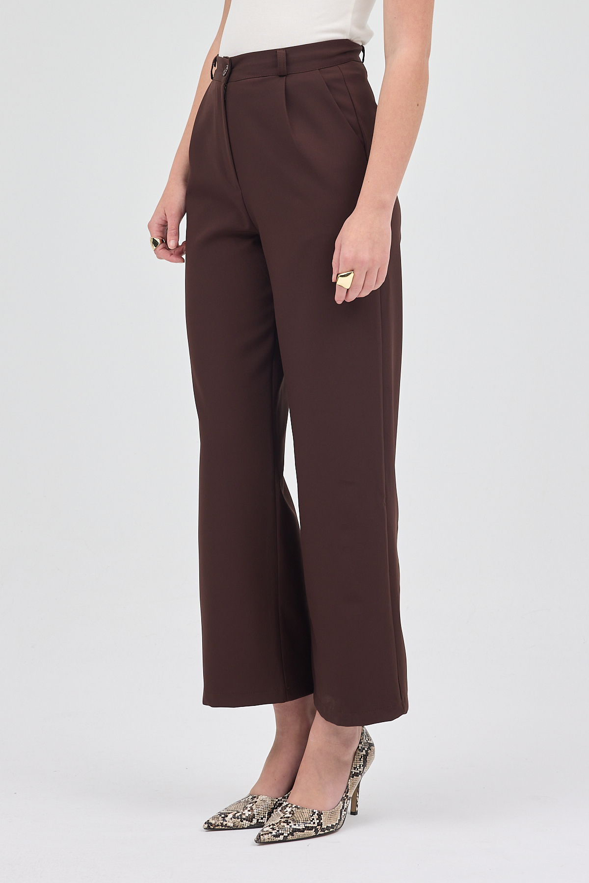 Kahve Pileli Geniş Paça Pantolon 3867 - RAYS Kahve Pileli Geniş Paça Pantolon 3867 - RAYS (1)