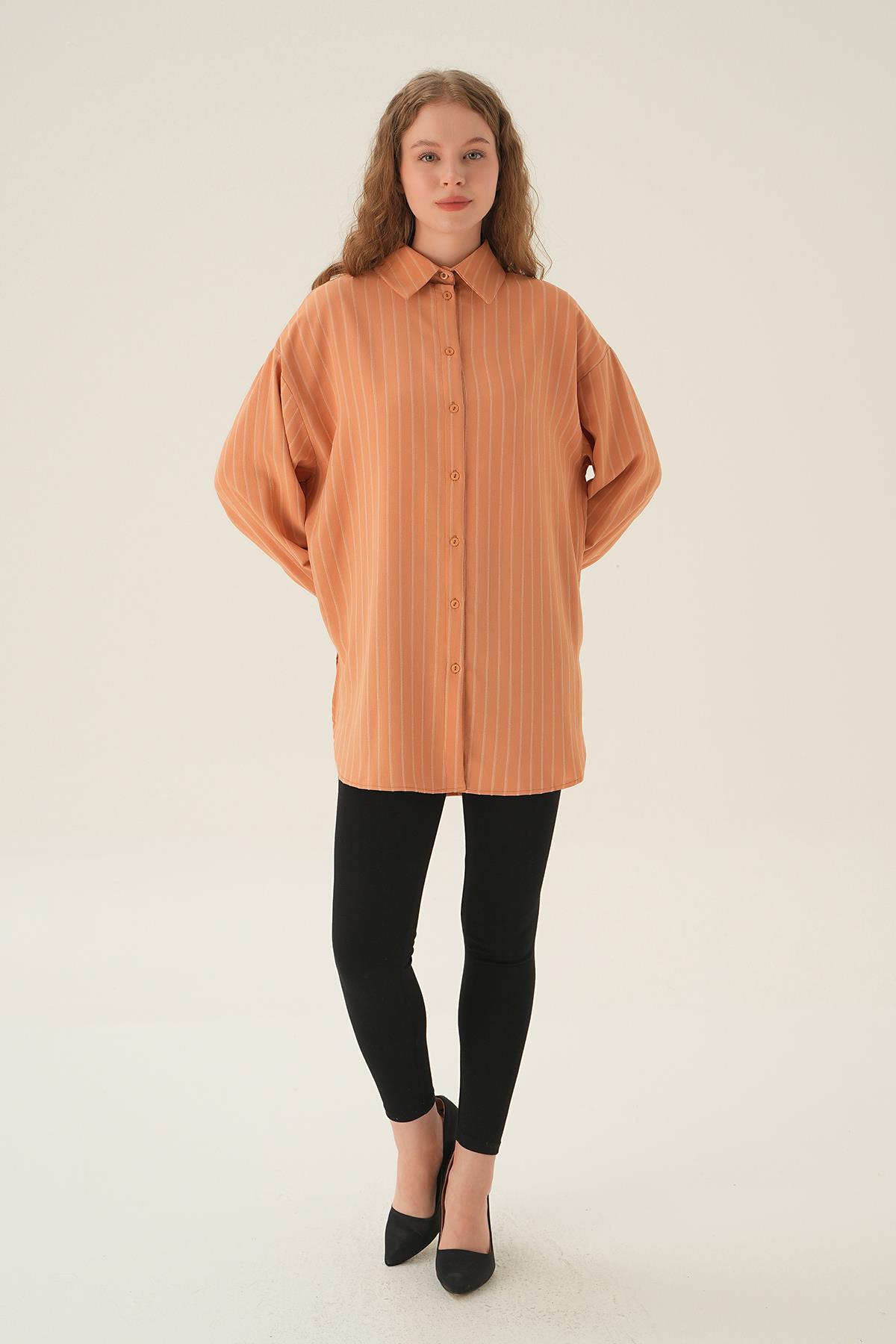 Camel Çizgili Oversize Gömlek 4013A