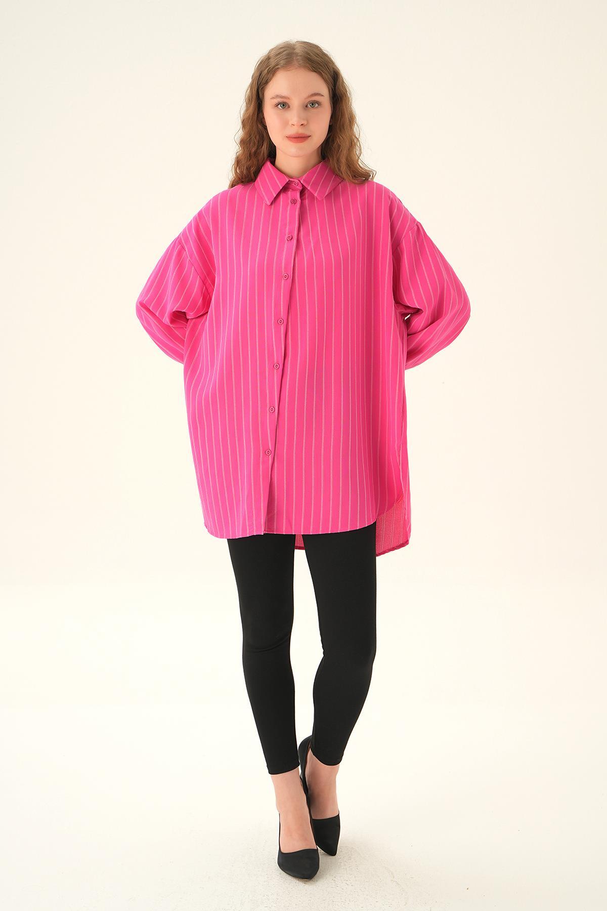 Pembe Çizgili Oversize Gömlek 5460 - RAYS Pembe Çizgili Oversize Gömlek 5460 - RAYS (1)