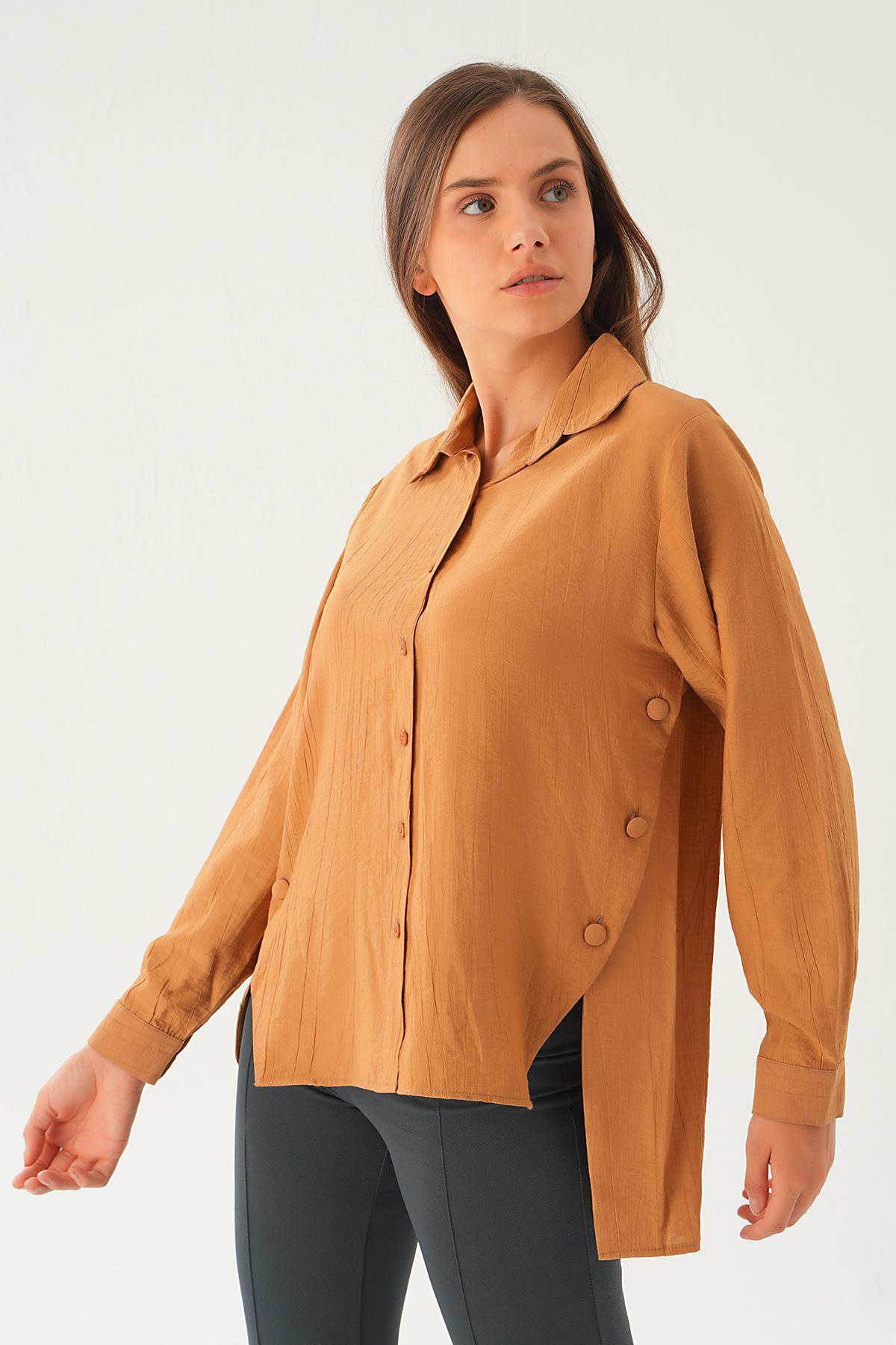 Bisküvi Yan Çıtçıtlı Arka Uzun Gömlek 4014A