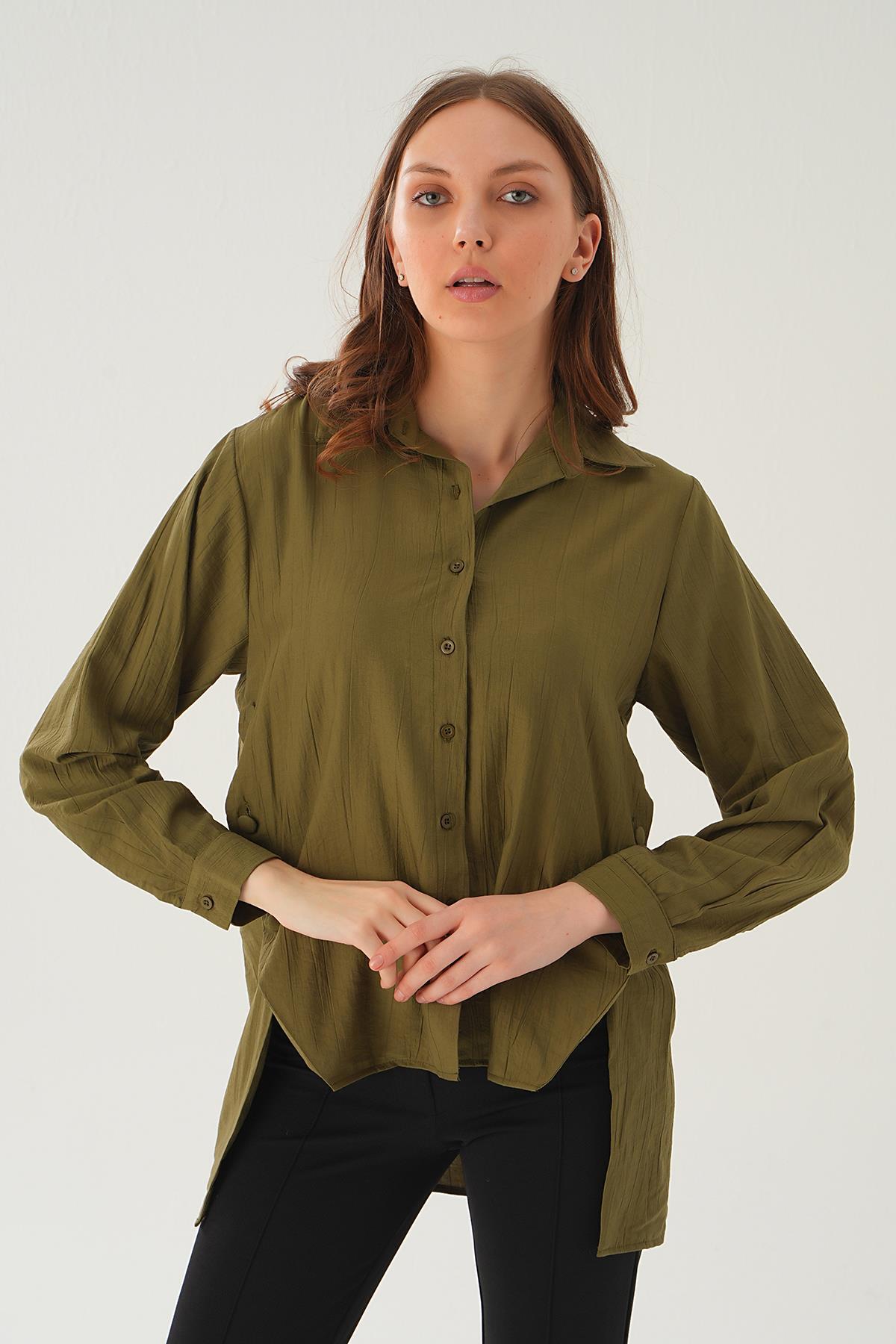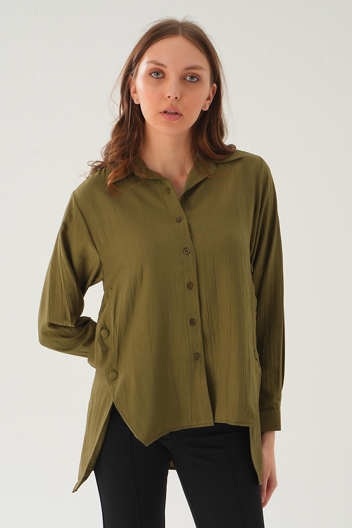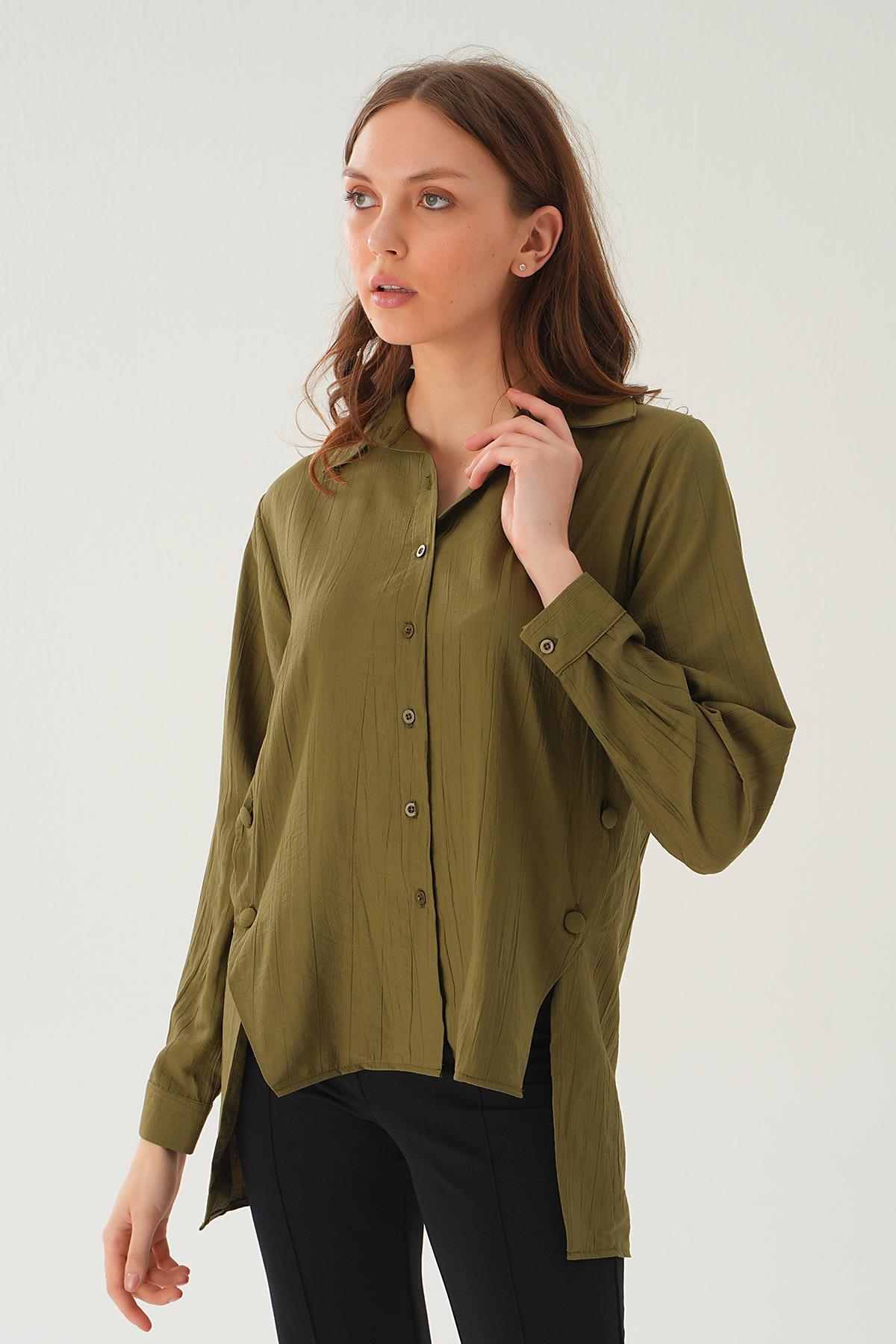 Haki Yan Çıtçıtlı Arka Uzun Gömlek 4014A