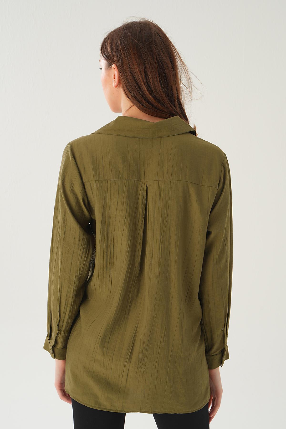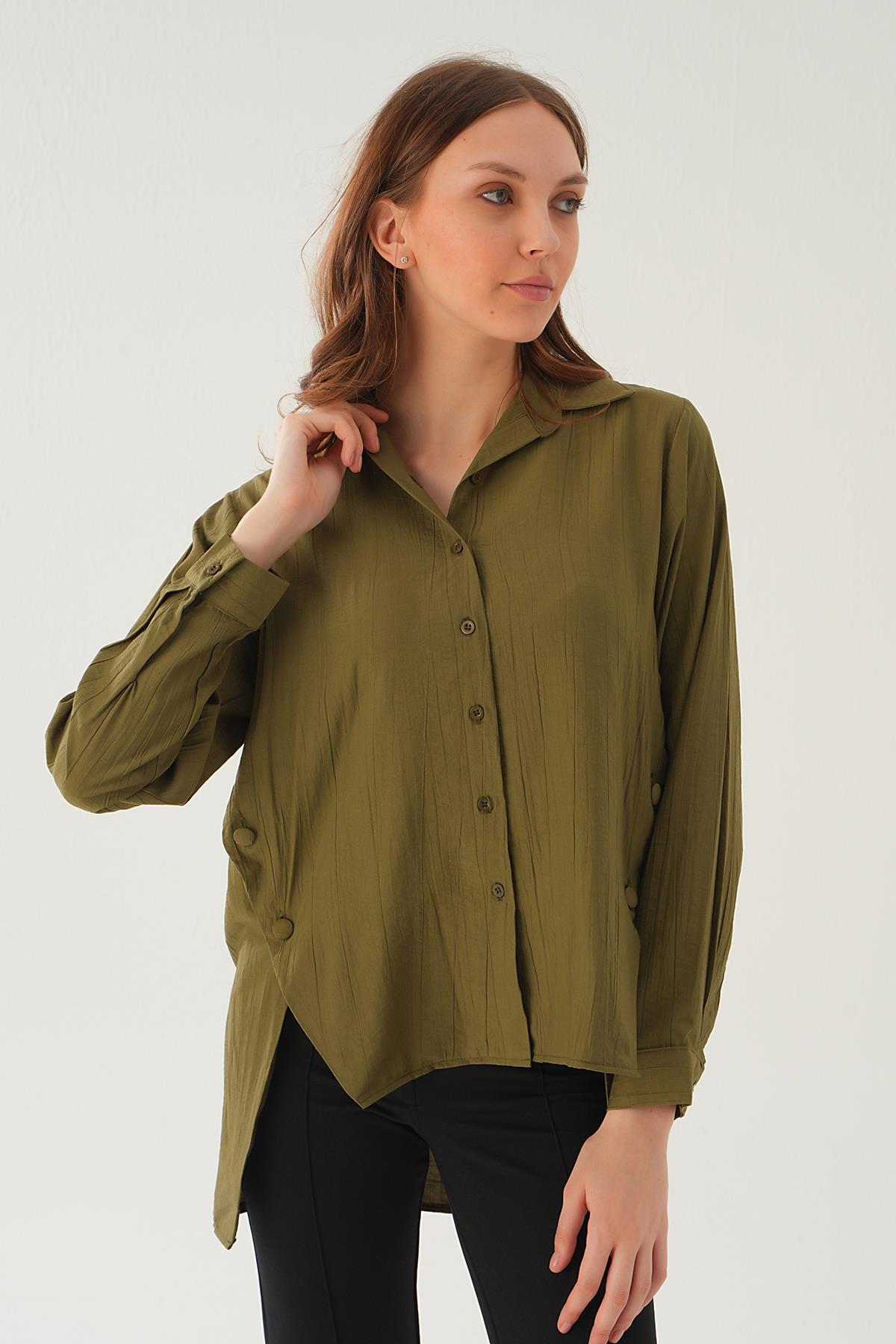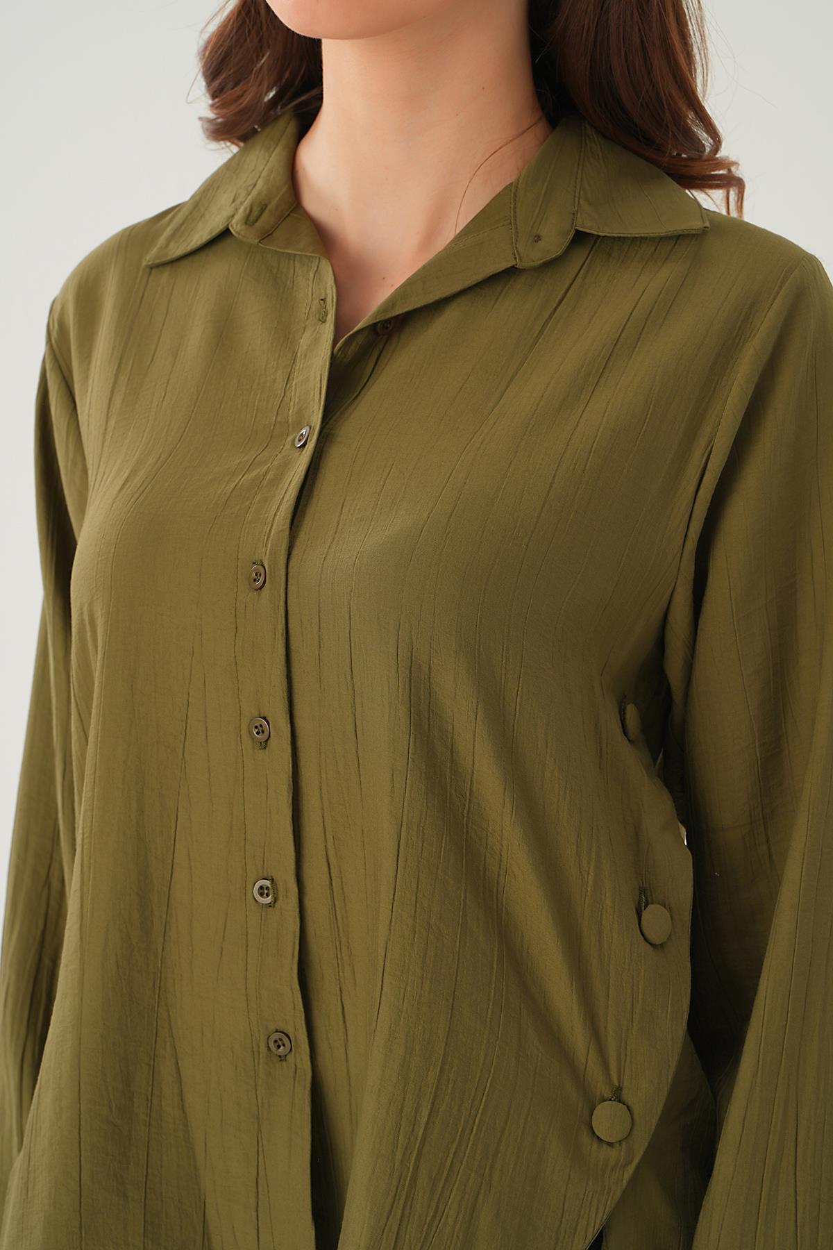 Haki Yan Çıtçıtlı Arka Uzun Gömlek 4014A