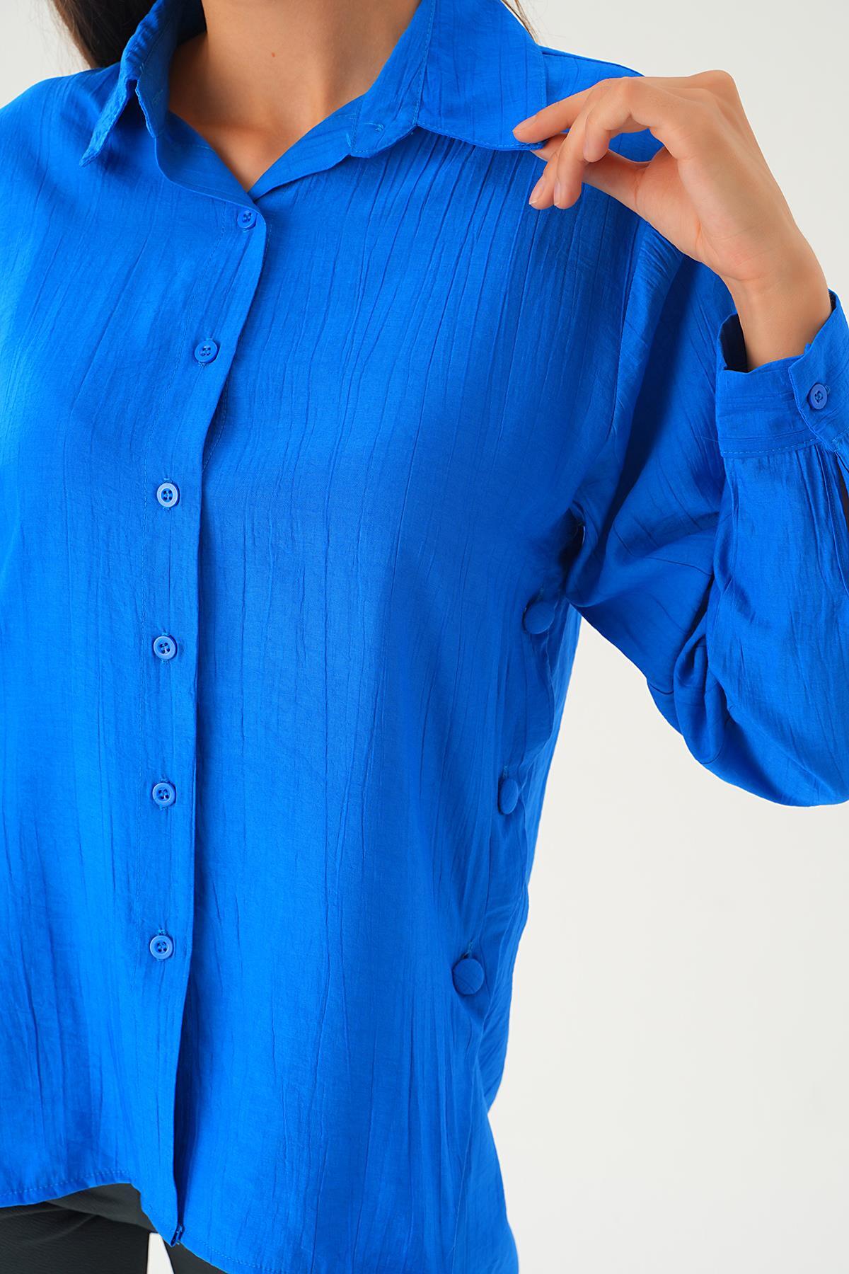 Saks Yan Çıtçıtlı Arka Uzun Gömlek 4014A