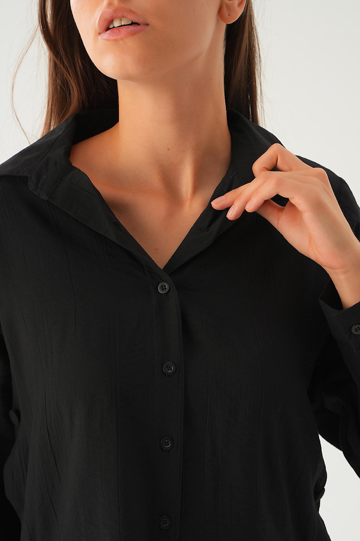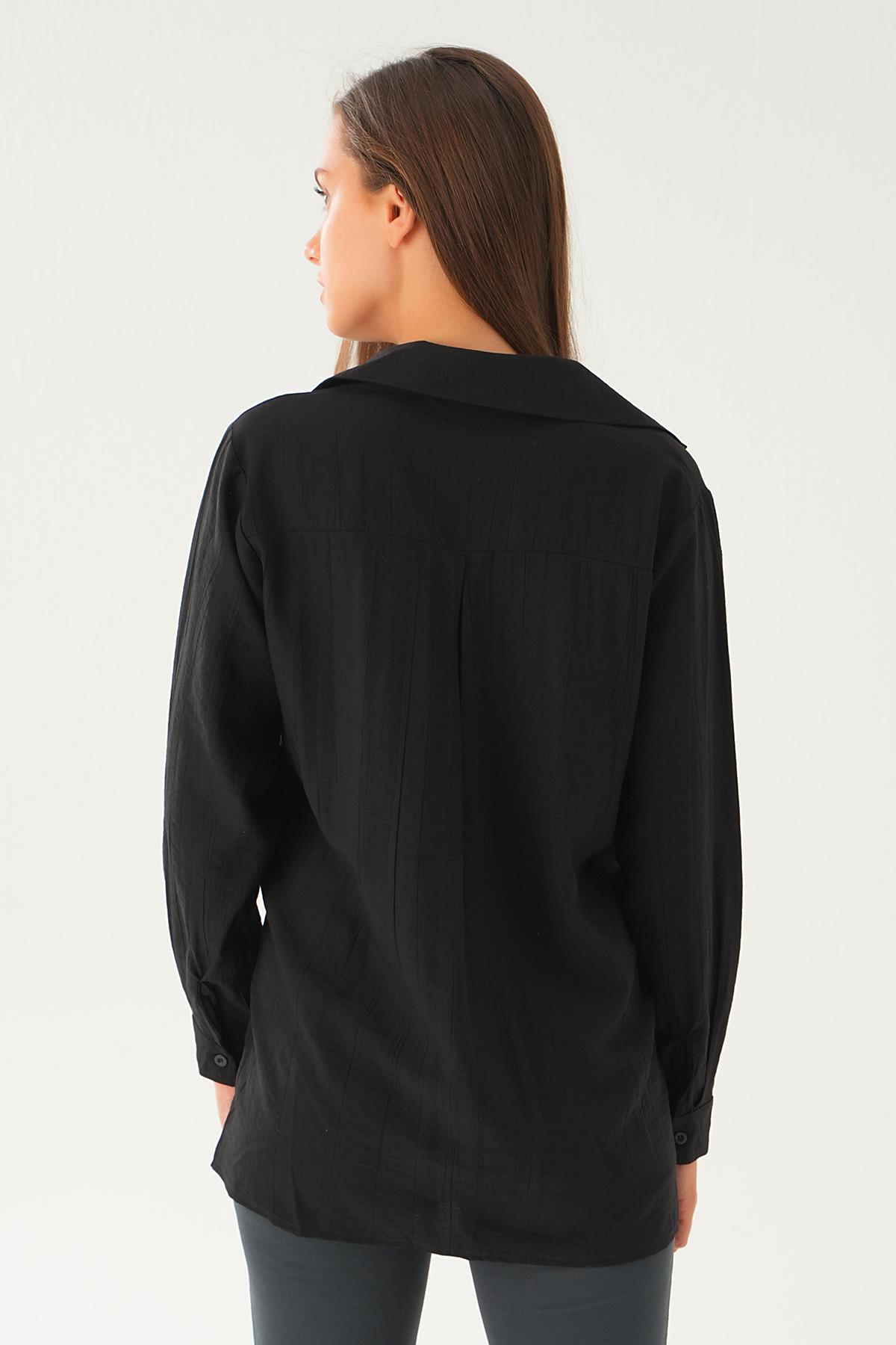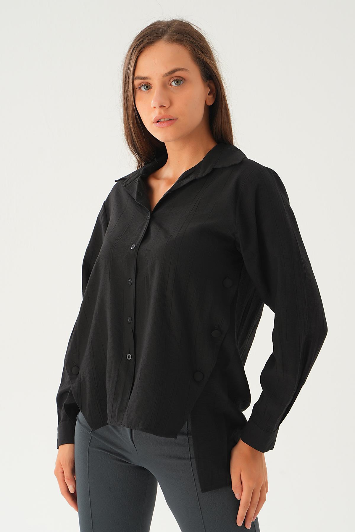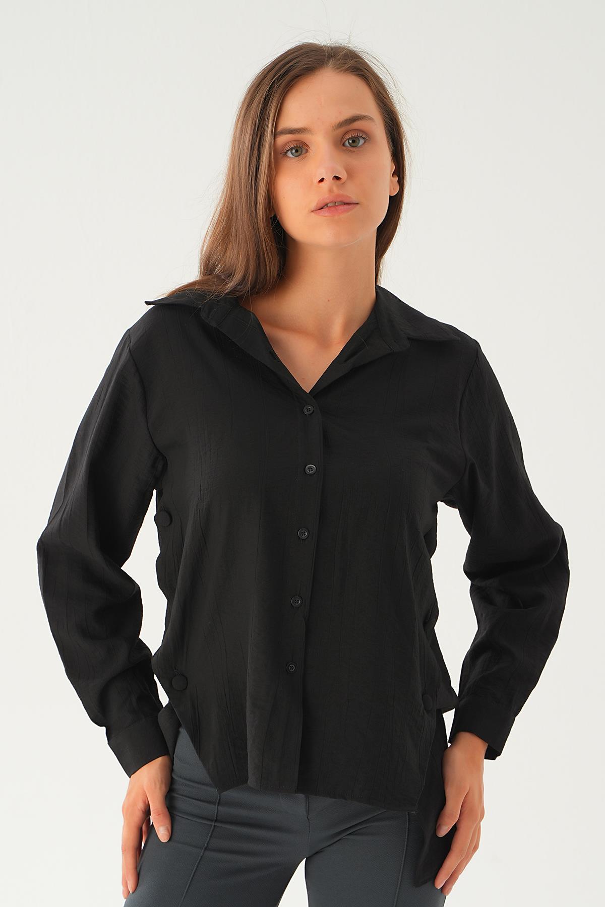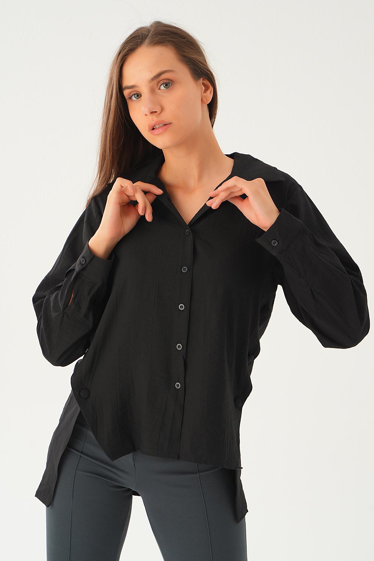 Siyah Yan Çıtçıtlı Arka Uzun Gömlek 4014A