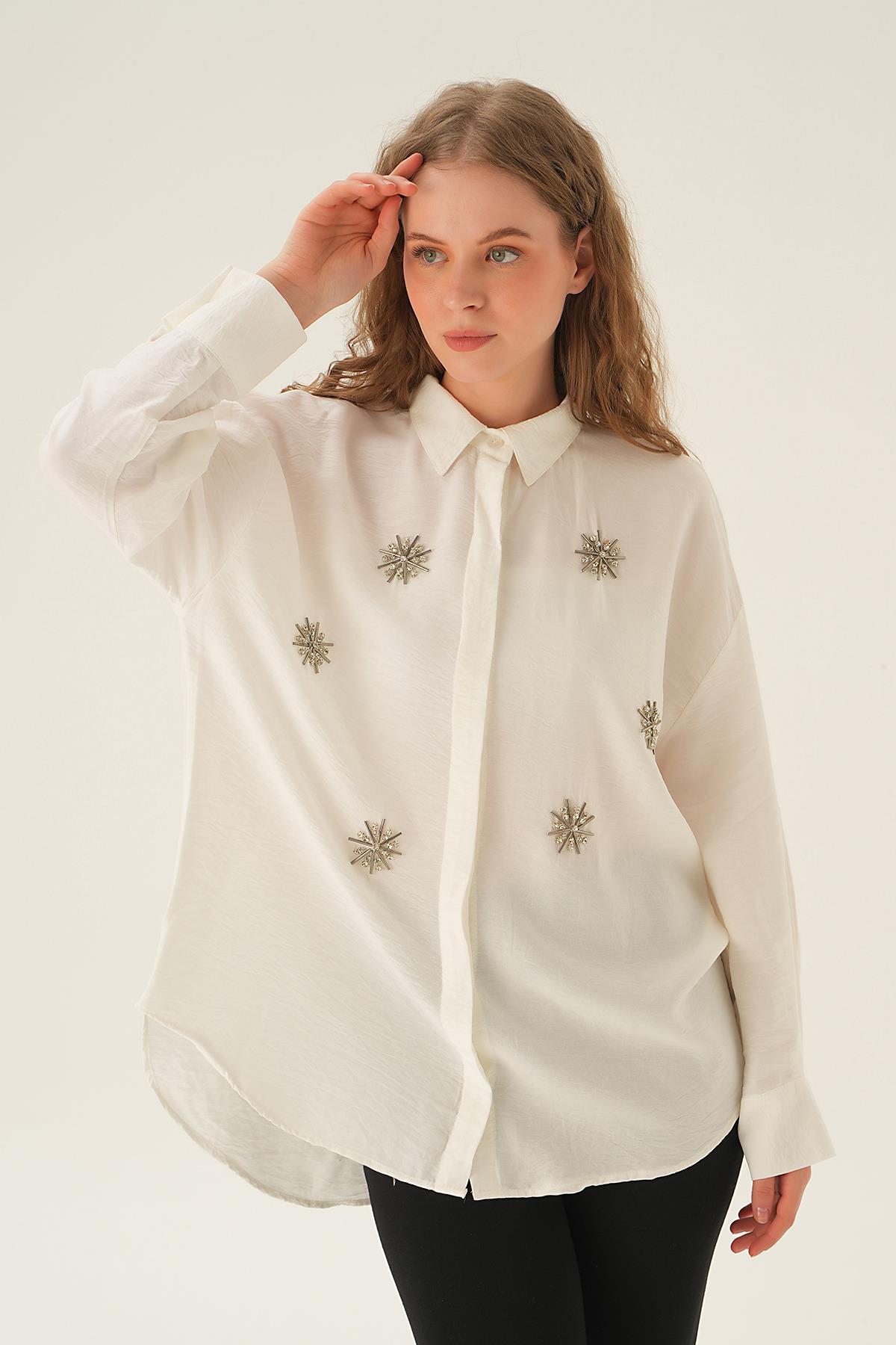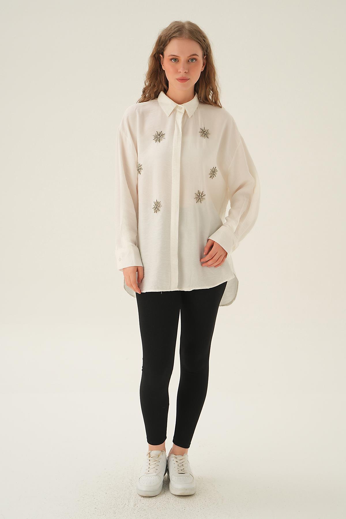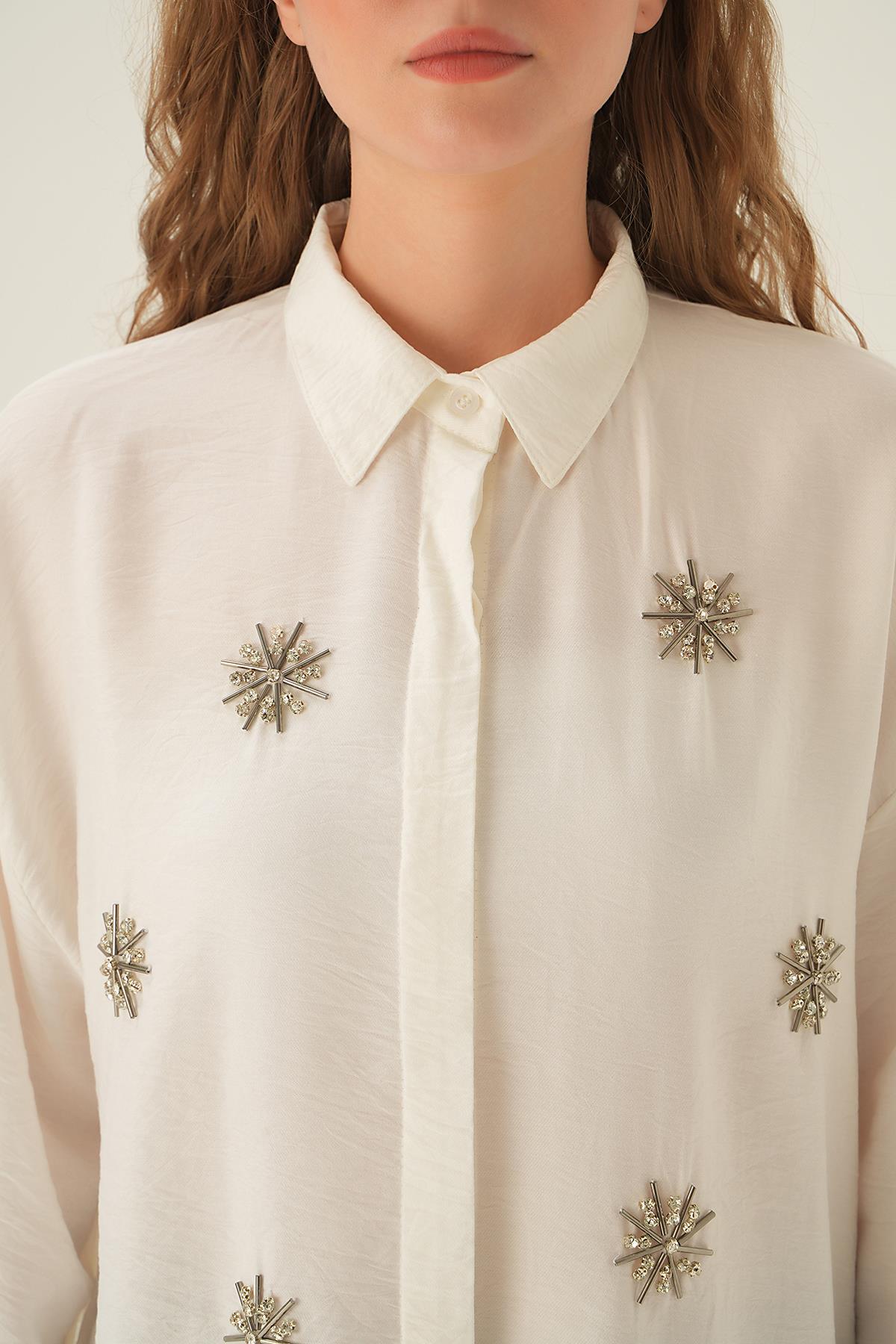 Beyaz Taş İşlemeli Gömlek 4016