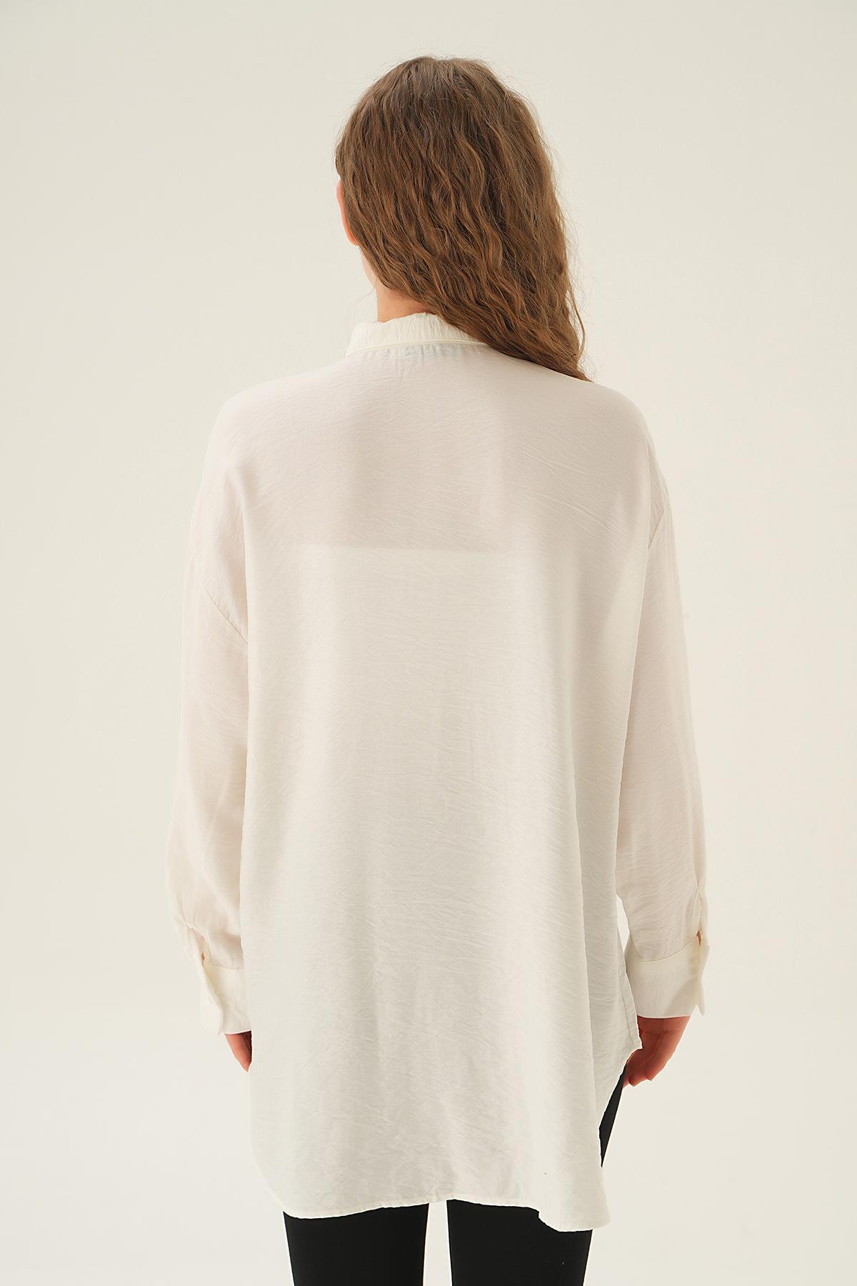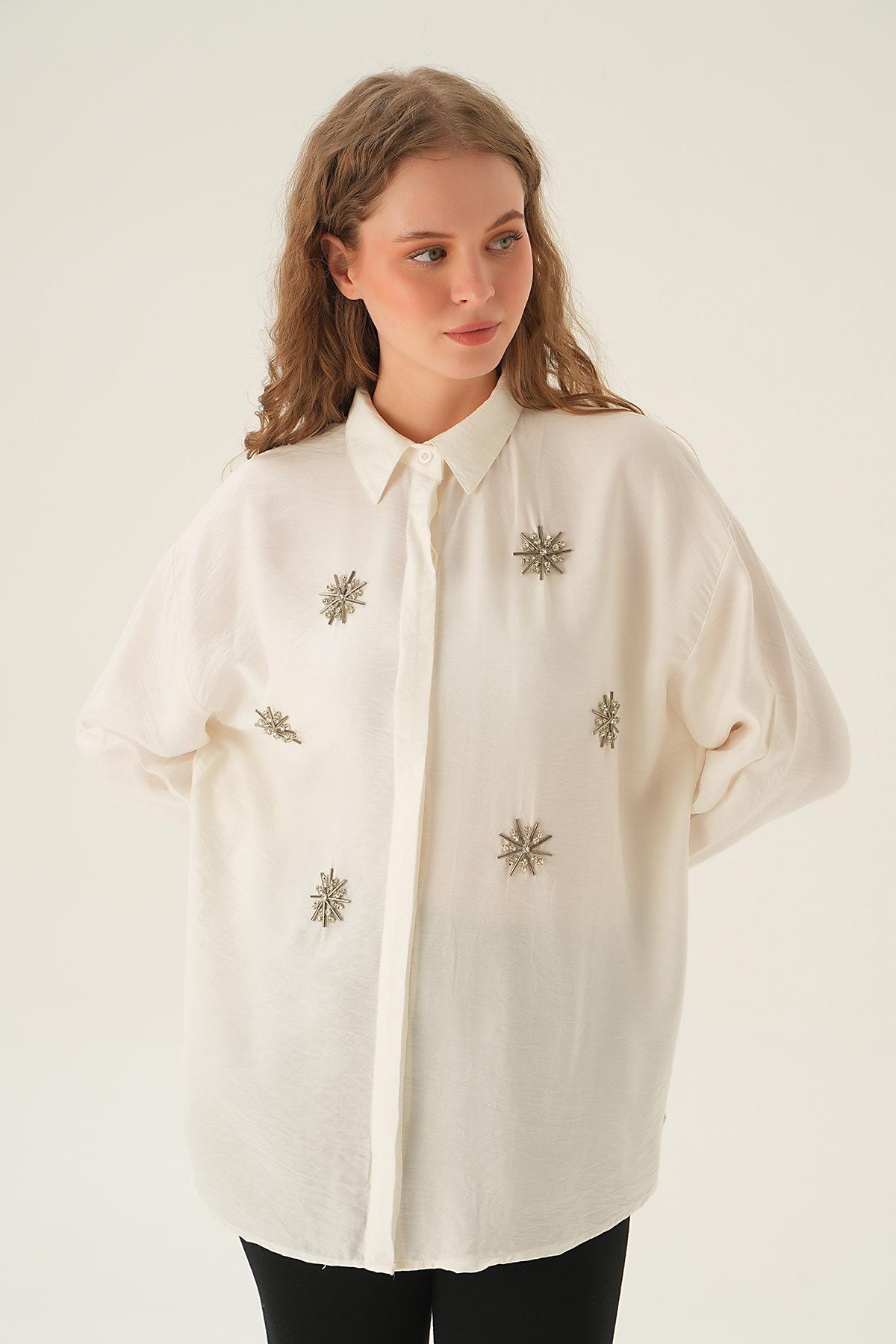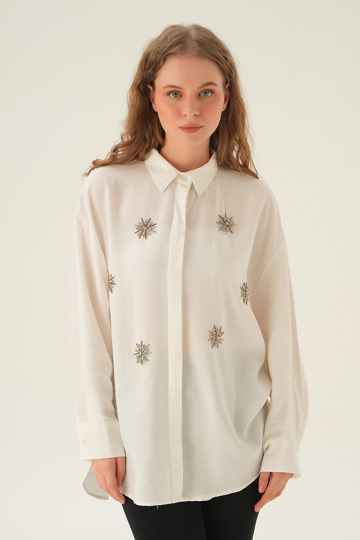 Beyaz Taş İşlemeli Gömlek 4016