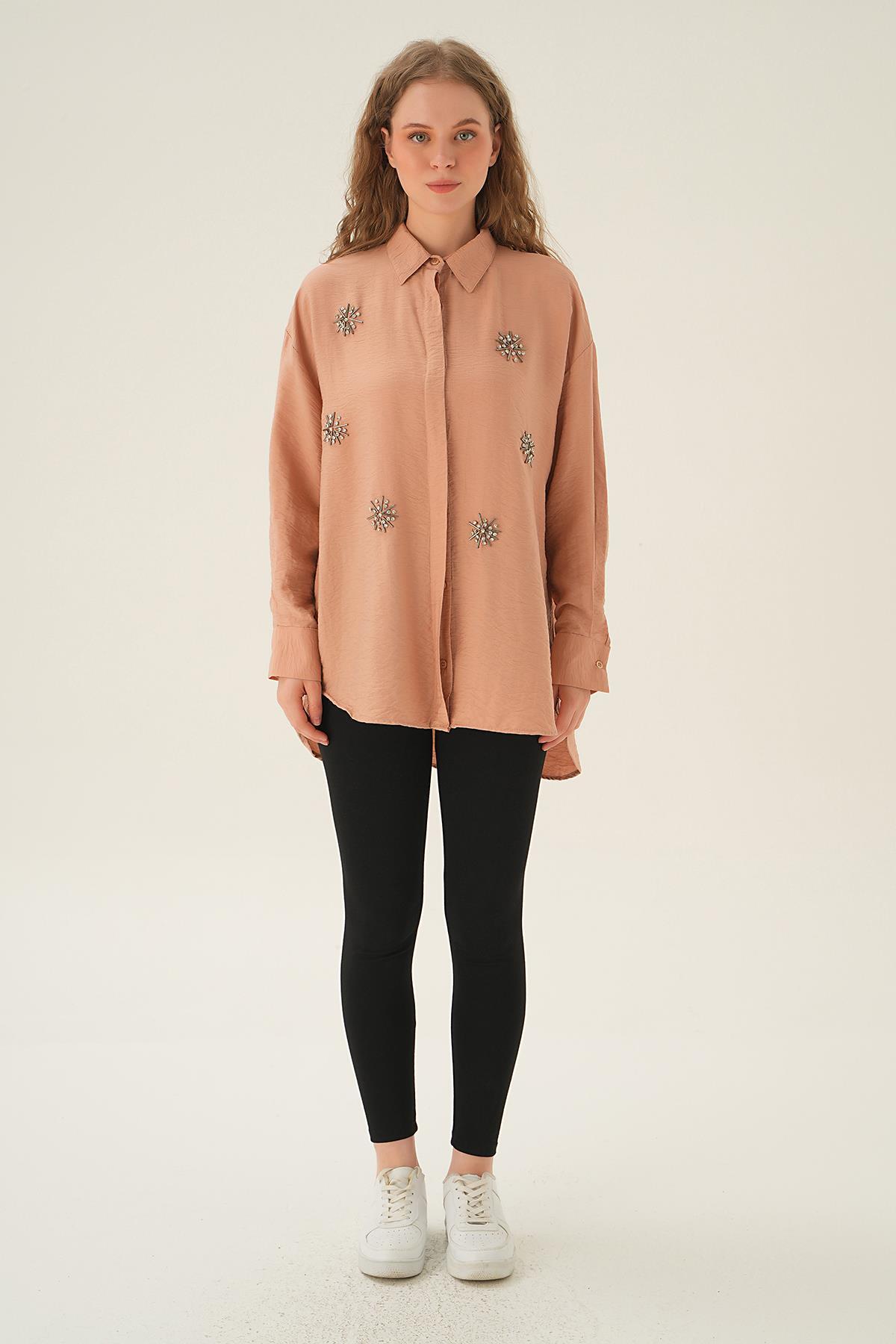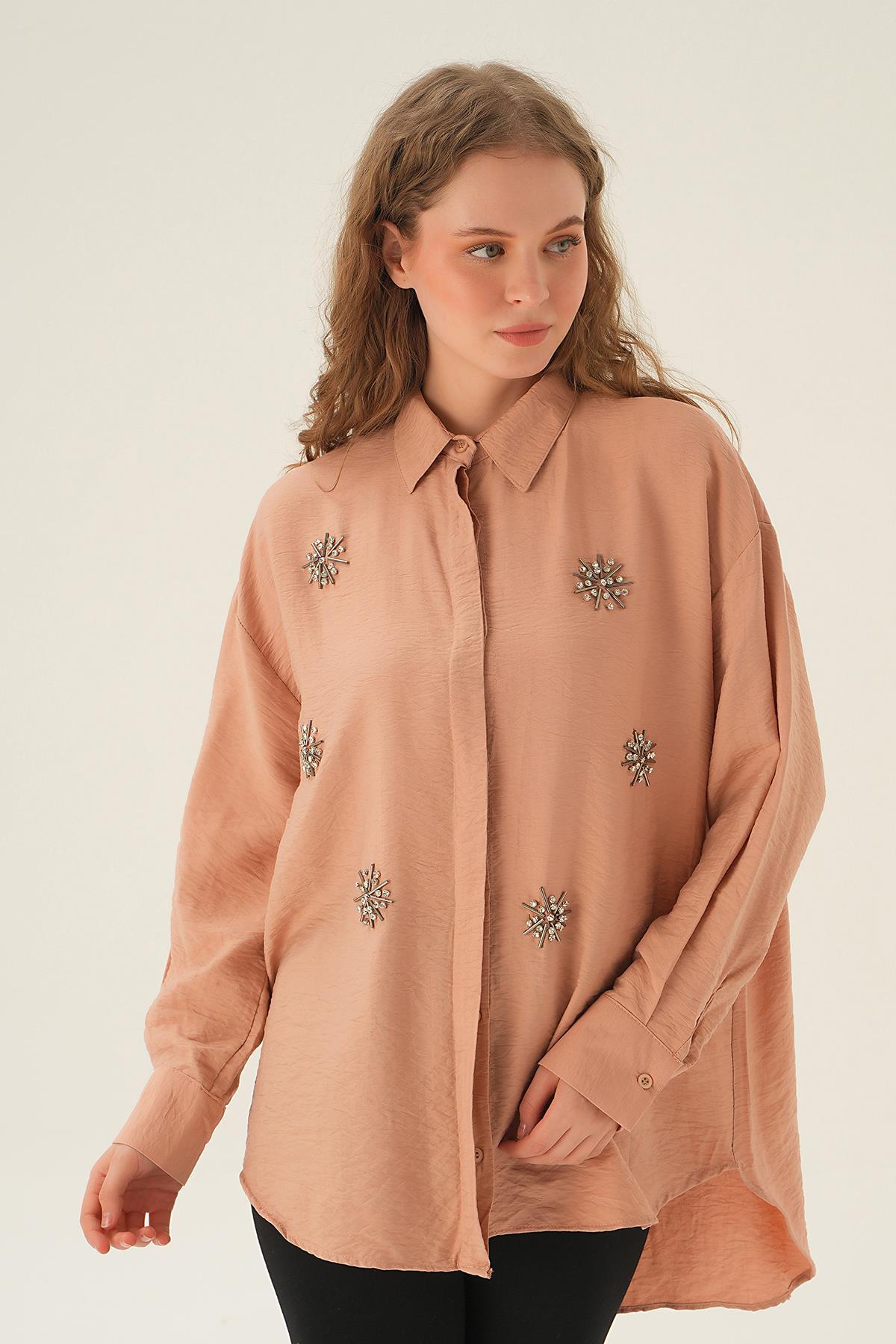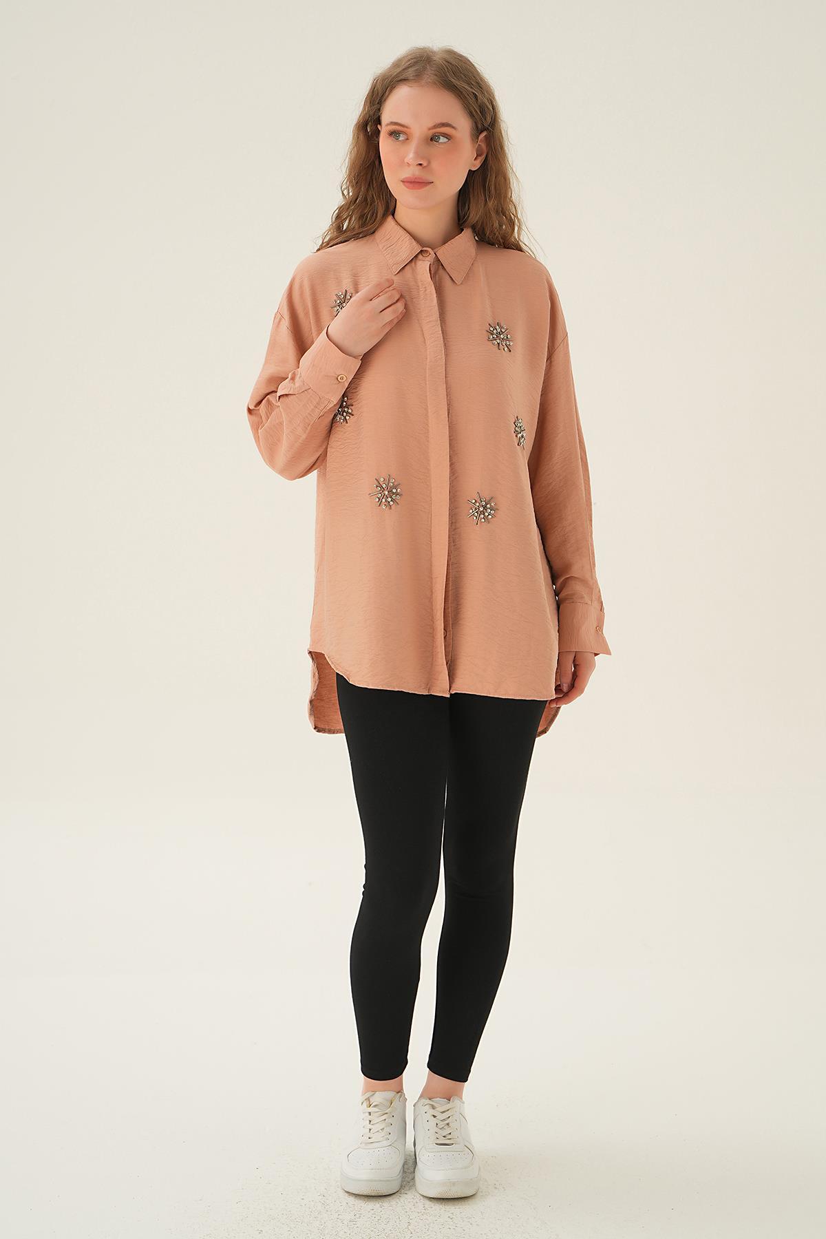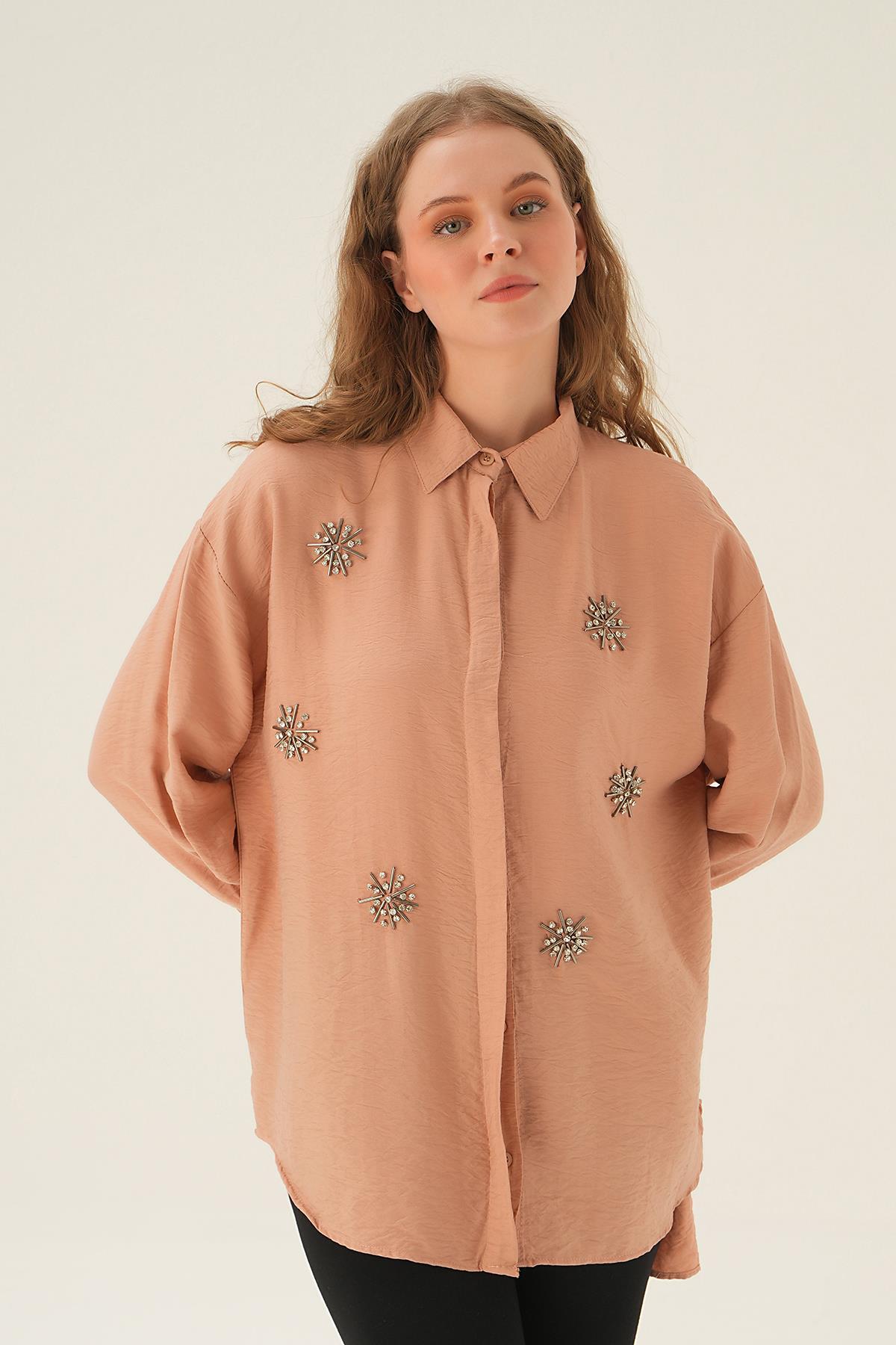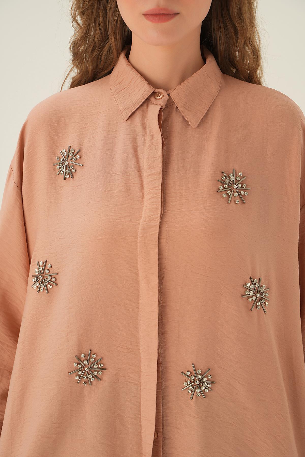 Bisküvi Taş İşlemeli Gömlek 4016