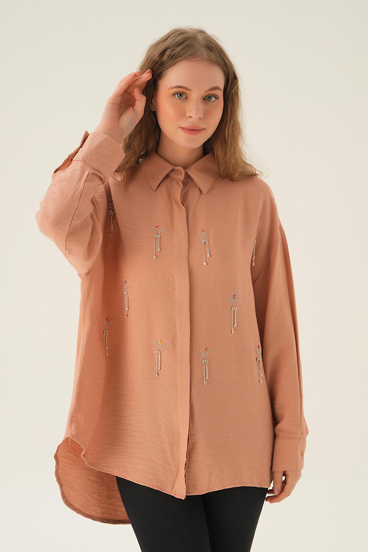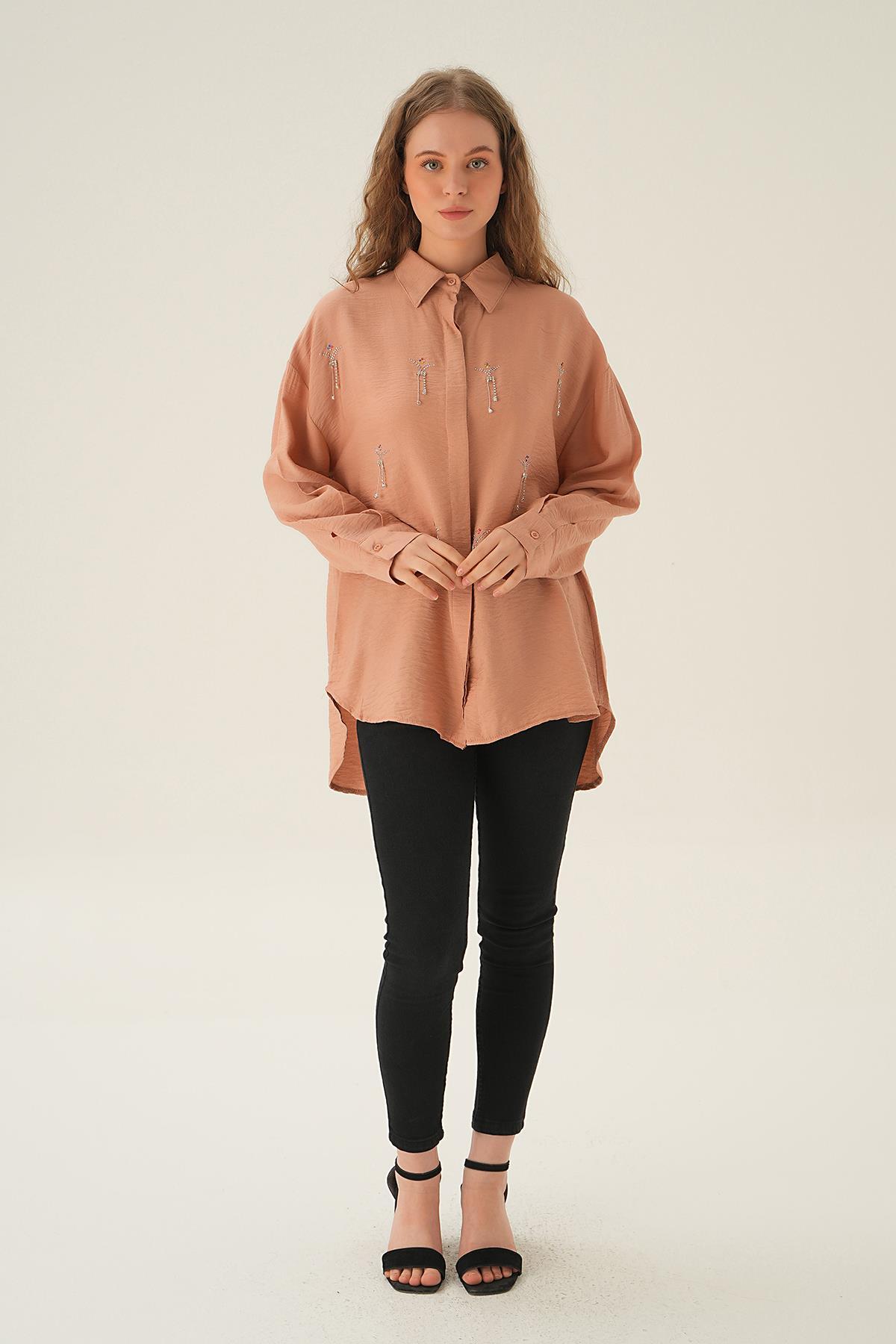 Kahve Çizgili Oversize Gömlek 5460 - RAYS Kahve Çizgili Oversize Gömlek 5460 - RAYS (1)
