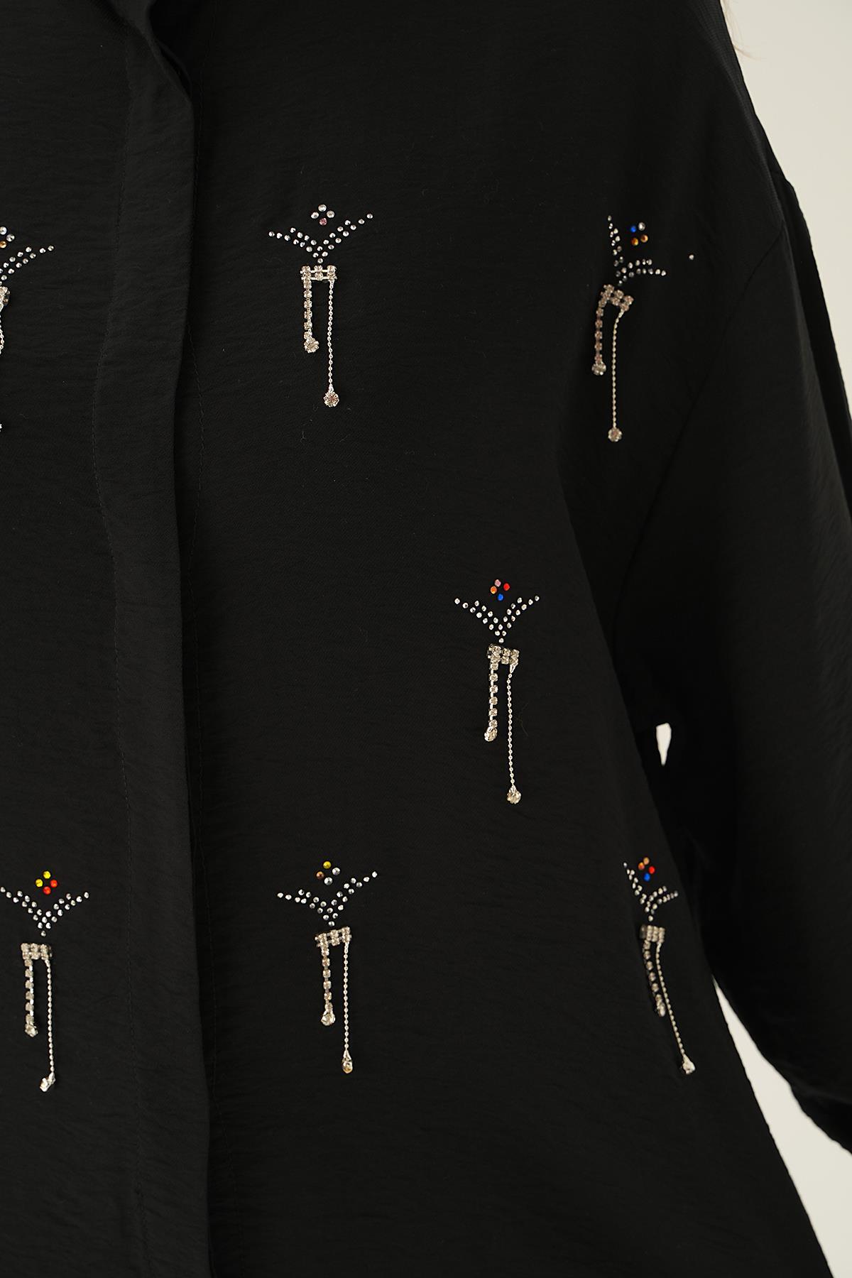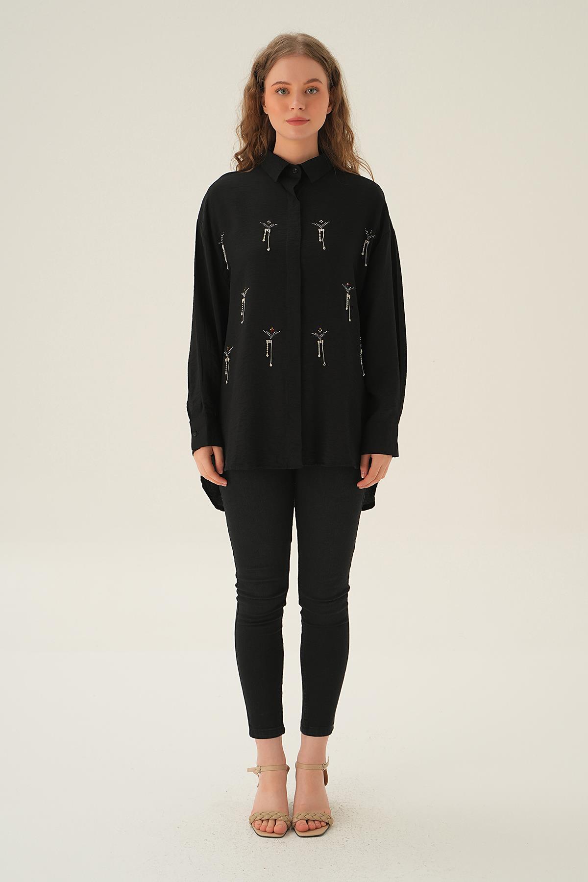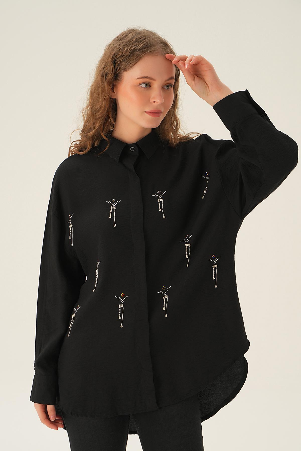 Siyah Taş Detay Gömlek 4017