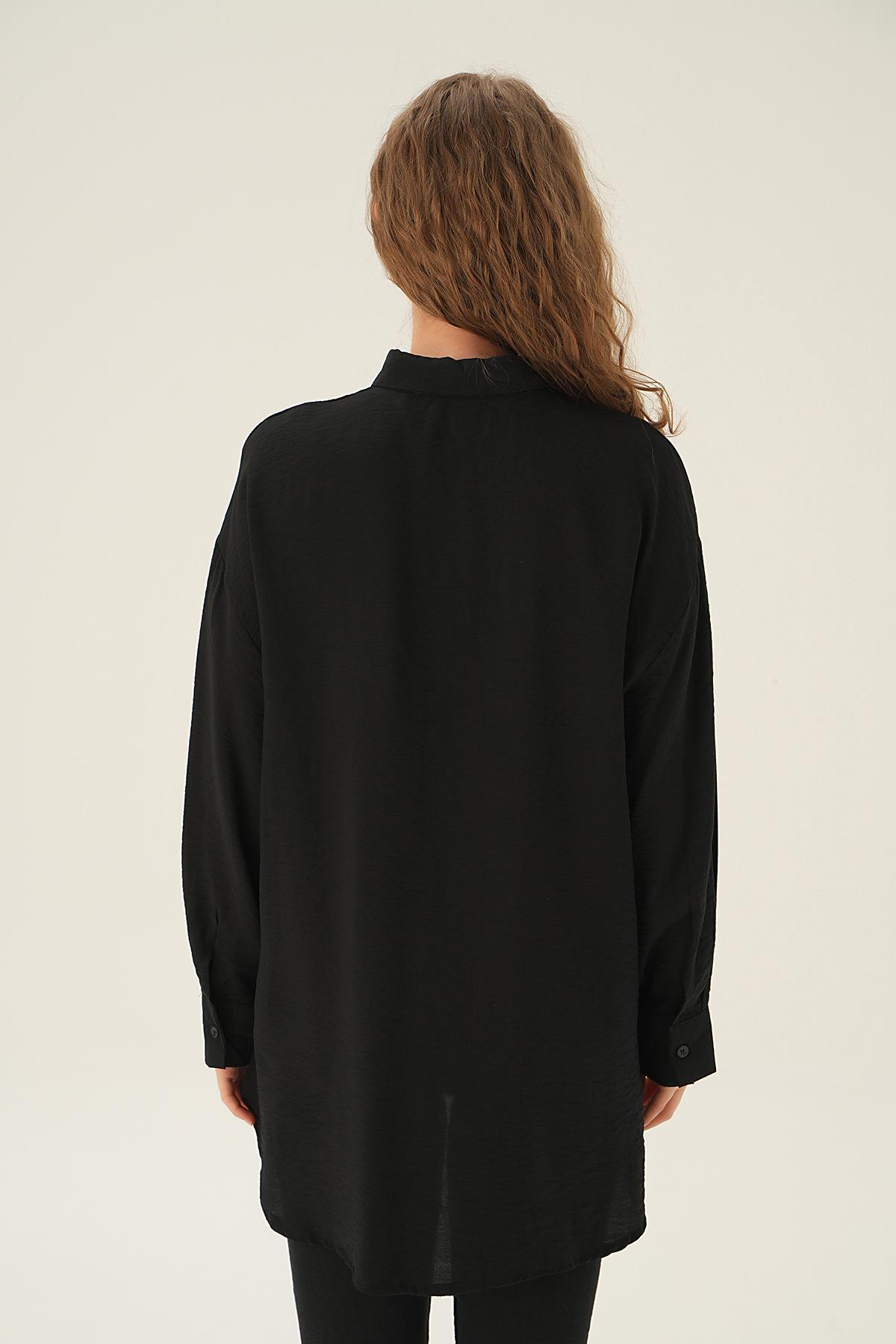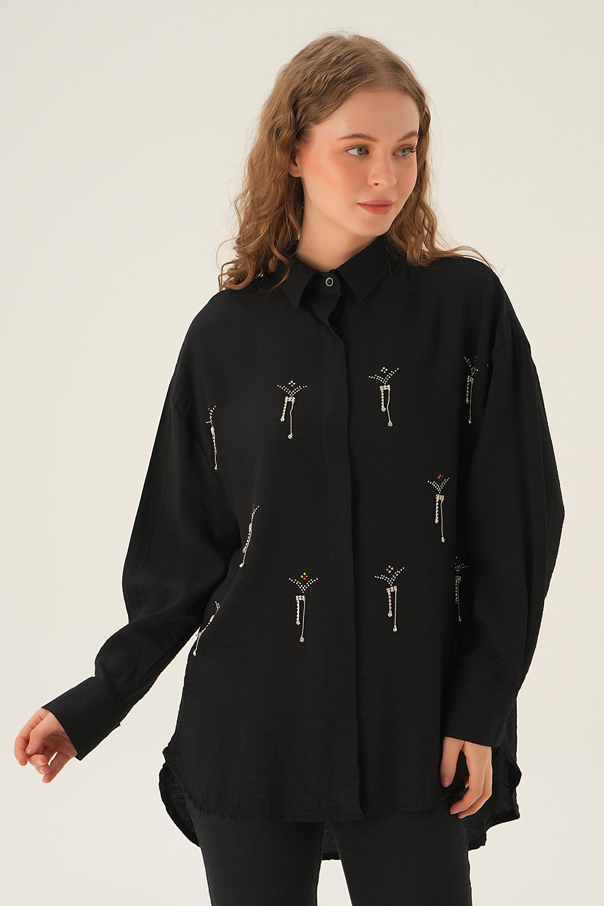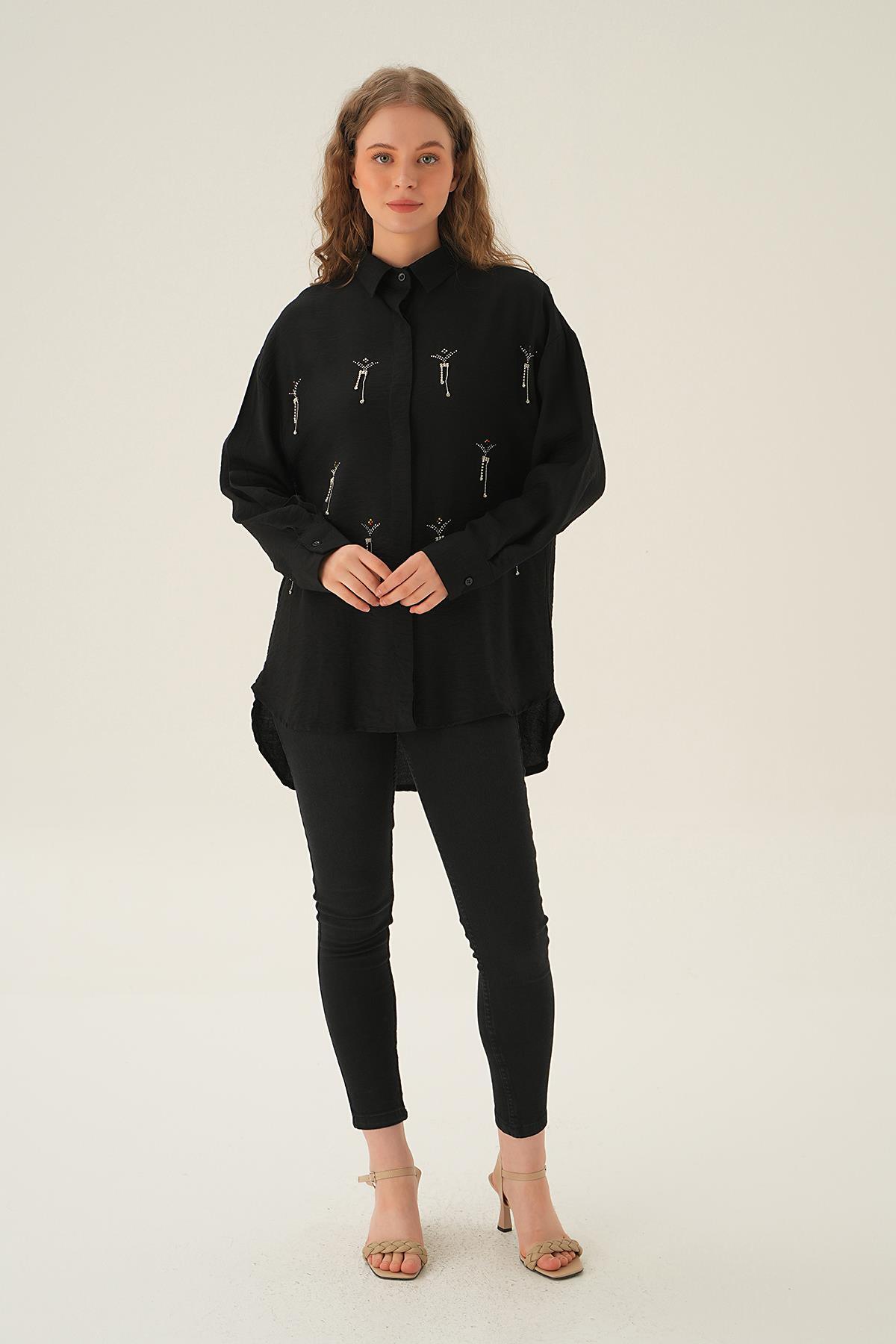 Siyah Taş Detay Gömlek 4017