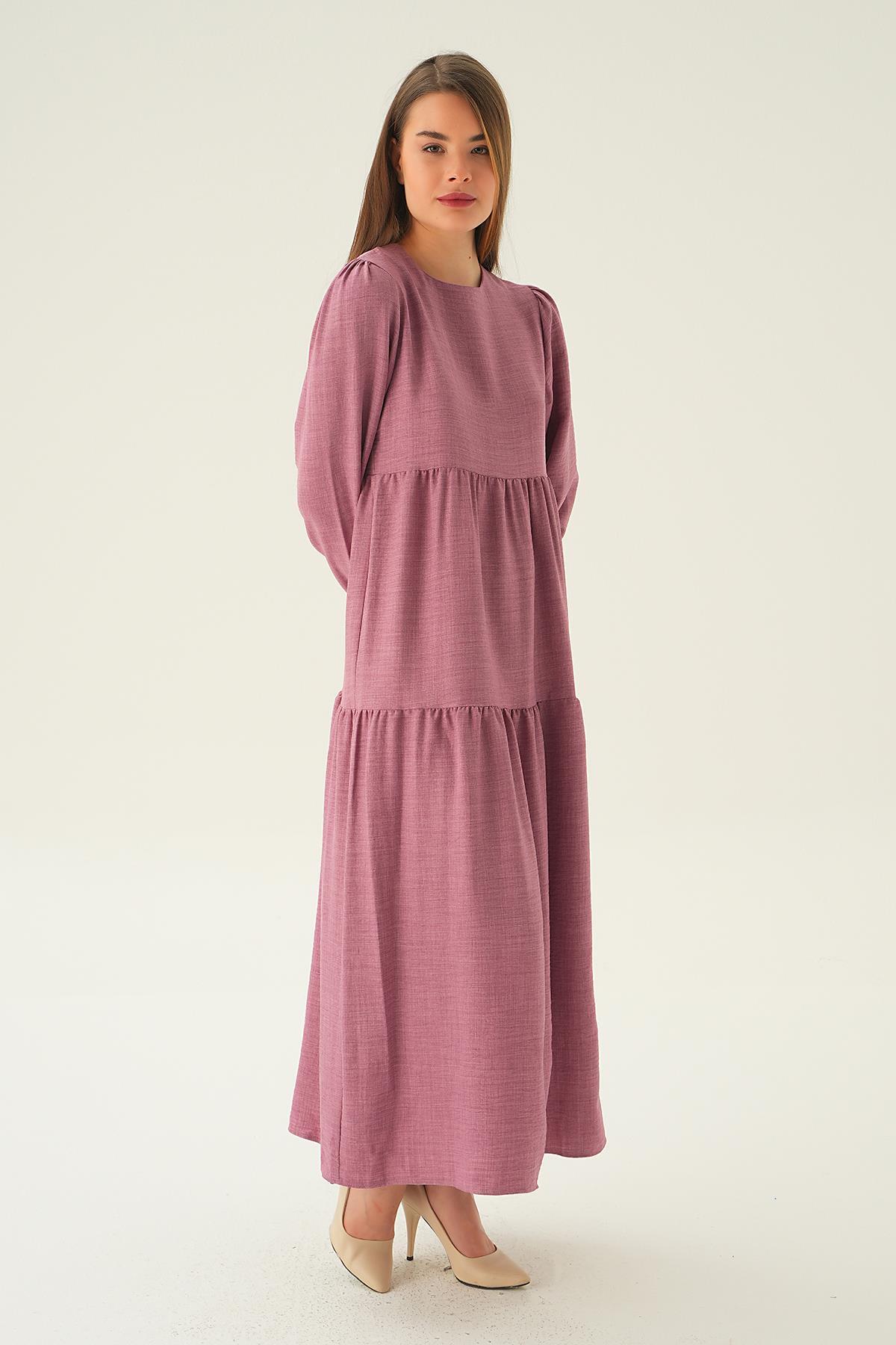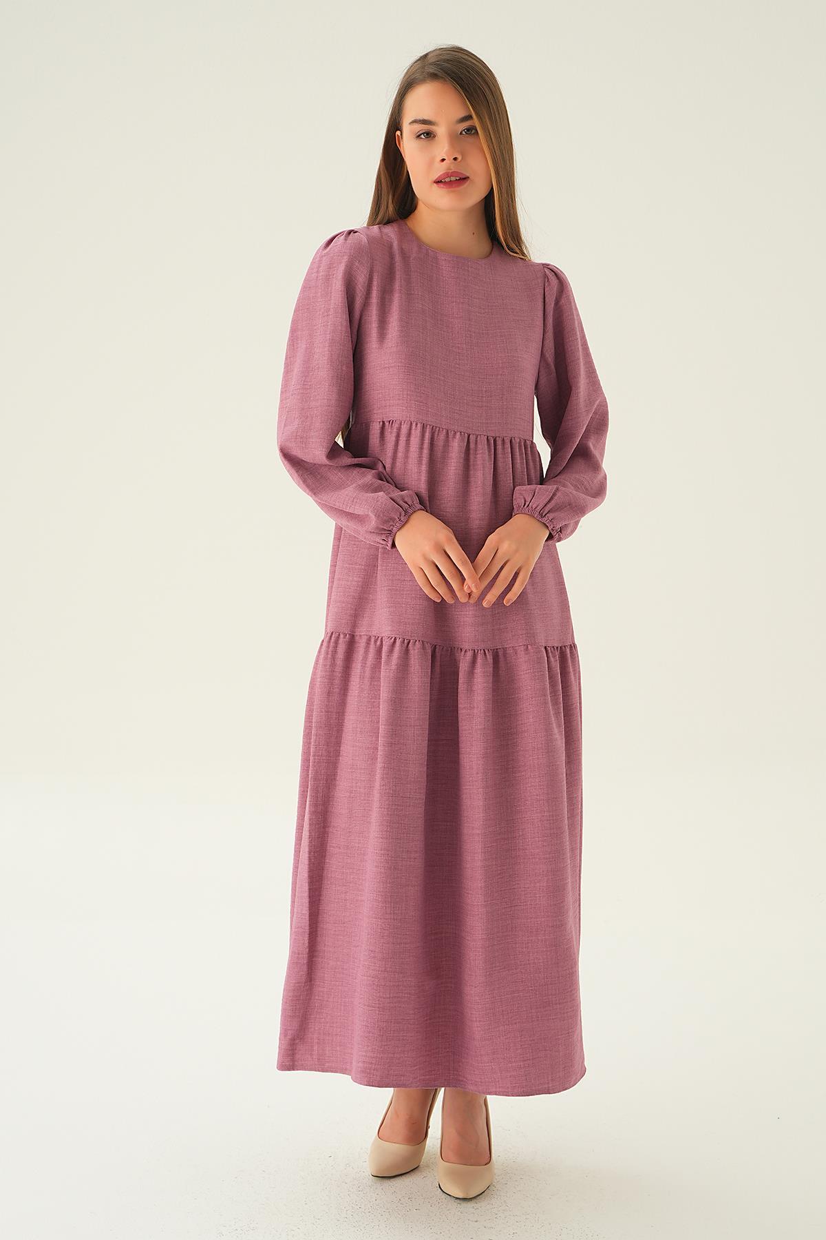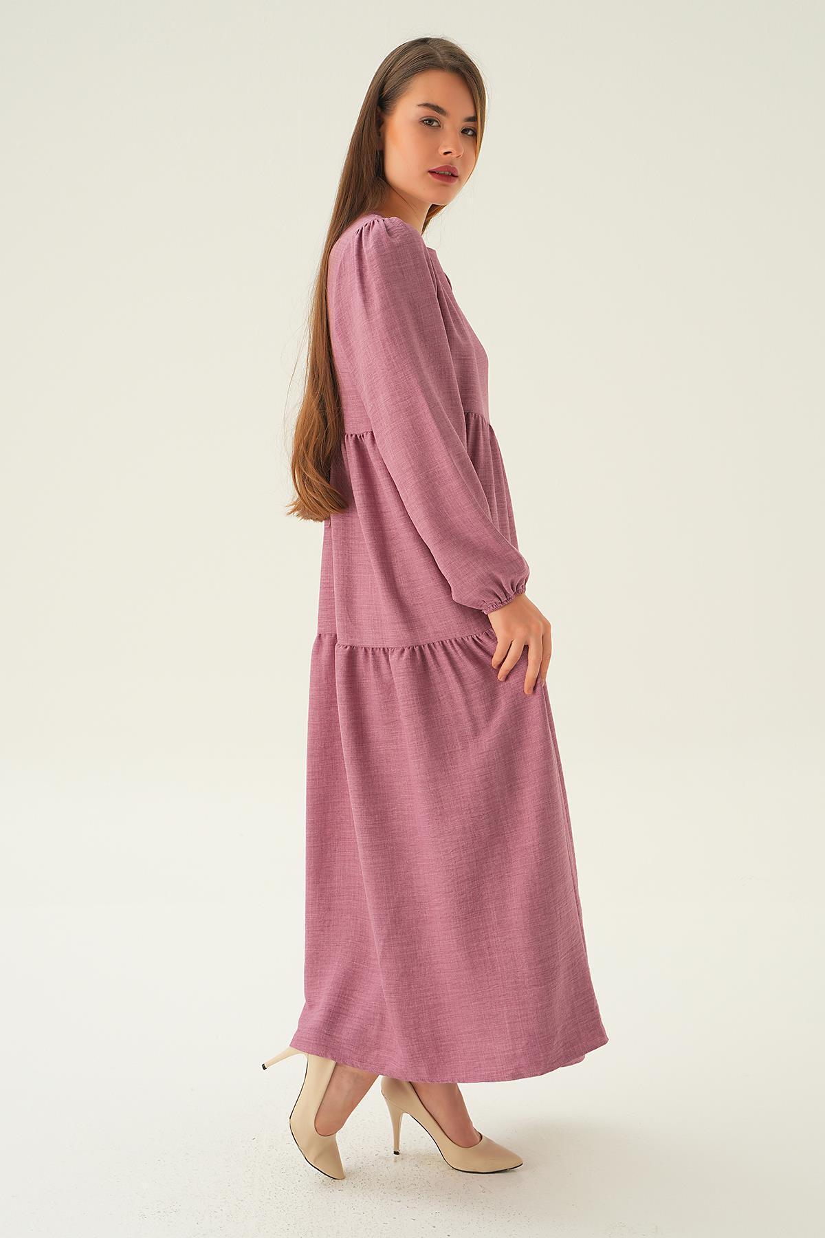 Gül Balon Kol Kat Kat Elbise 4019A