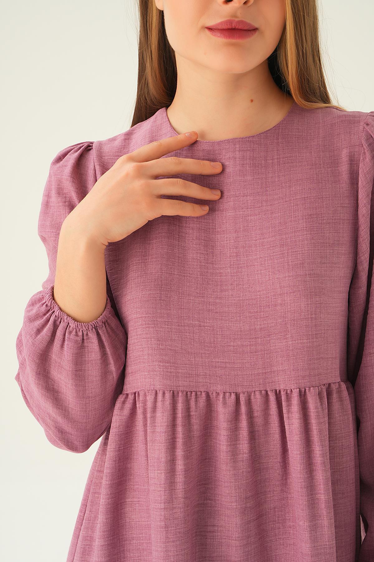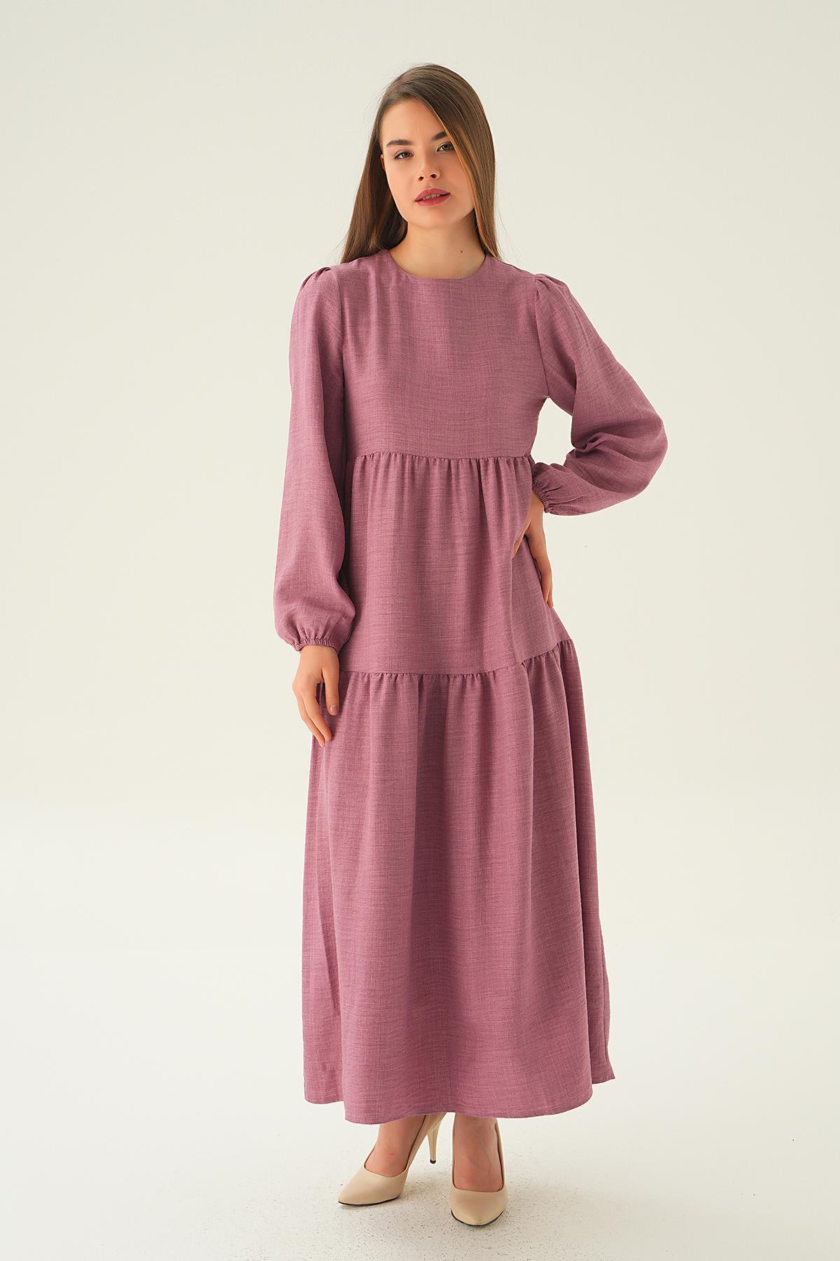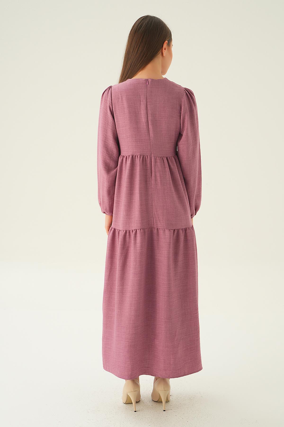 Gül Balon Kol Kat Kat Elbise 4019A