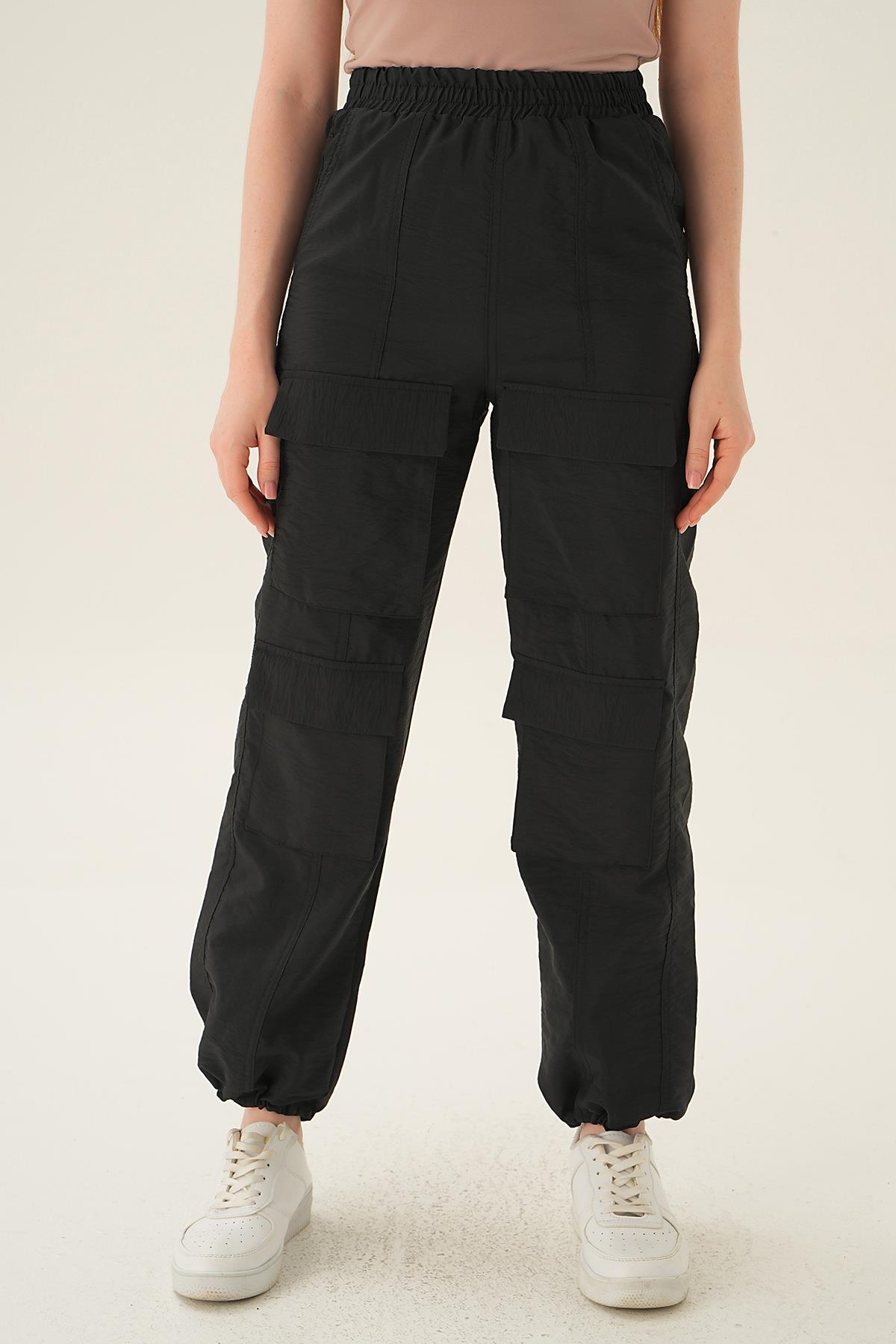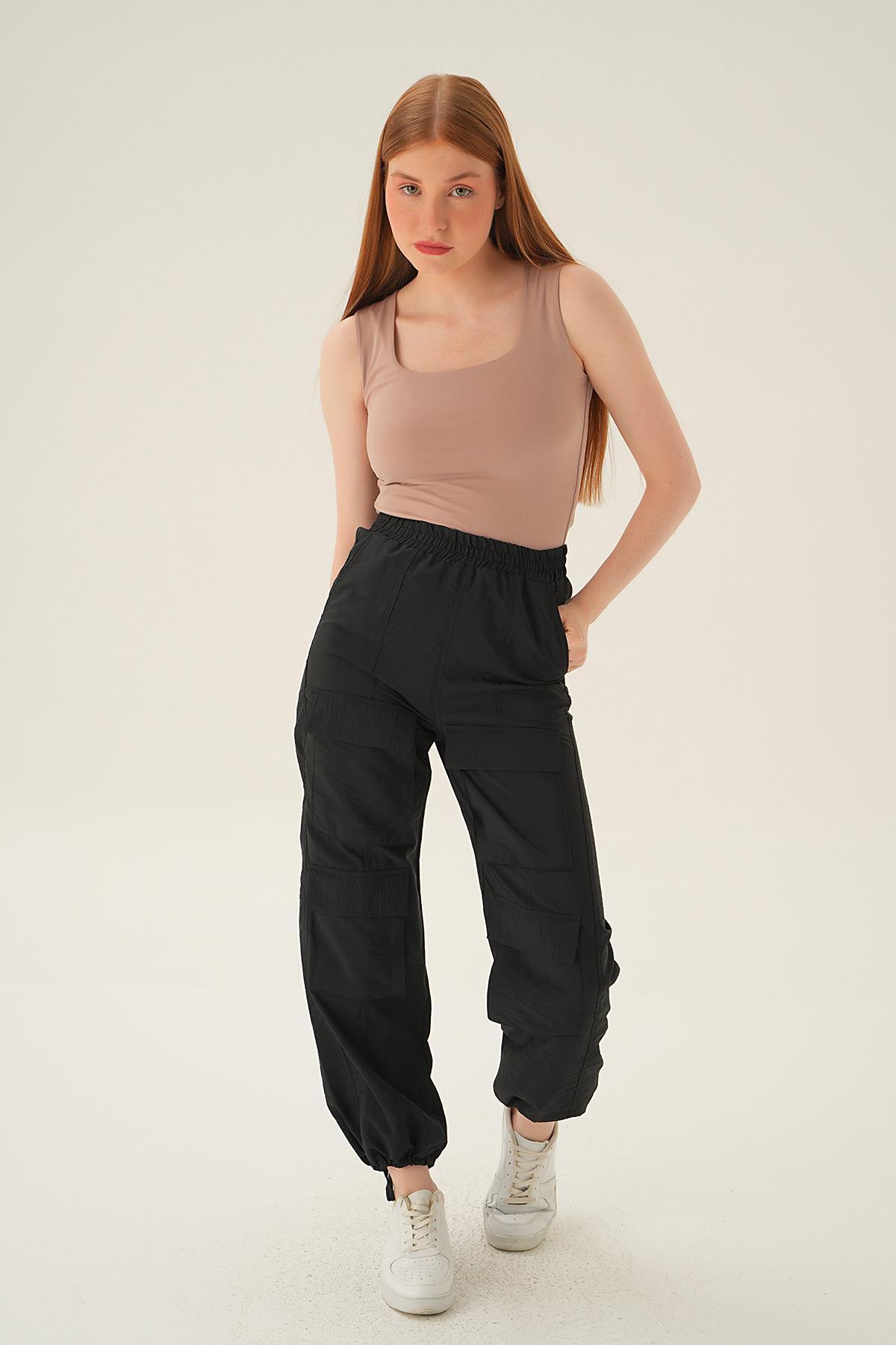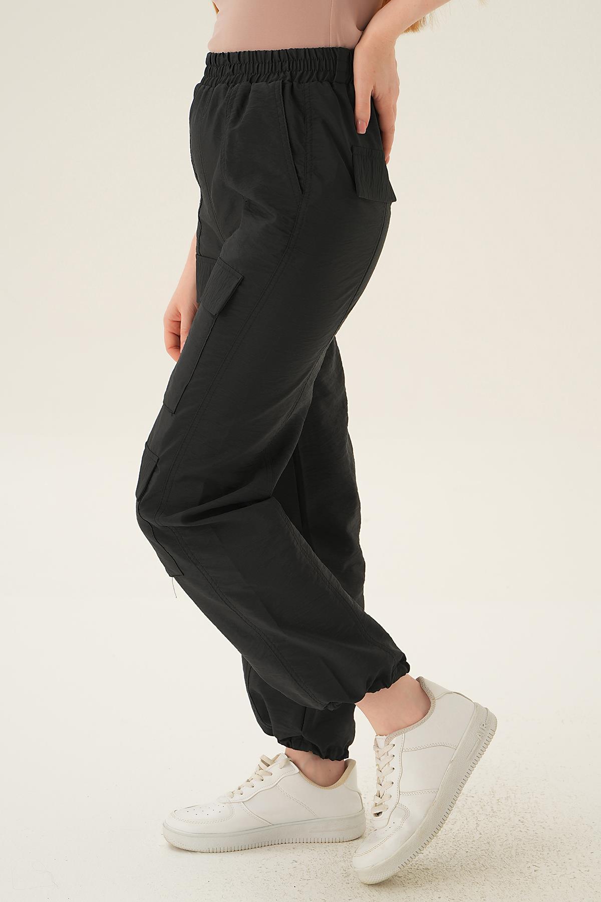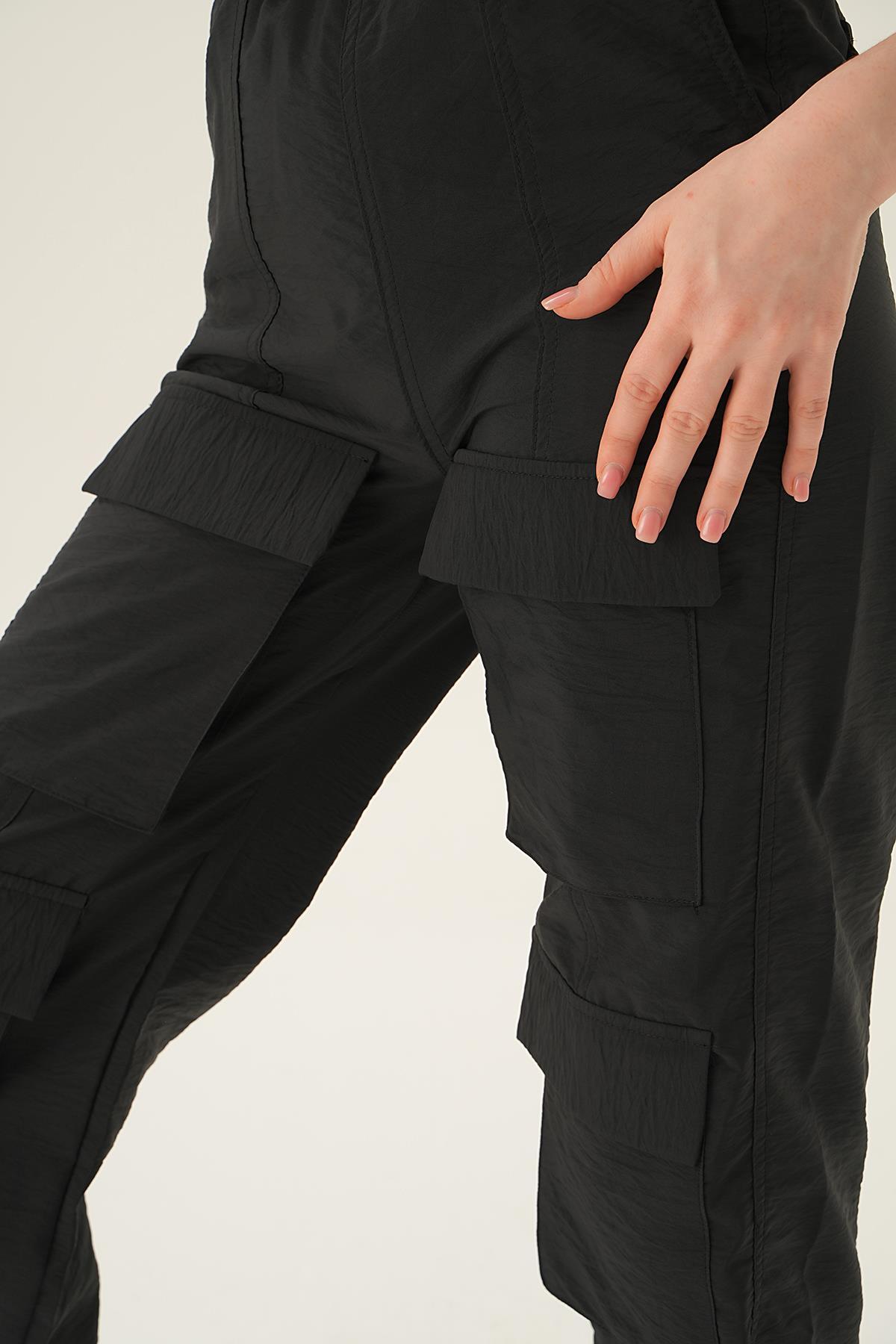 4024A Cep Detay Paraşüt Pantolon Siyah