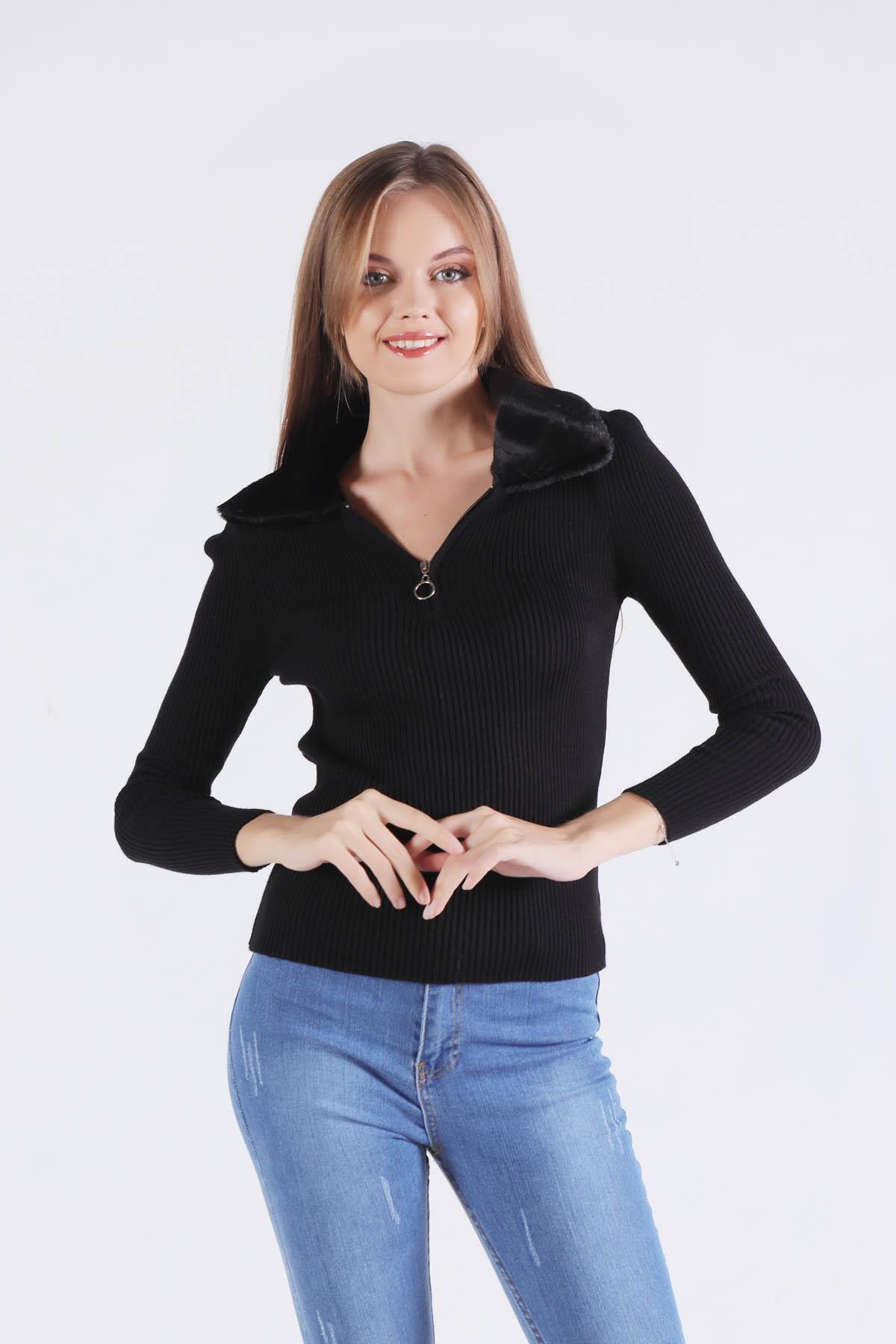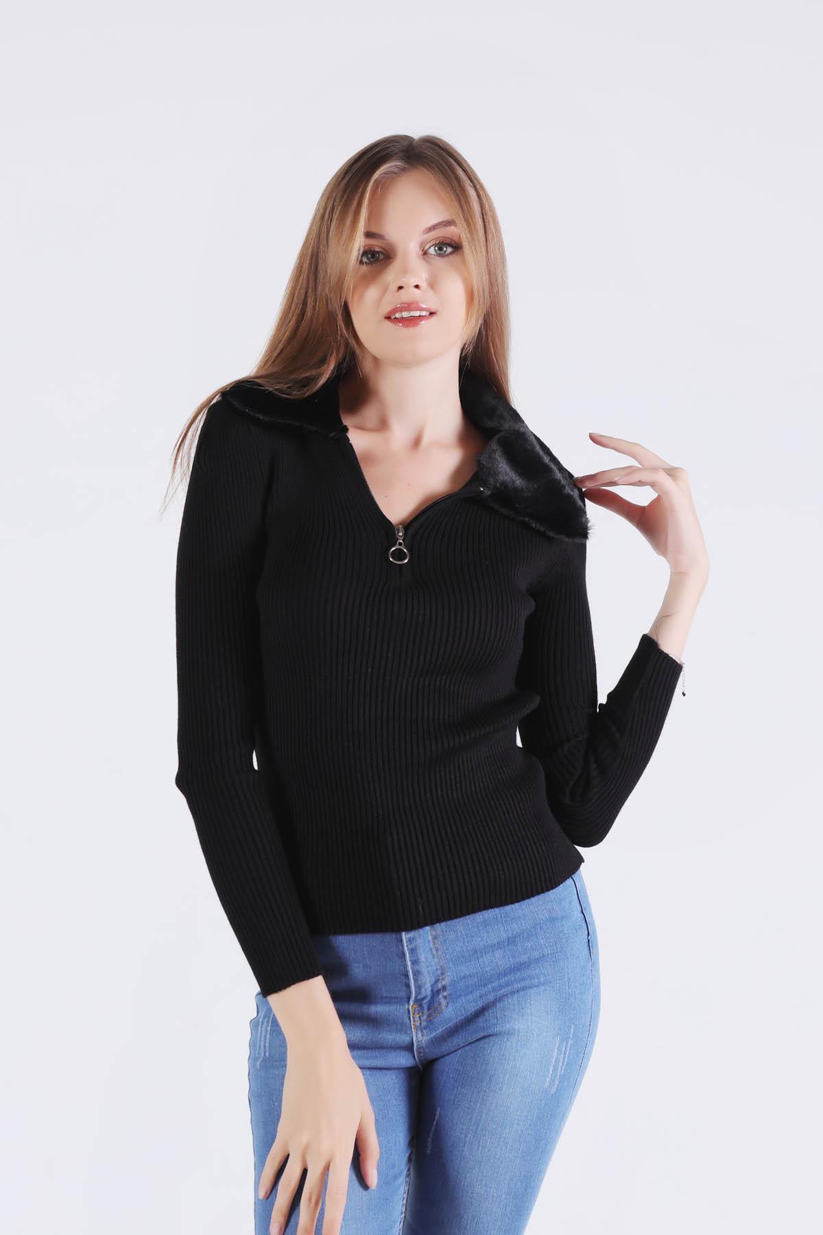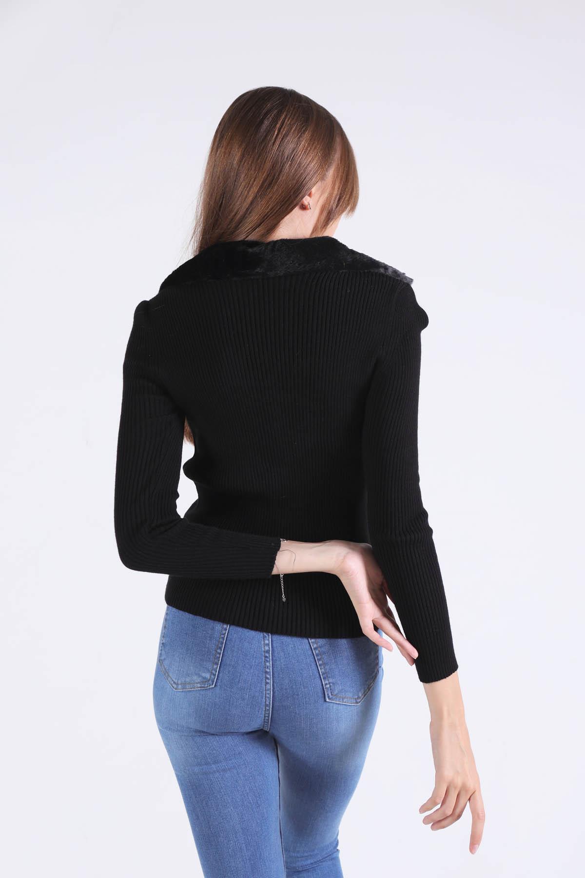 Siyah Yaka Kürklü Fermuarlı Kazak 4047