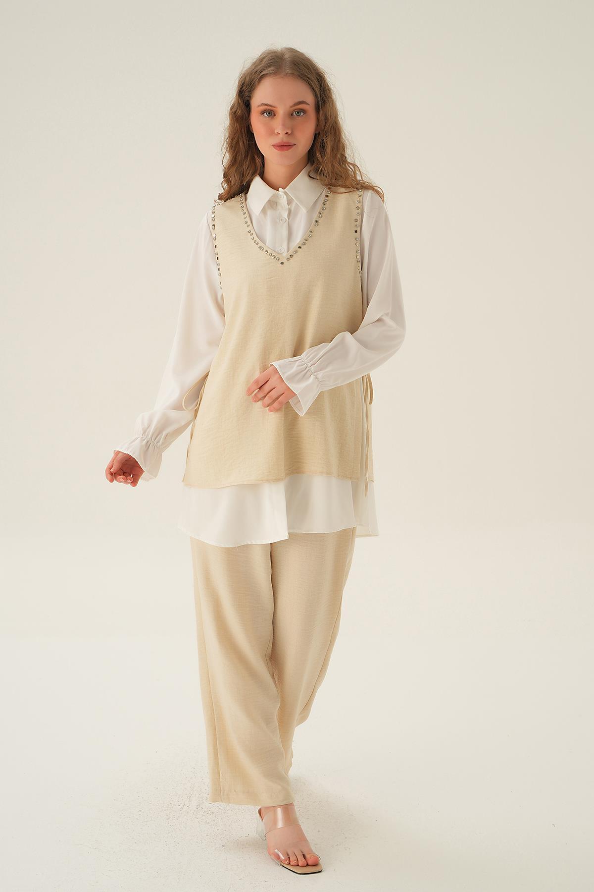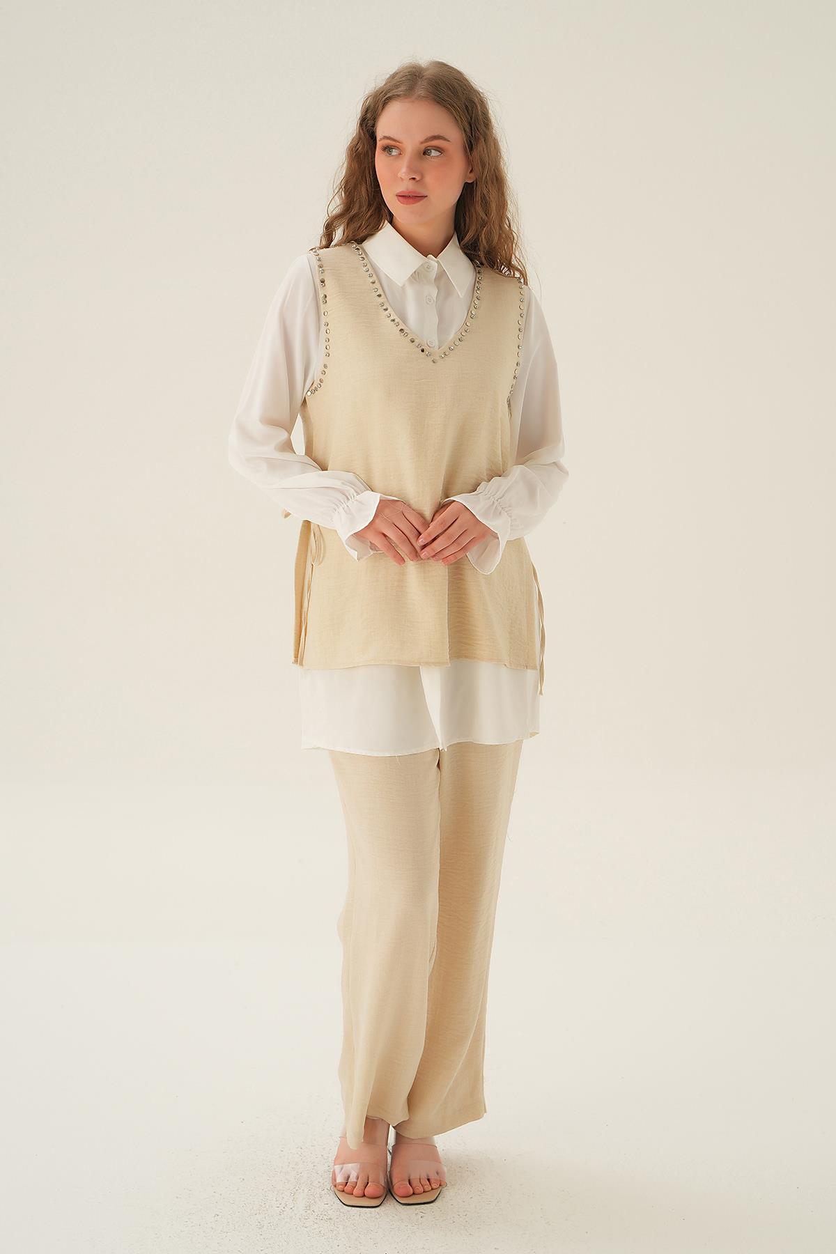 Bej Taş Detay 3'lü Takım 4053A