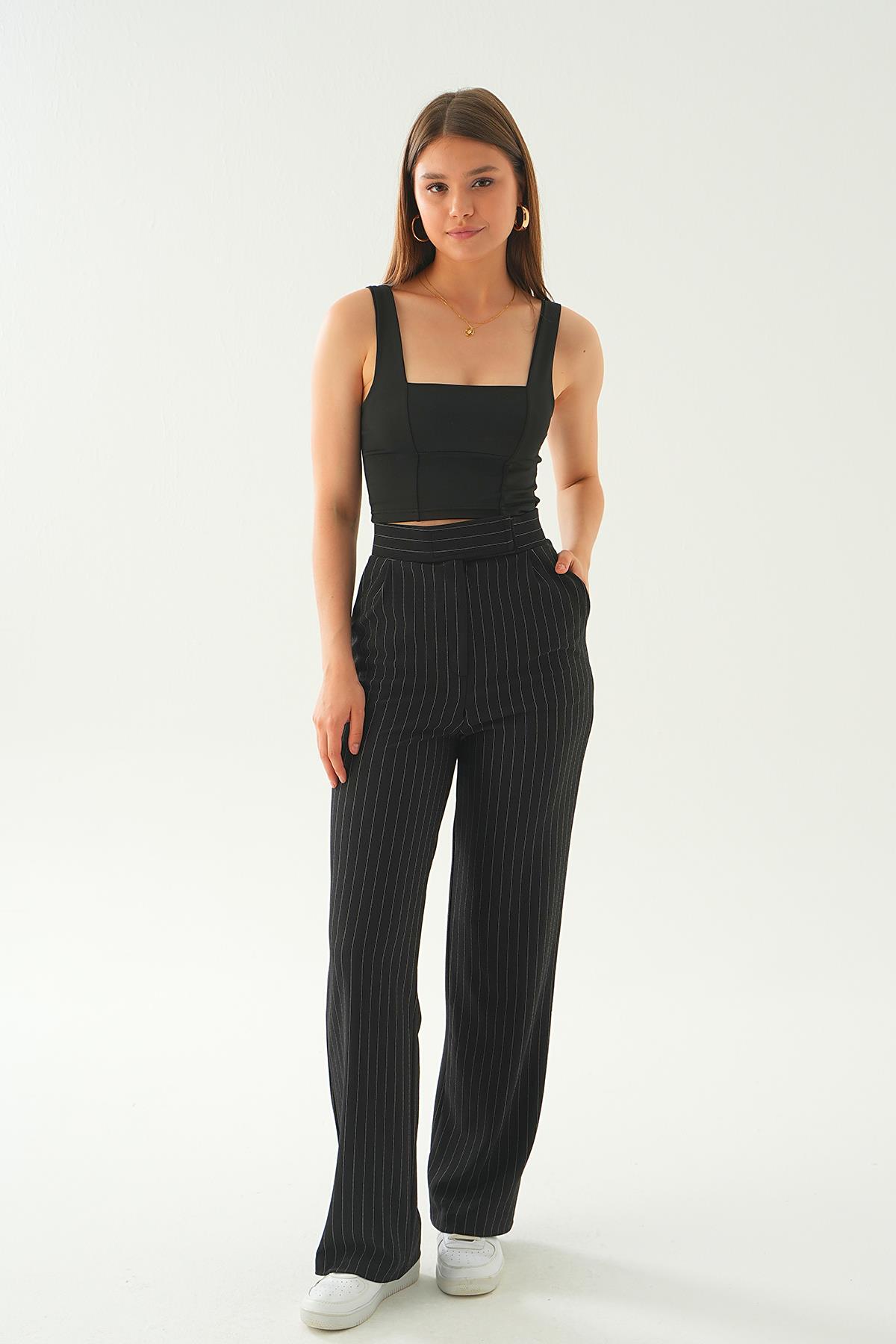 Siyah Pileli Geniş Paça Pantolon 3867 - RAYS Siyah Pileli Geniş Paça Pantolon 3867 - RAYS (1)