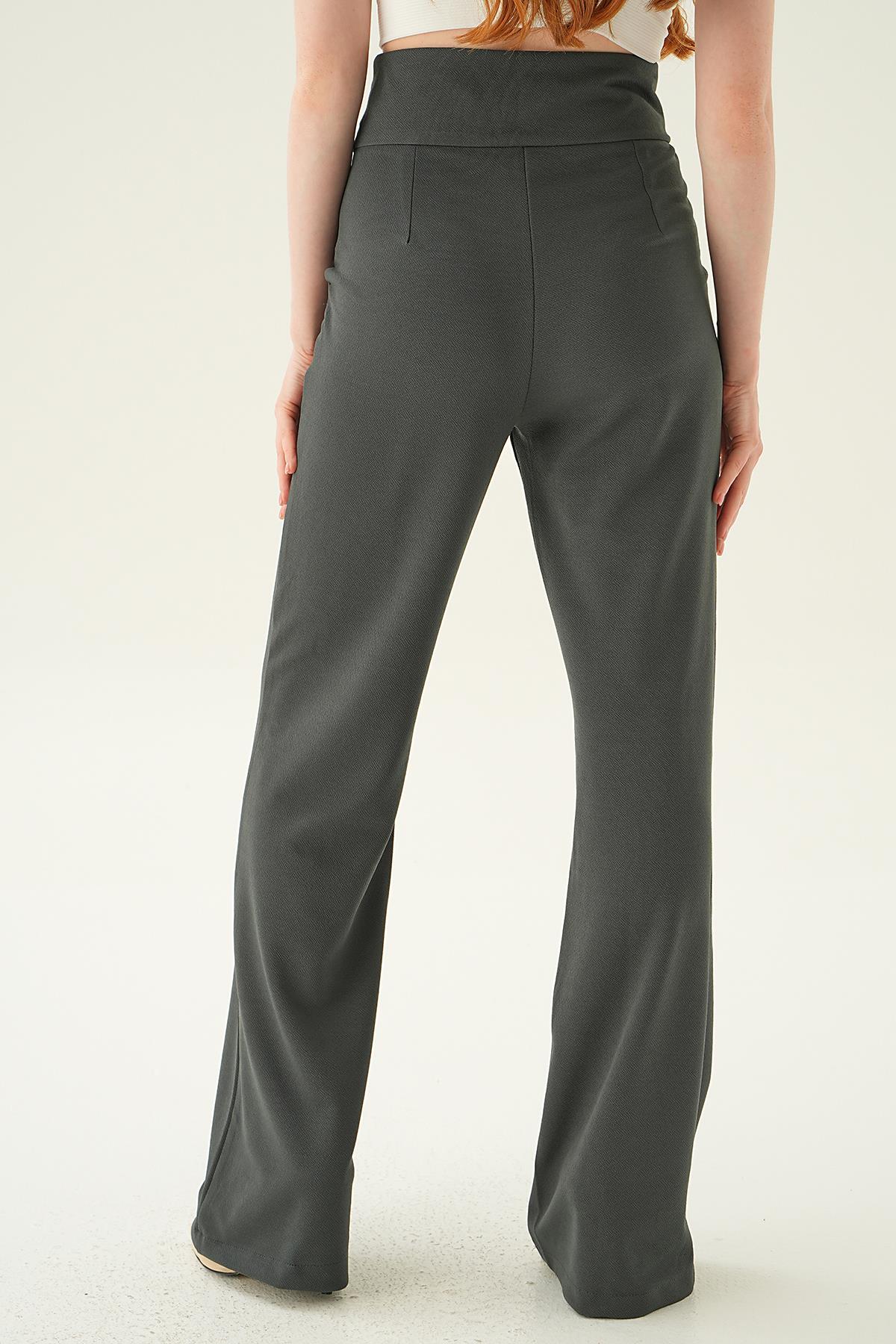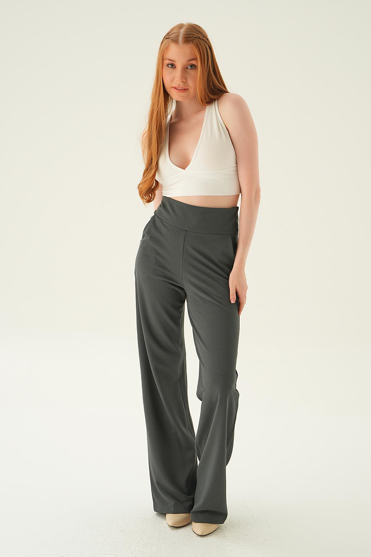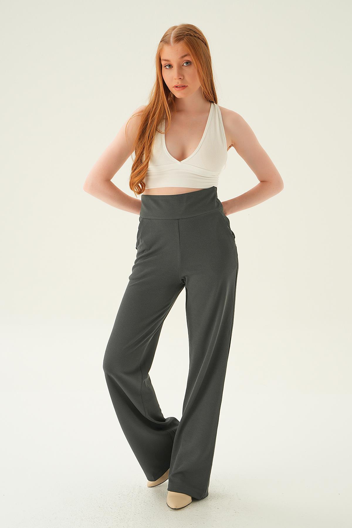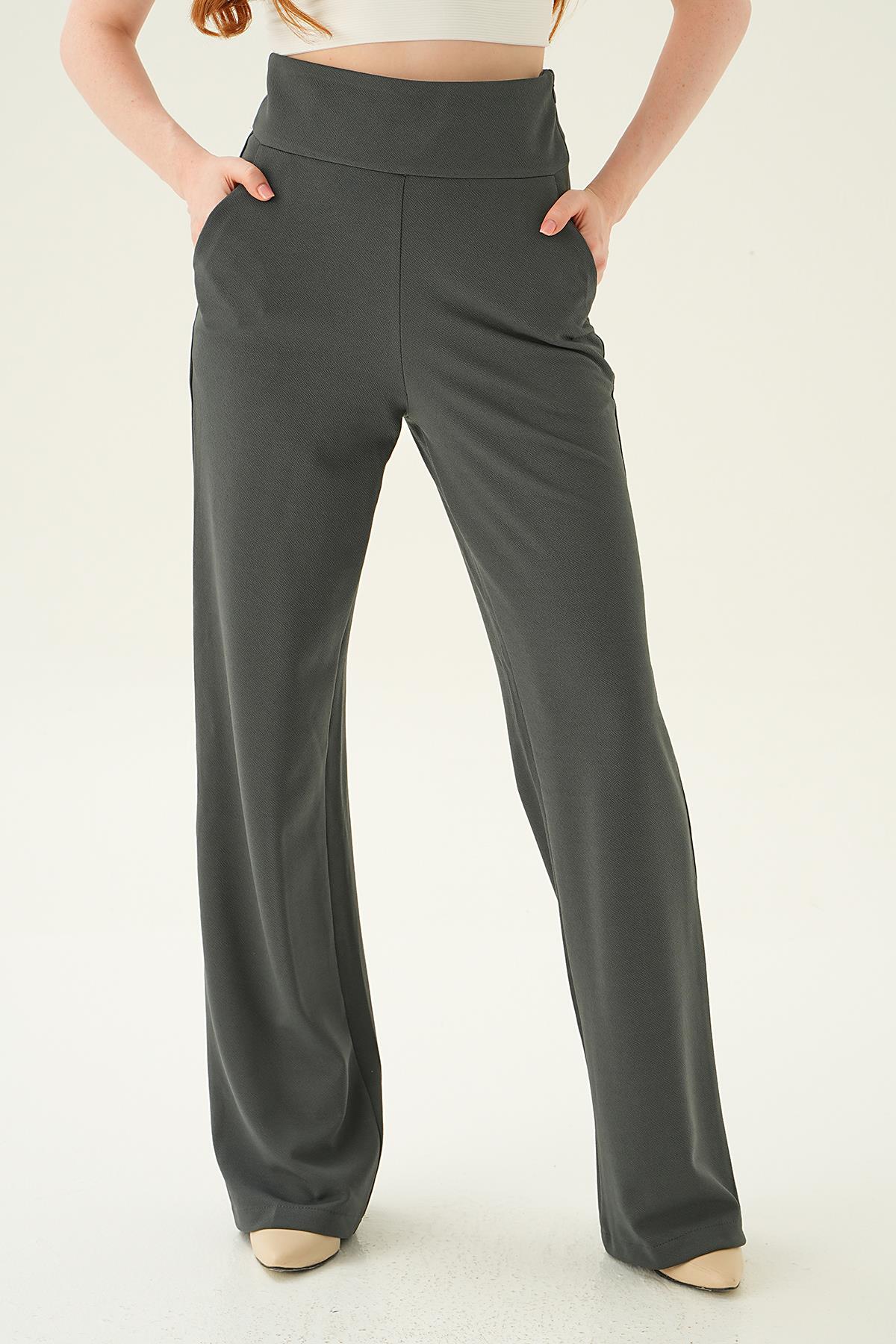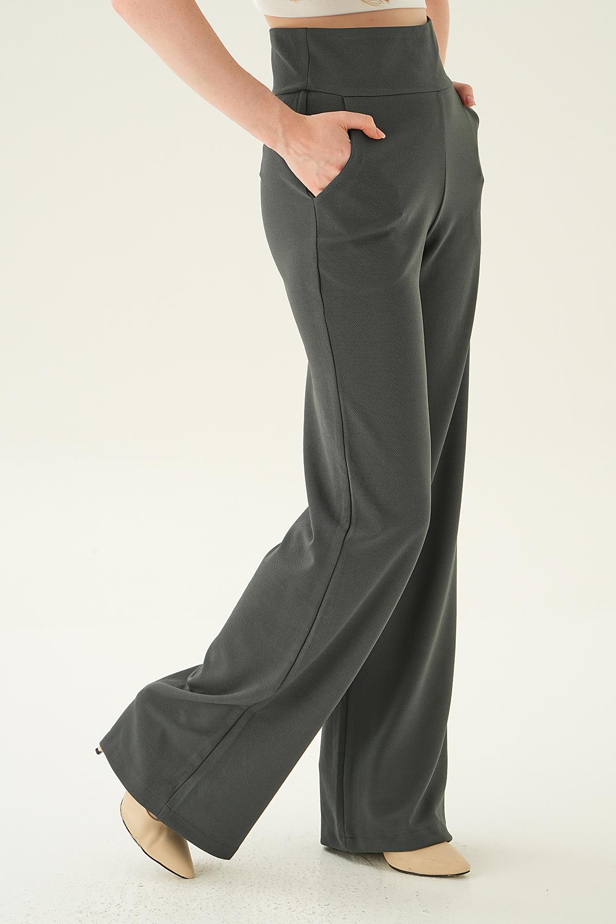 Füme Yüksek Bel Cepli Palazzo Pantolon 4056A
