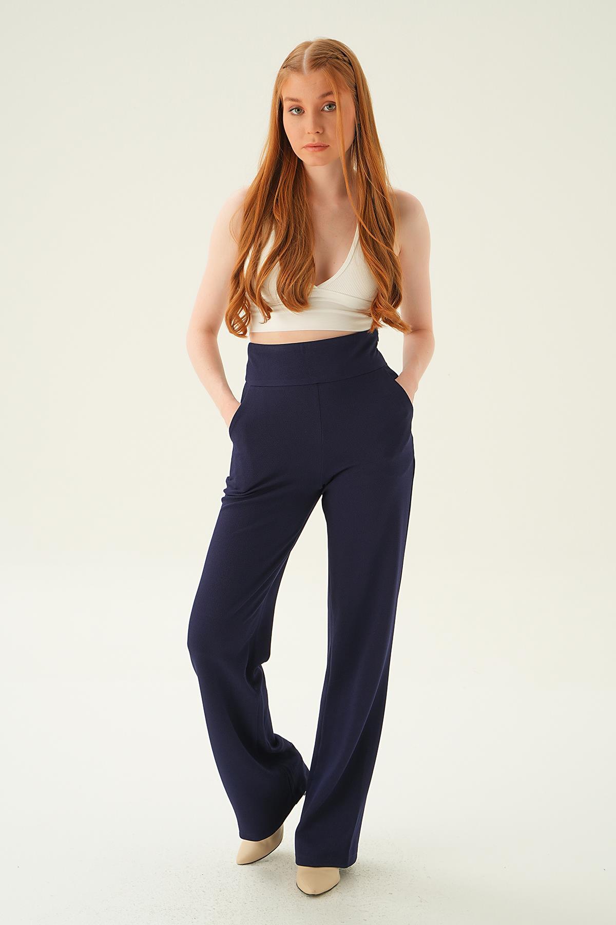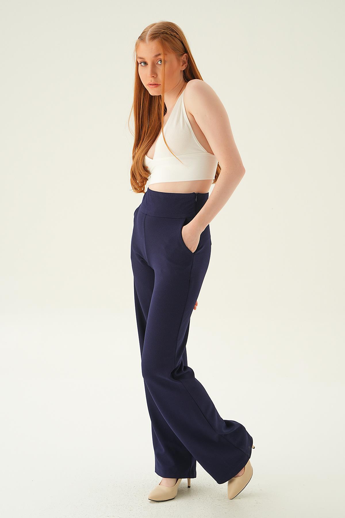 Laci Yüksek Bel Cepli Palazzo Pantolon 4056A