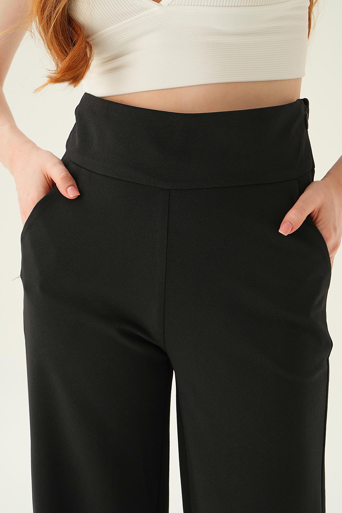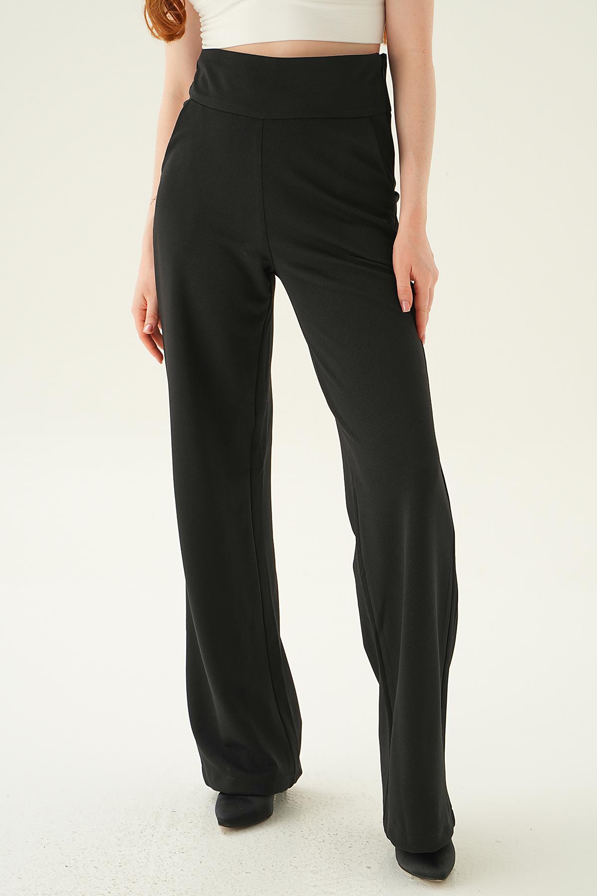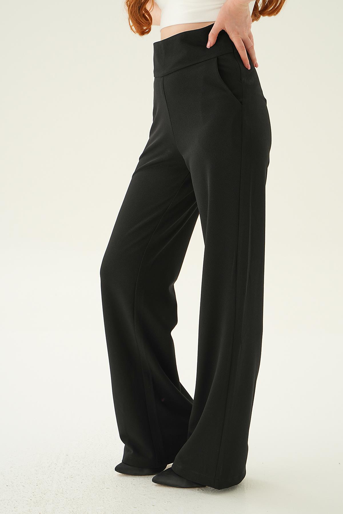 Siyah Yüksek Bel Cepli Palazzo Pantolon 4056A