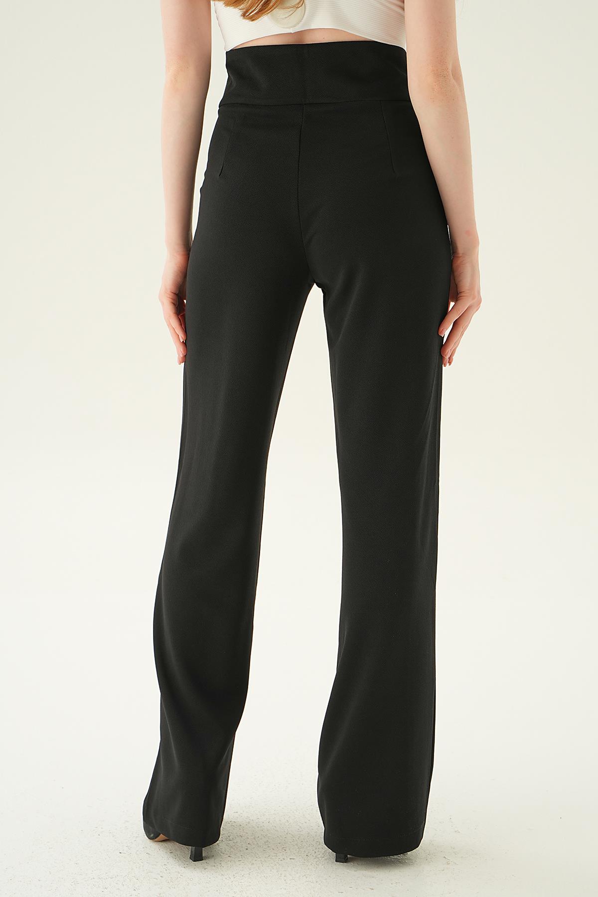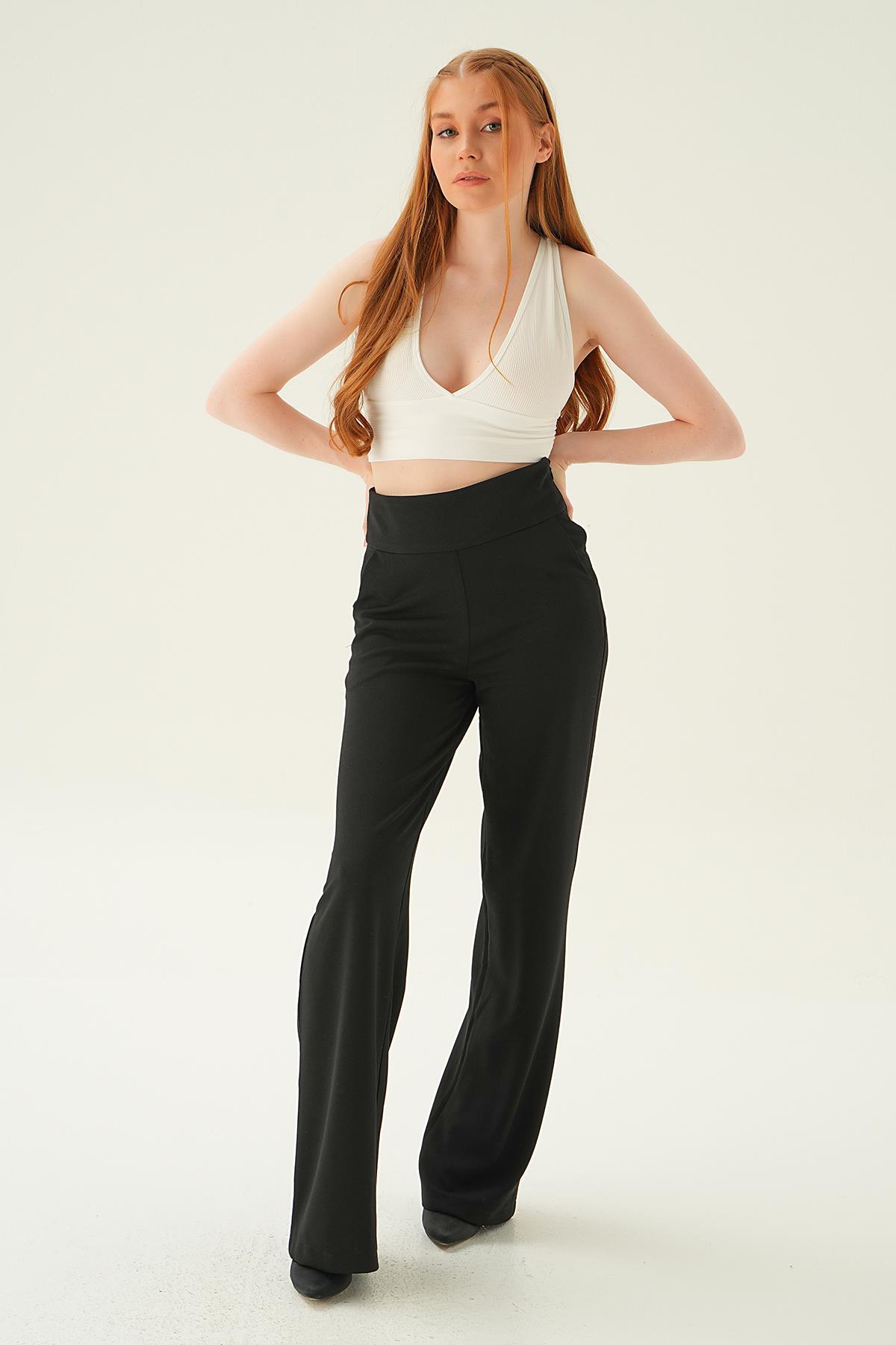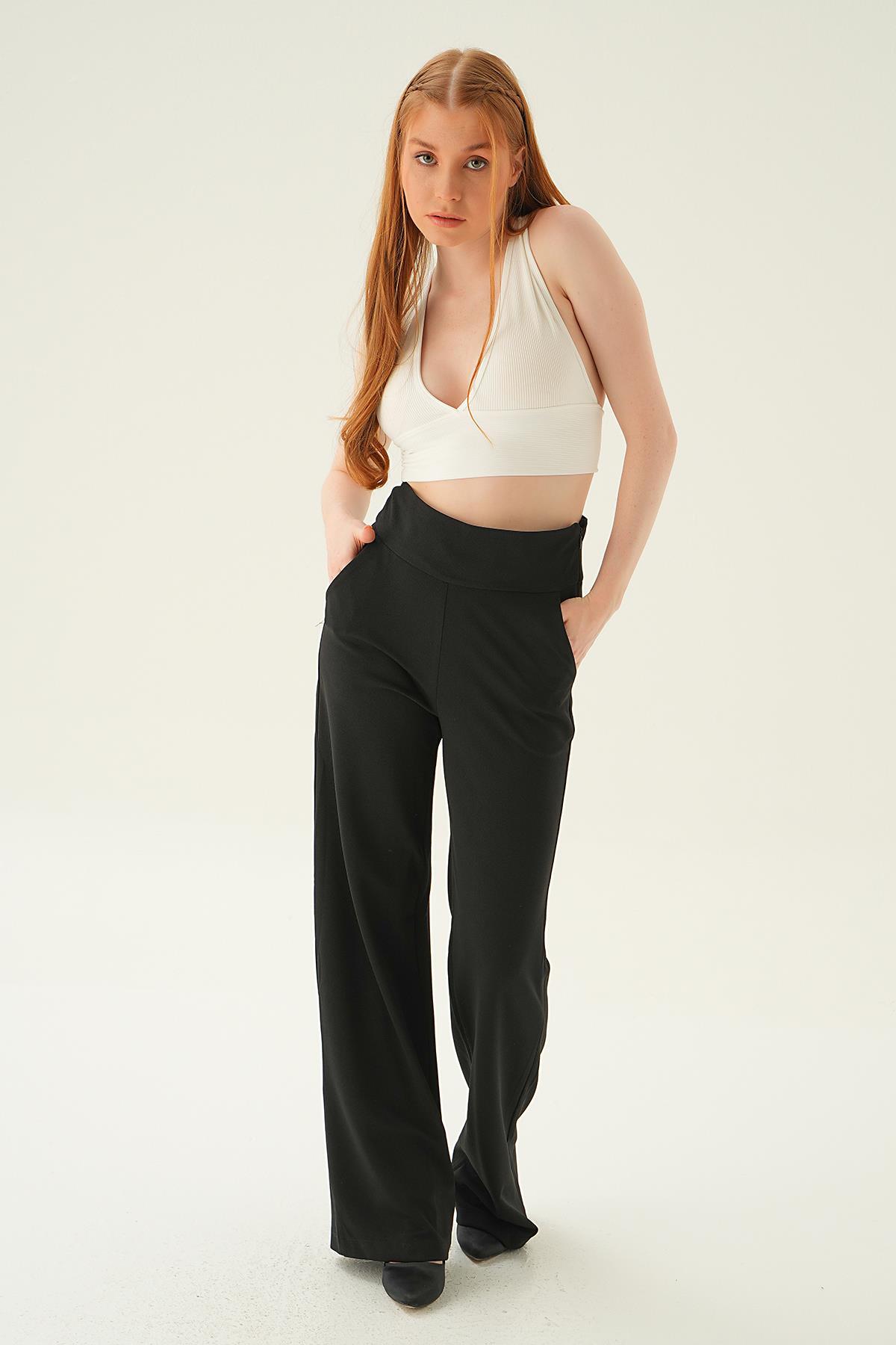 Siyah Yüksek Bel Cepli Palazzo Pantolon 4056A