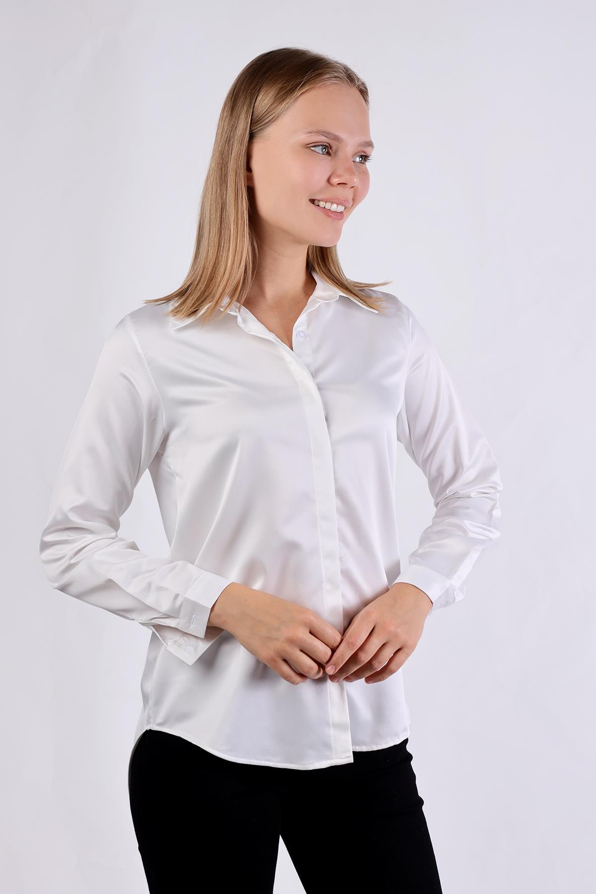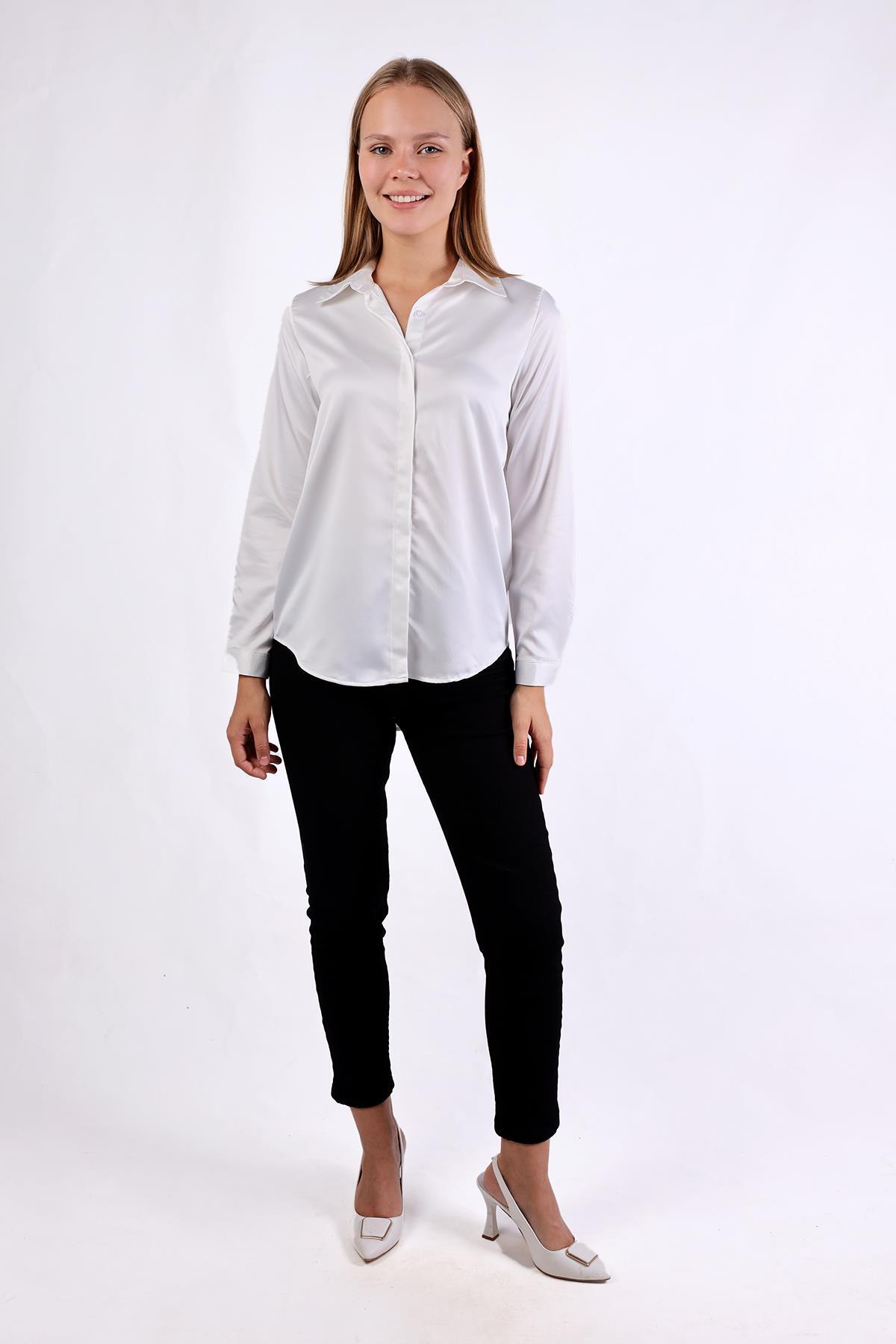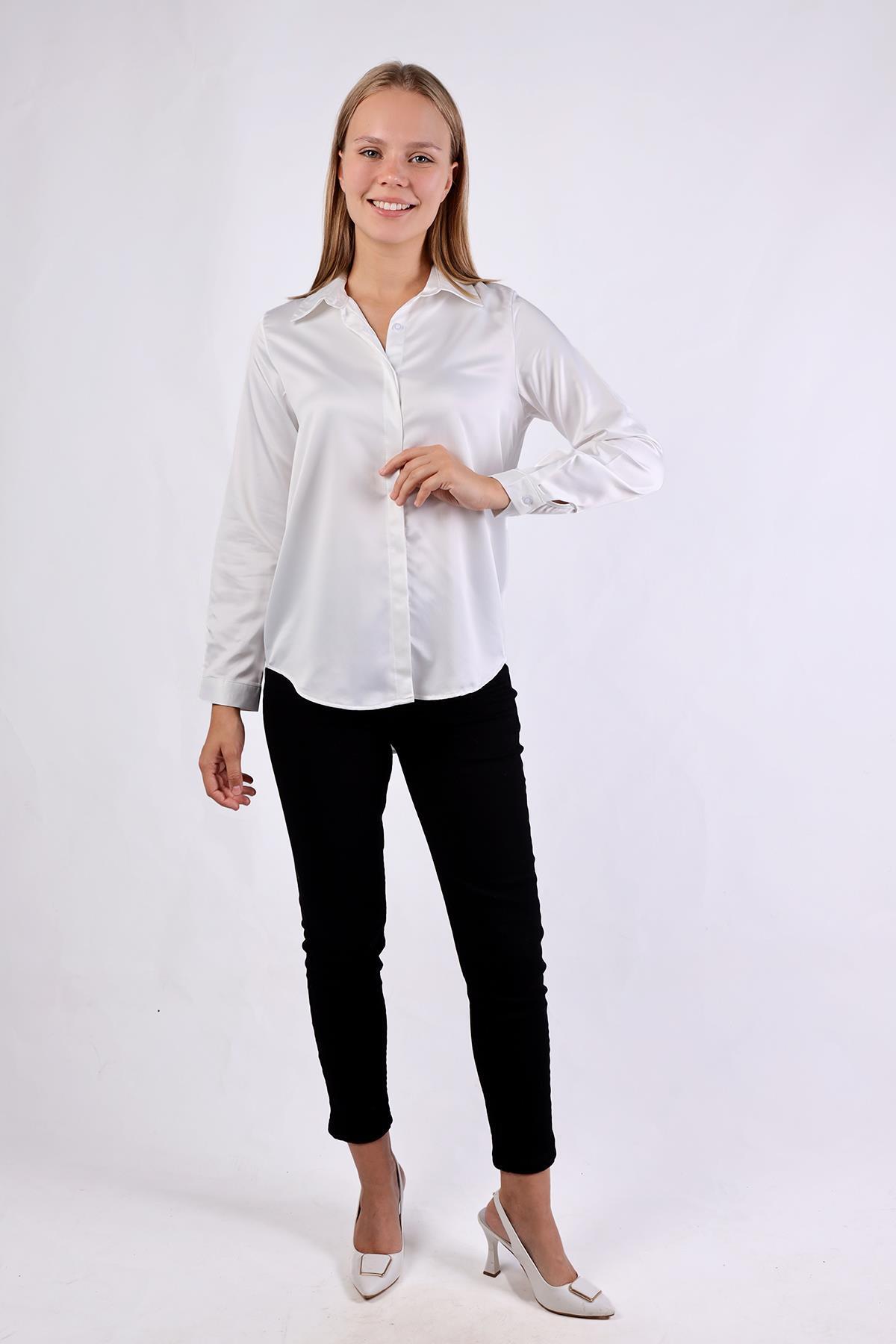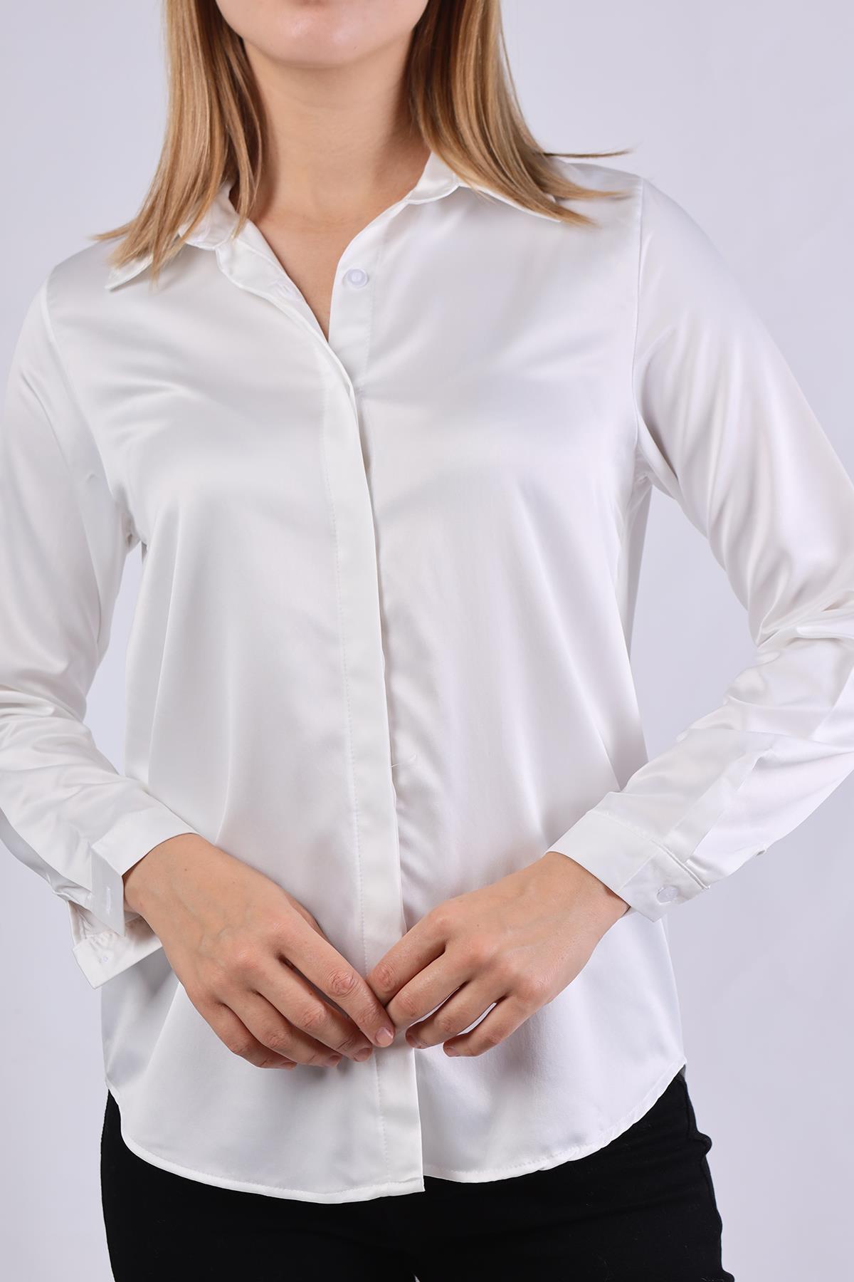 Beyaz Gizli Düğme Detay Gömlek 4057A
