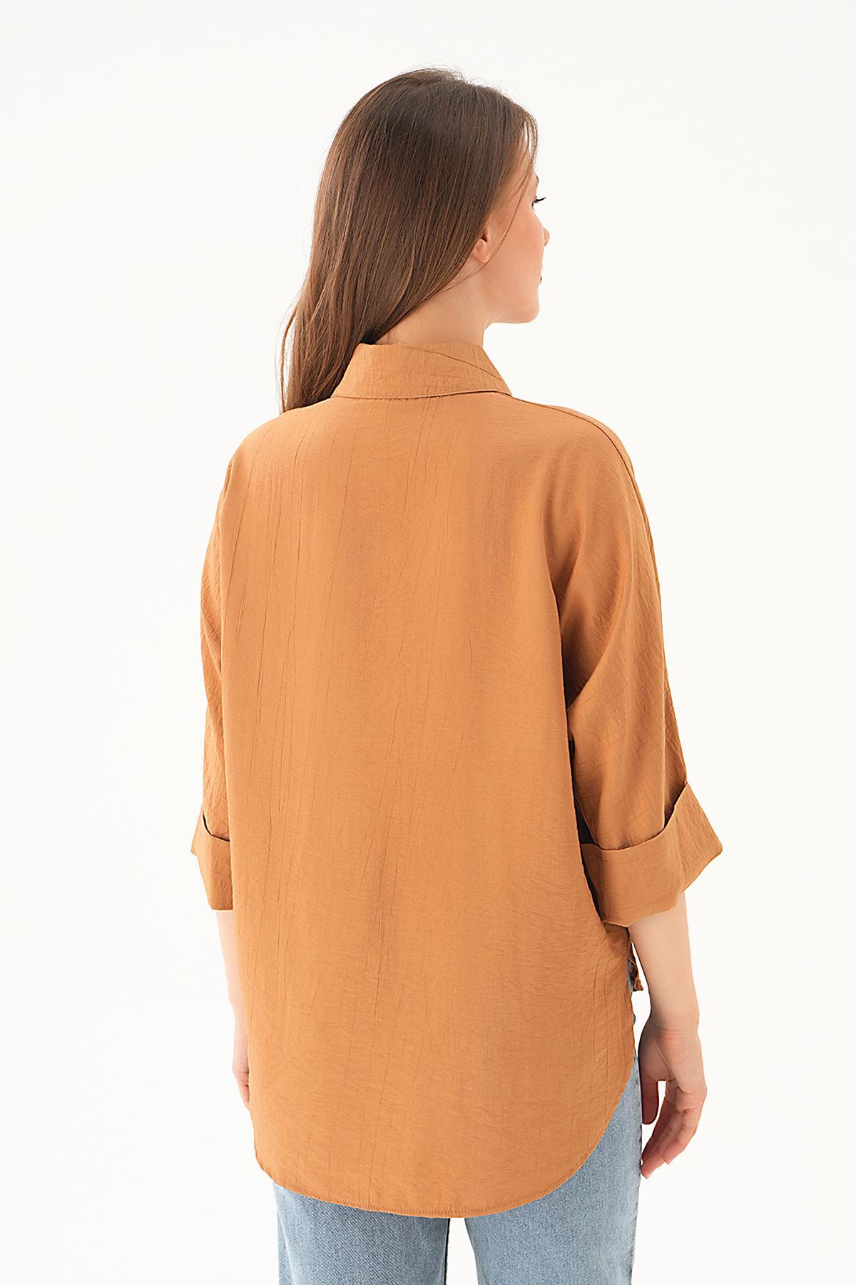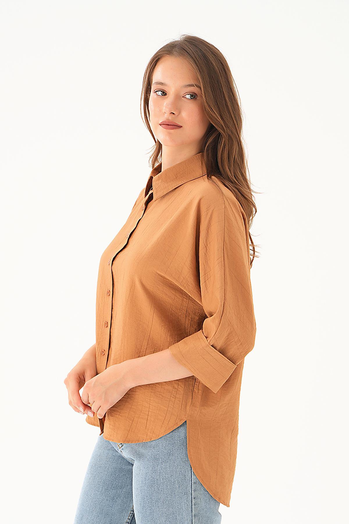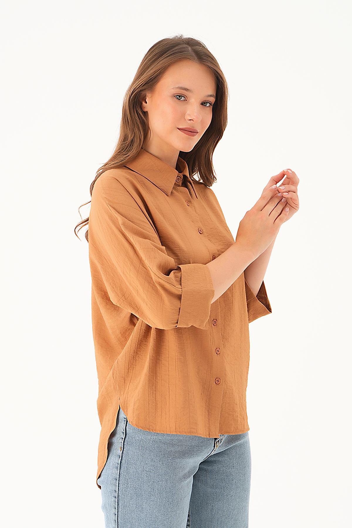Kahve Çizgili Oversize Gömlek 5460 - RAYS Kahve Çizgili Oversize Gömlek 5460 - RAYS (1)