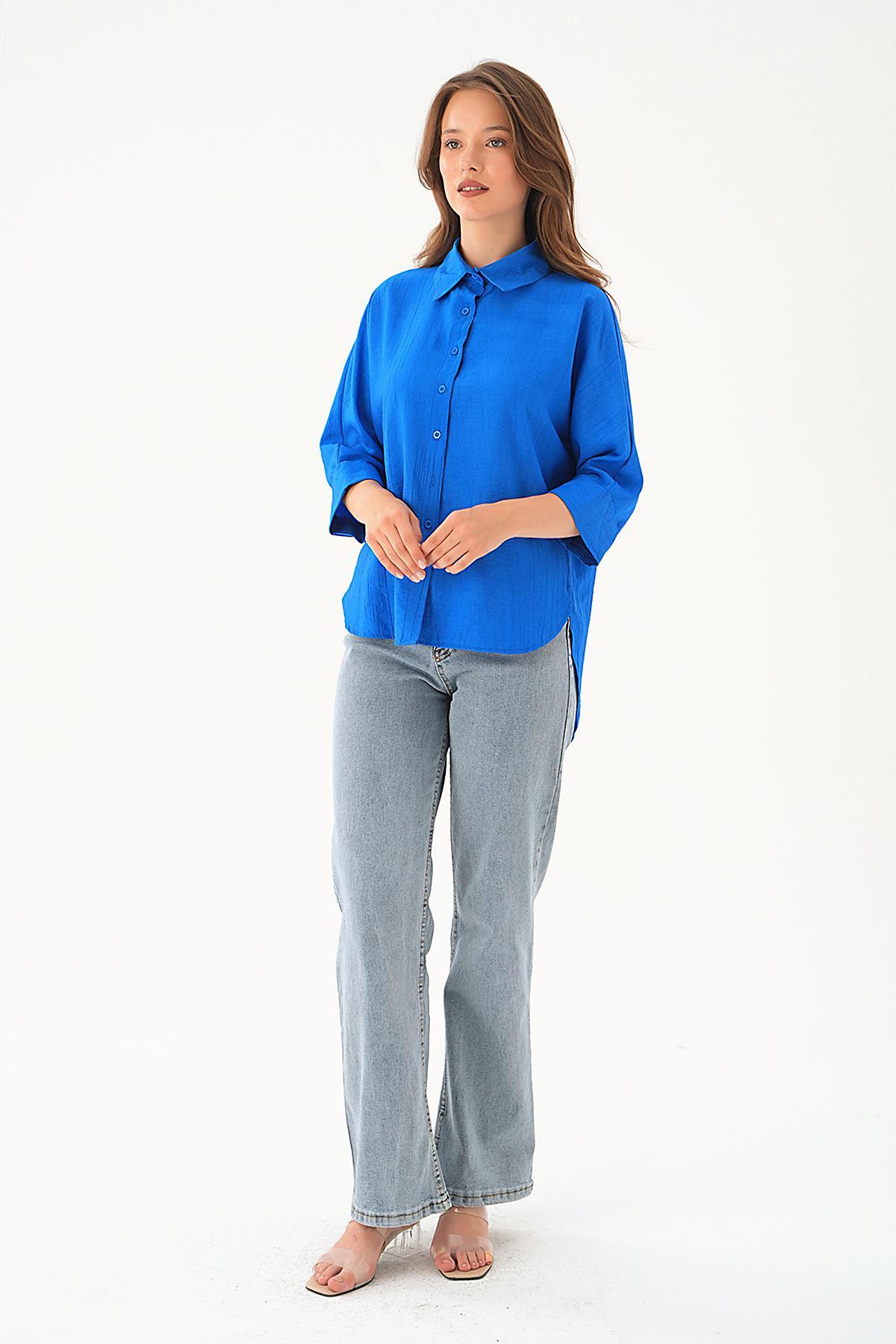 Mavi Çizgili Oversize Gömlek 5460 - RAYS Mavi Çizgili Oversize Gömlek 5460 - RAYS (1)