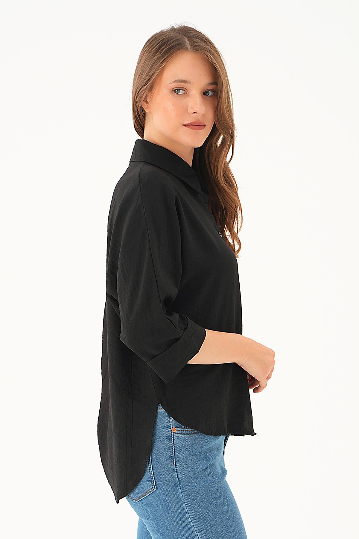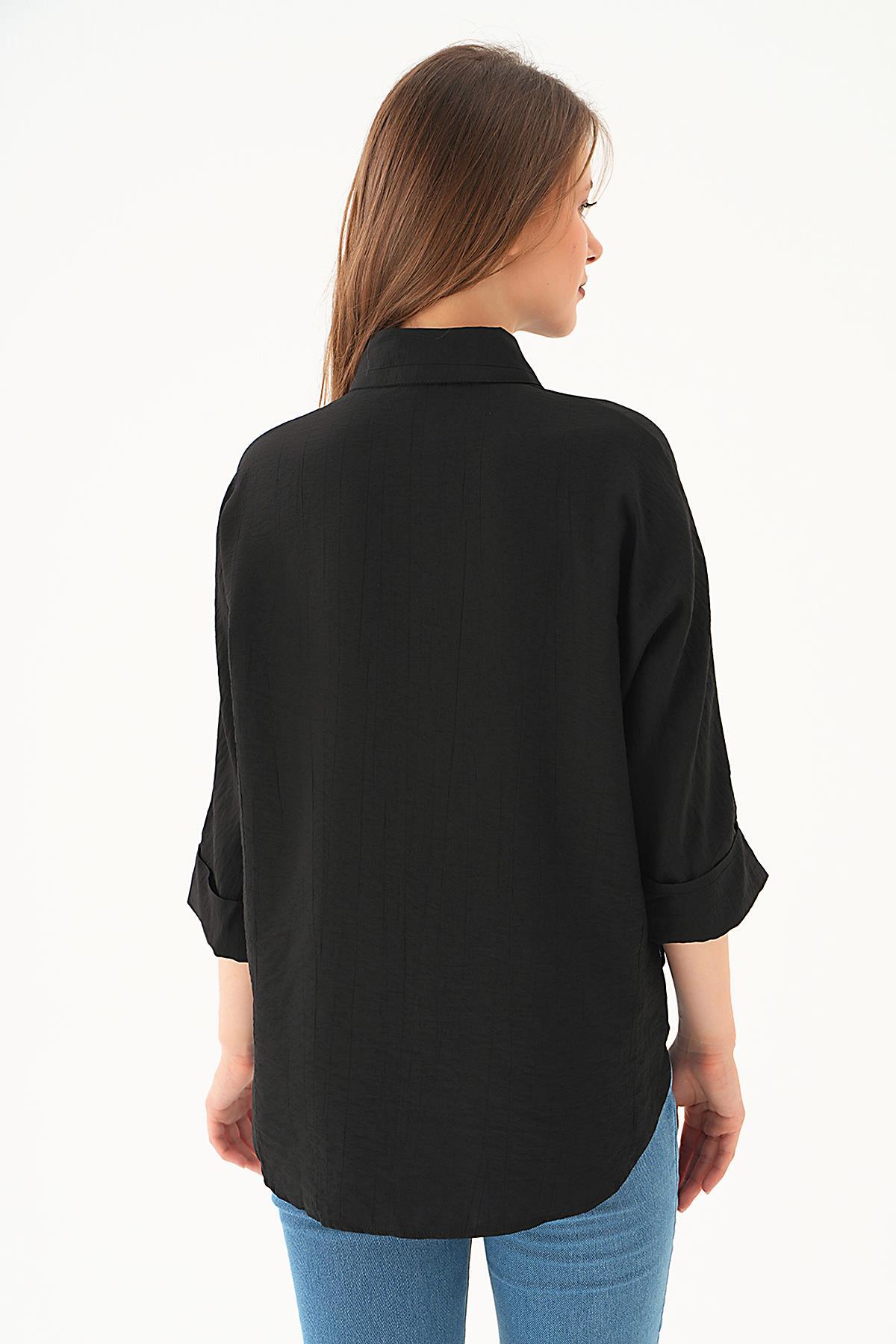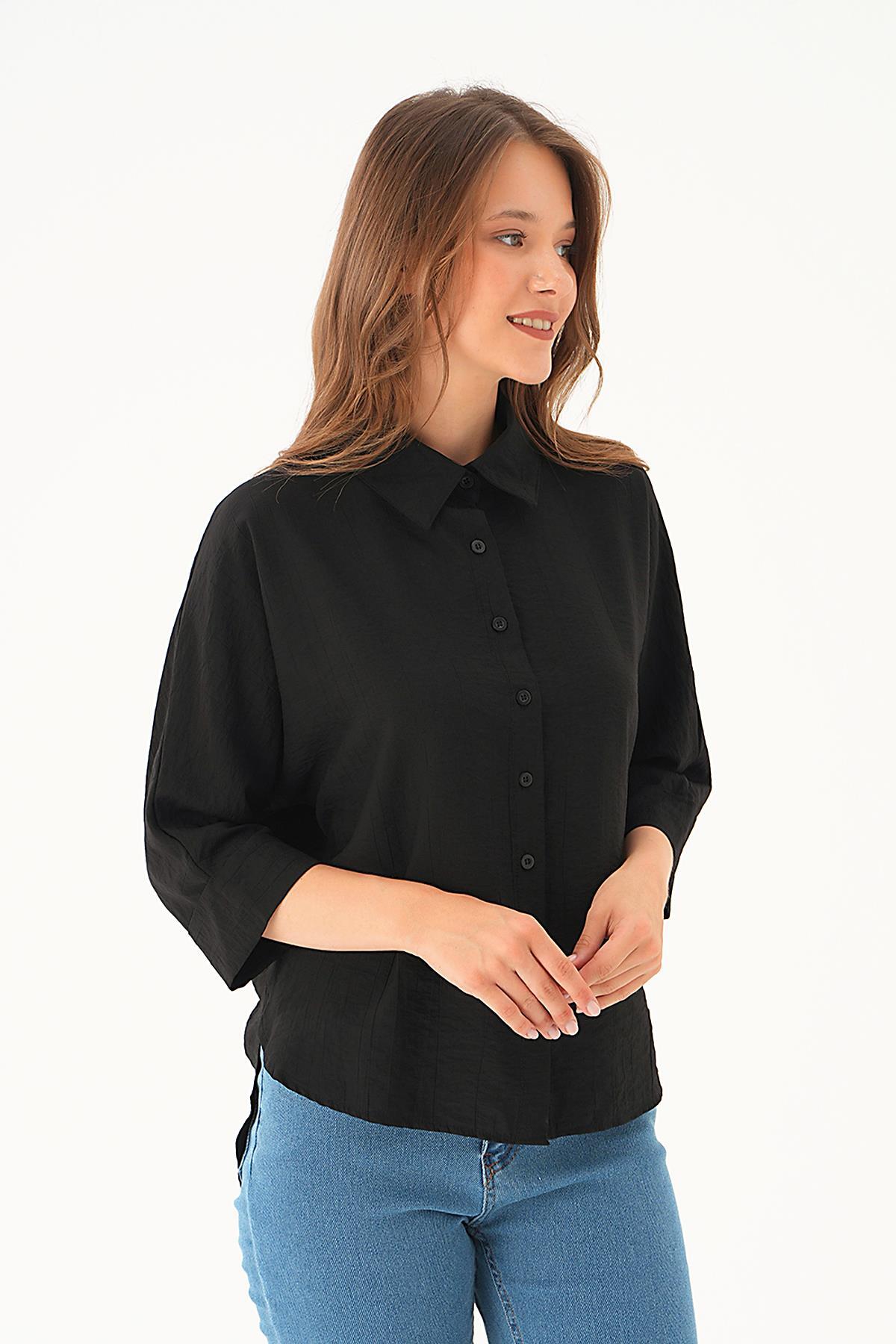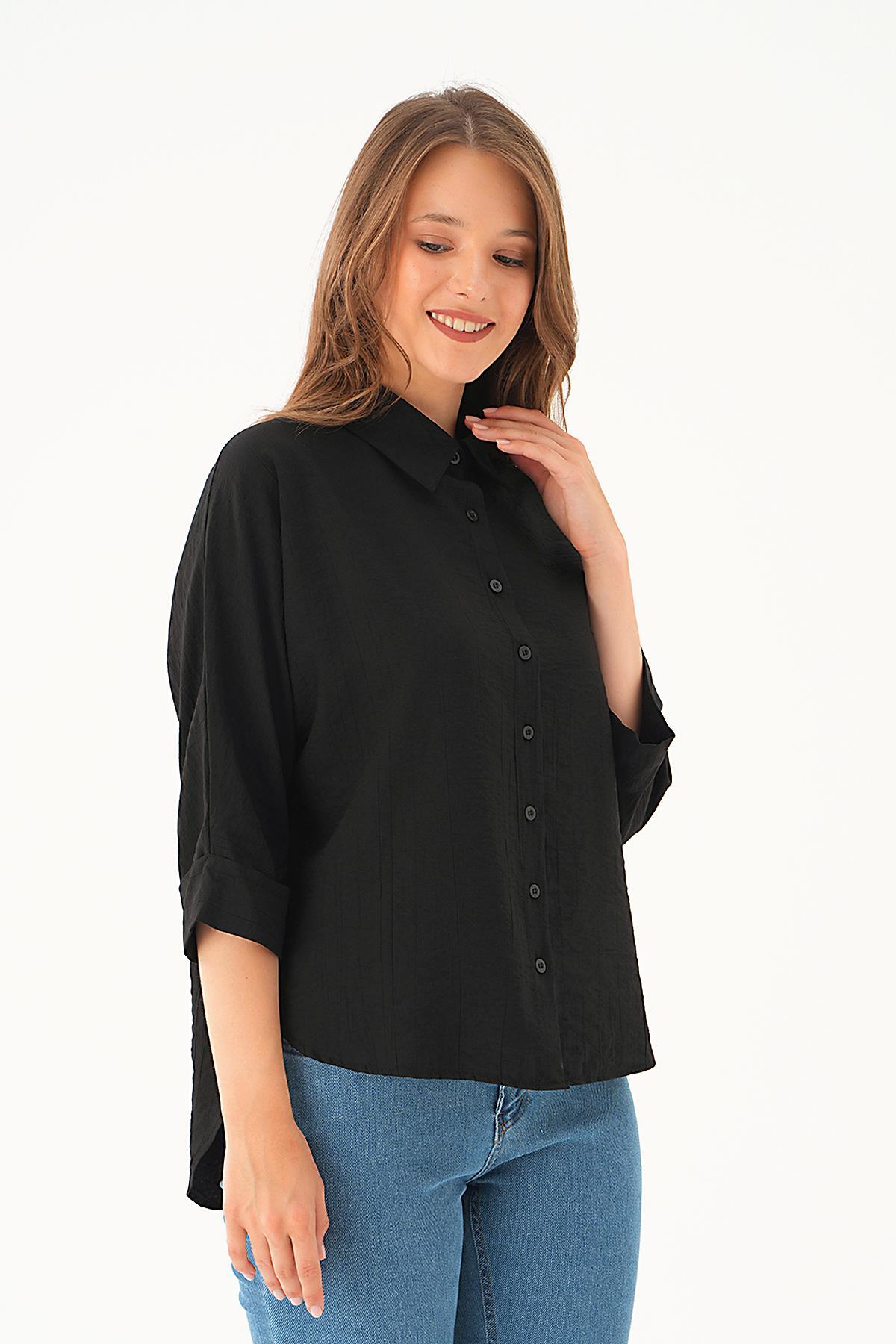 Siyah Fakir Kol Gömlek 4058A