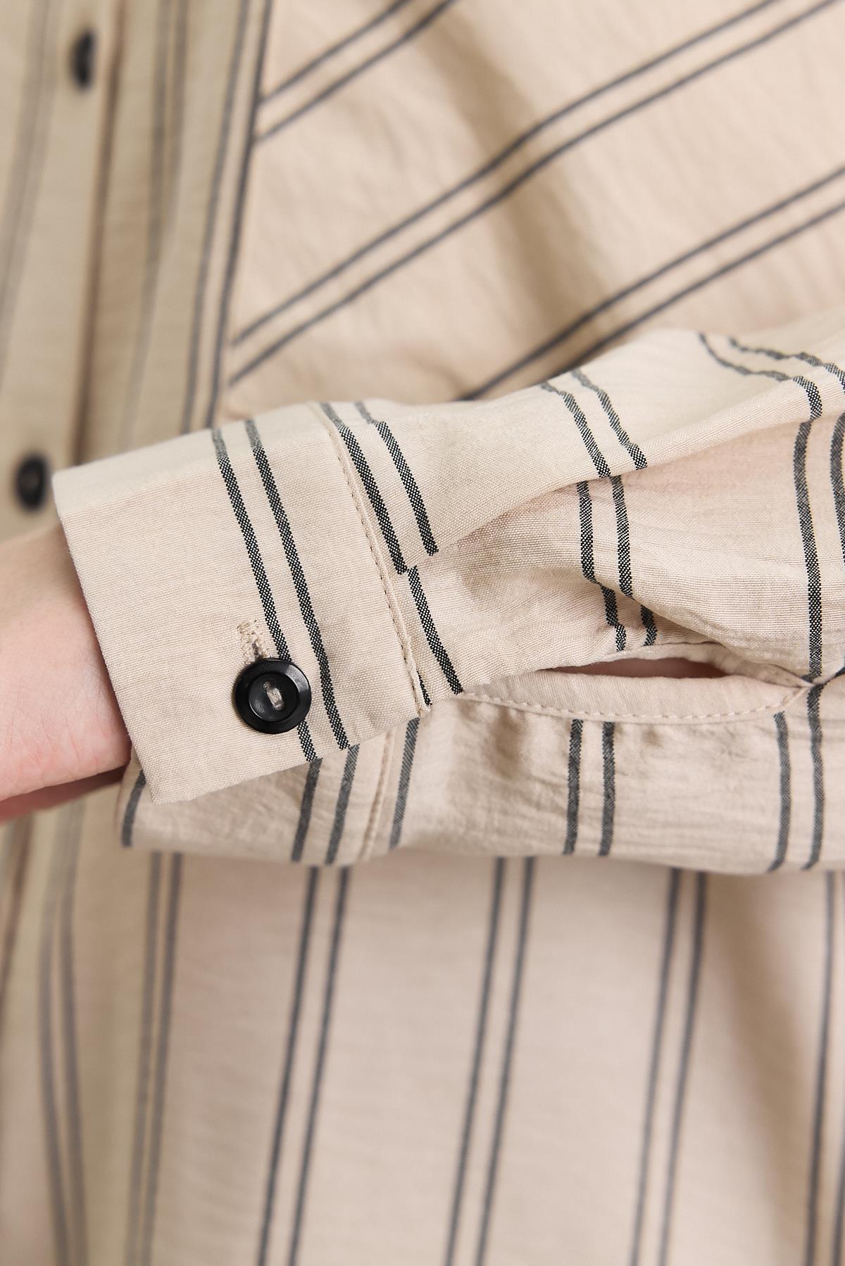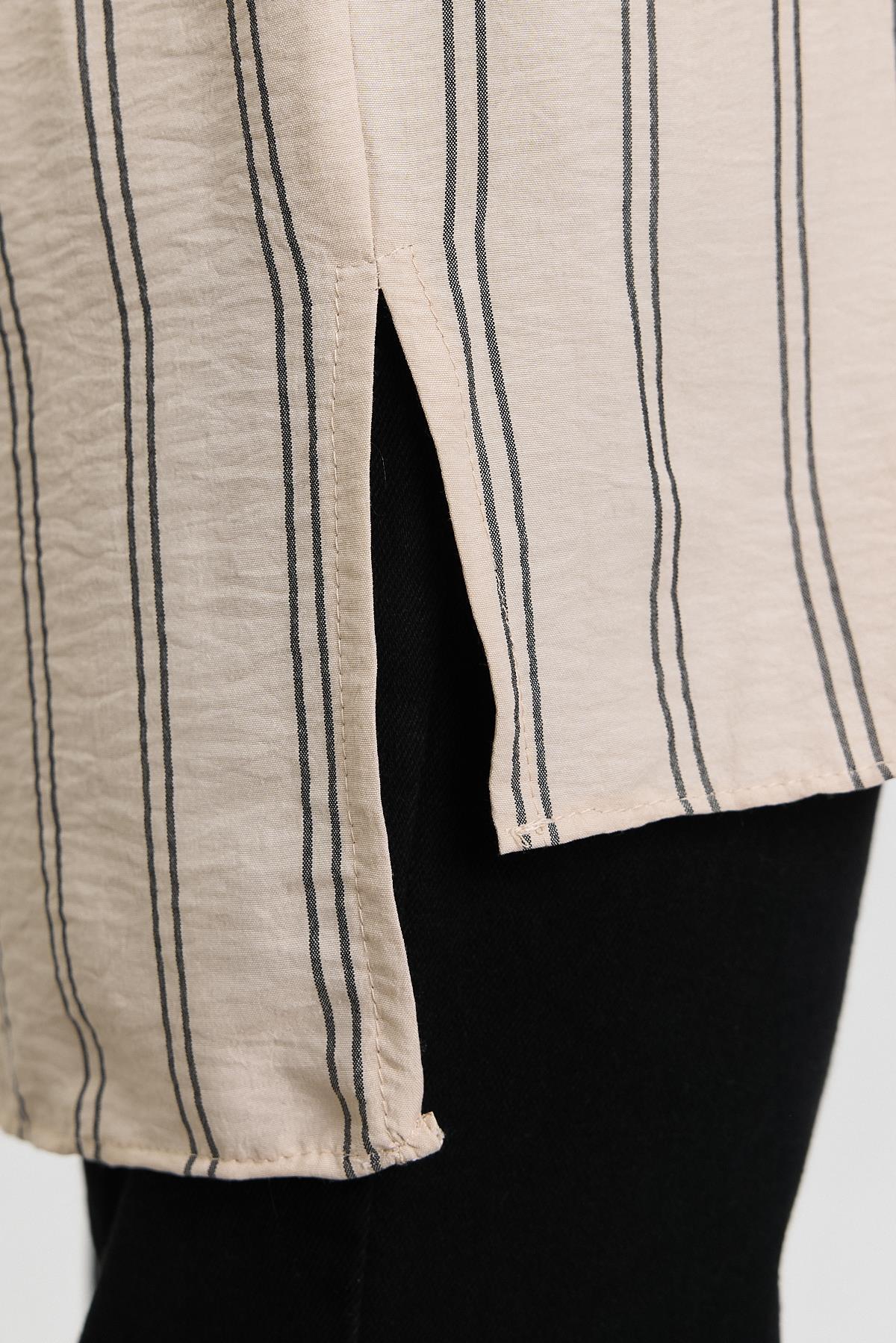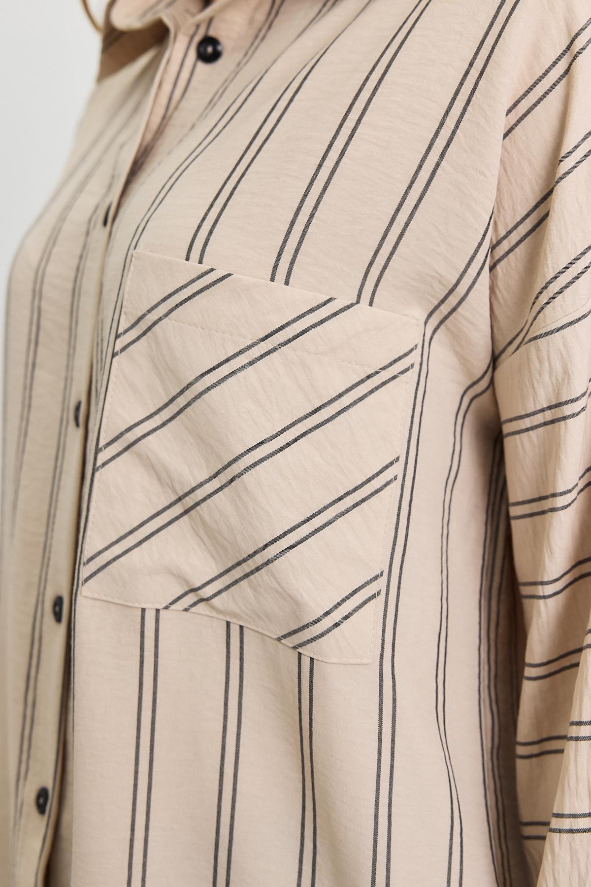 Bej Çizgili Tek Cepli Tunik 4068A