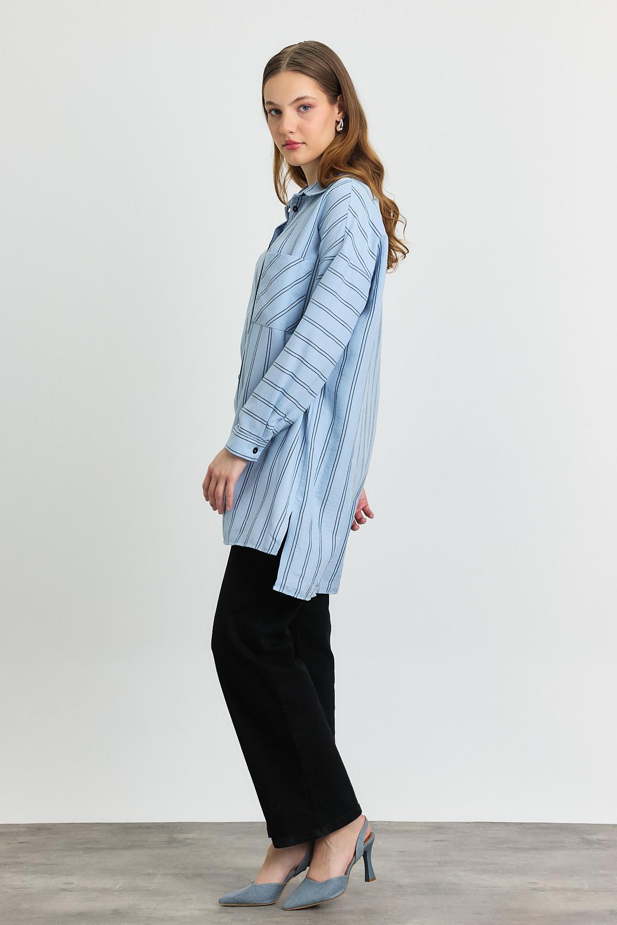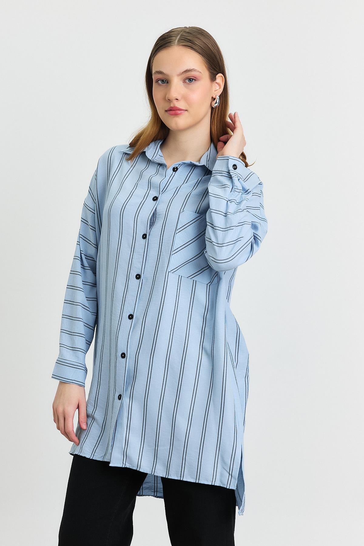 Mavi Çizgili Tek Cepli Tunik 4068A