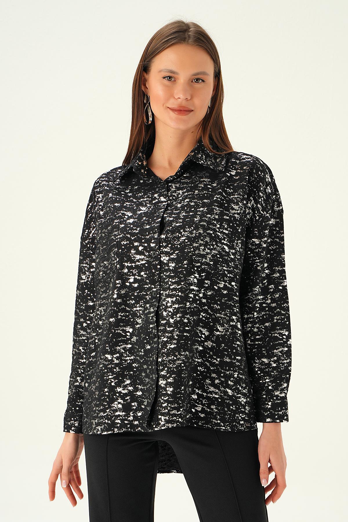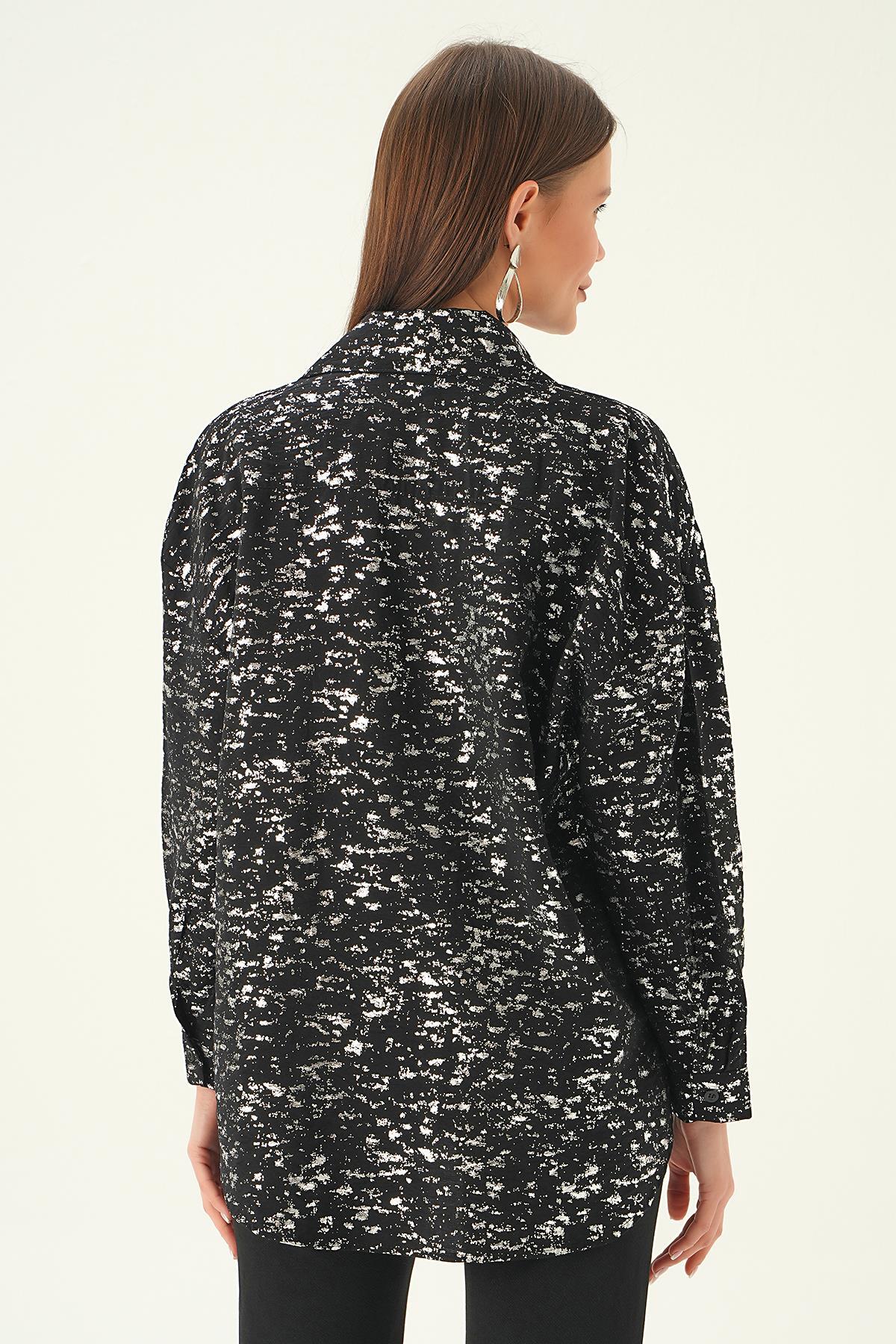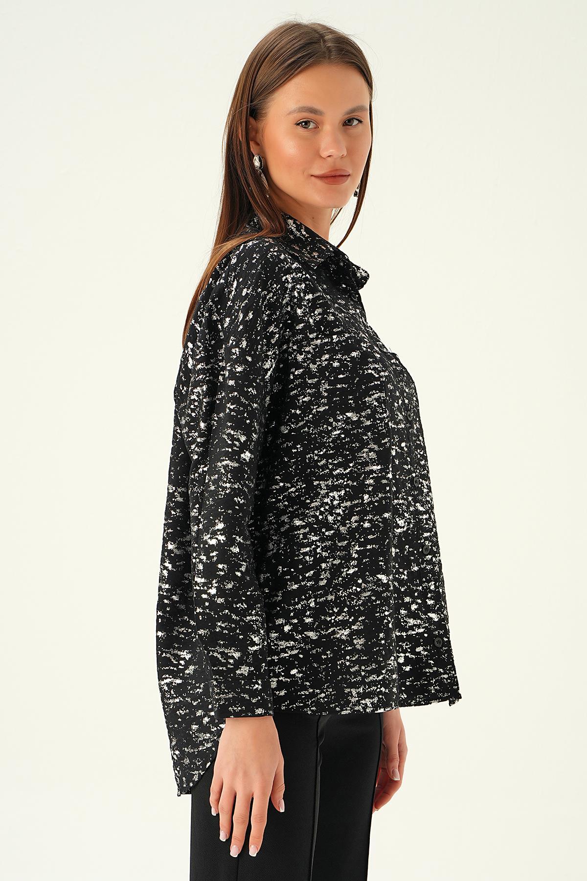 Siyah Varak Detay Gömlek 4069