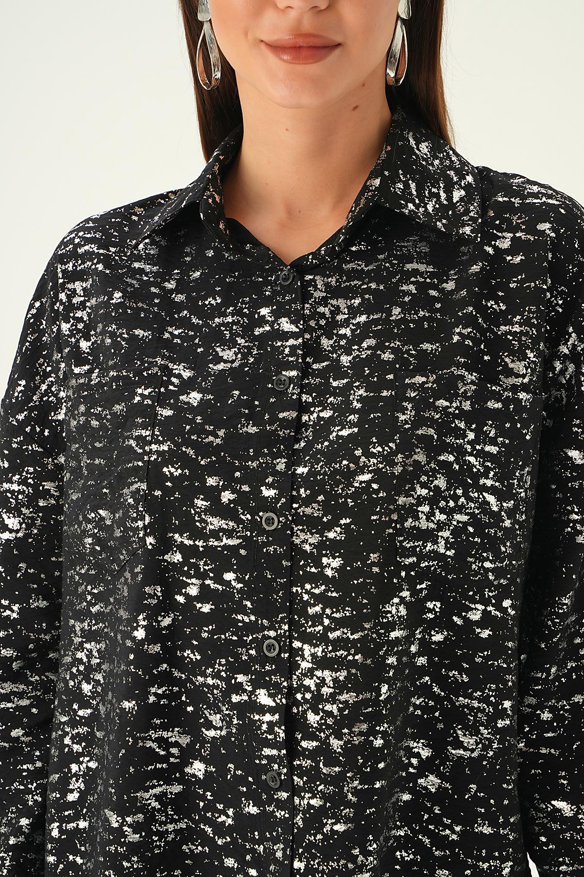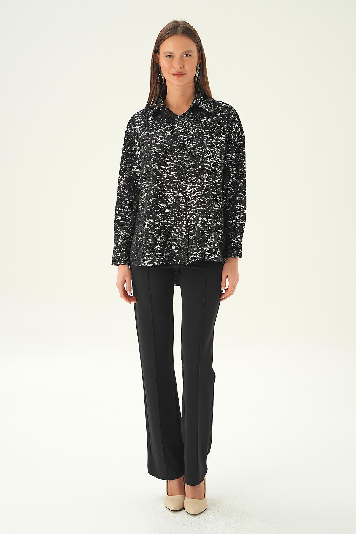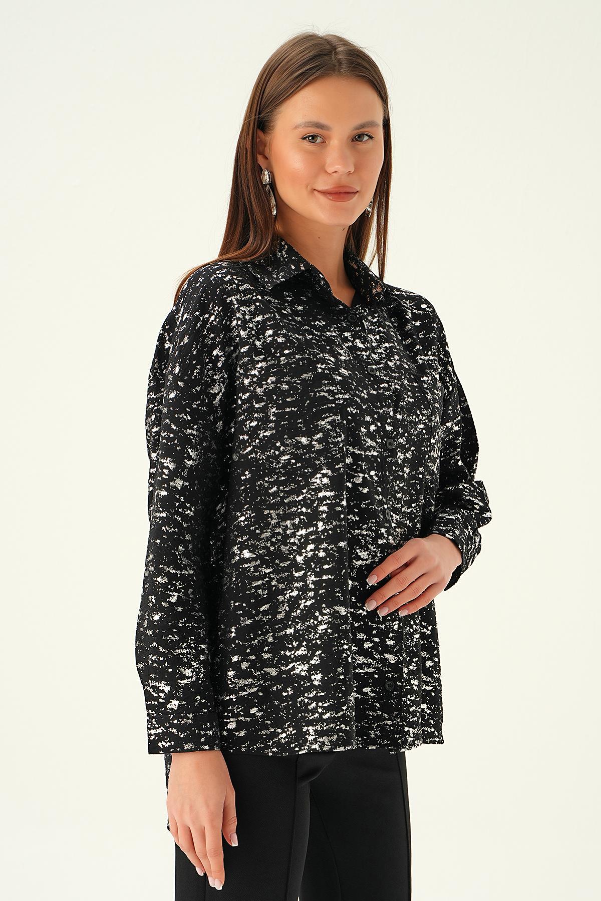 Siyah Varak Detay Gömlek 4069