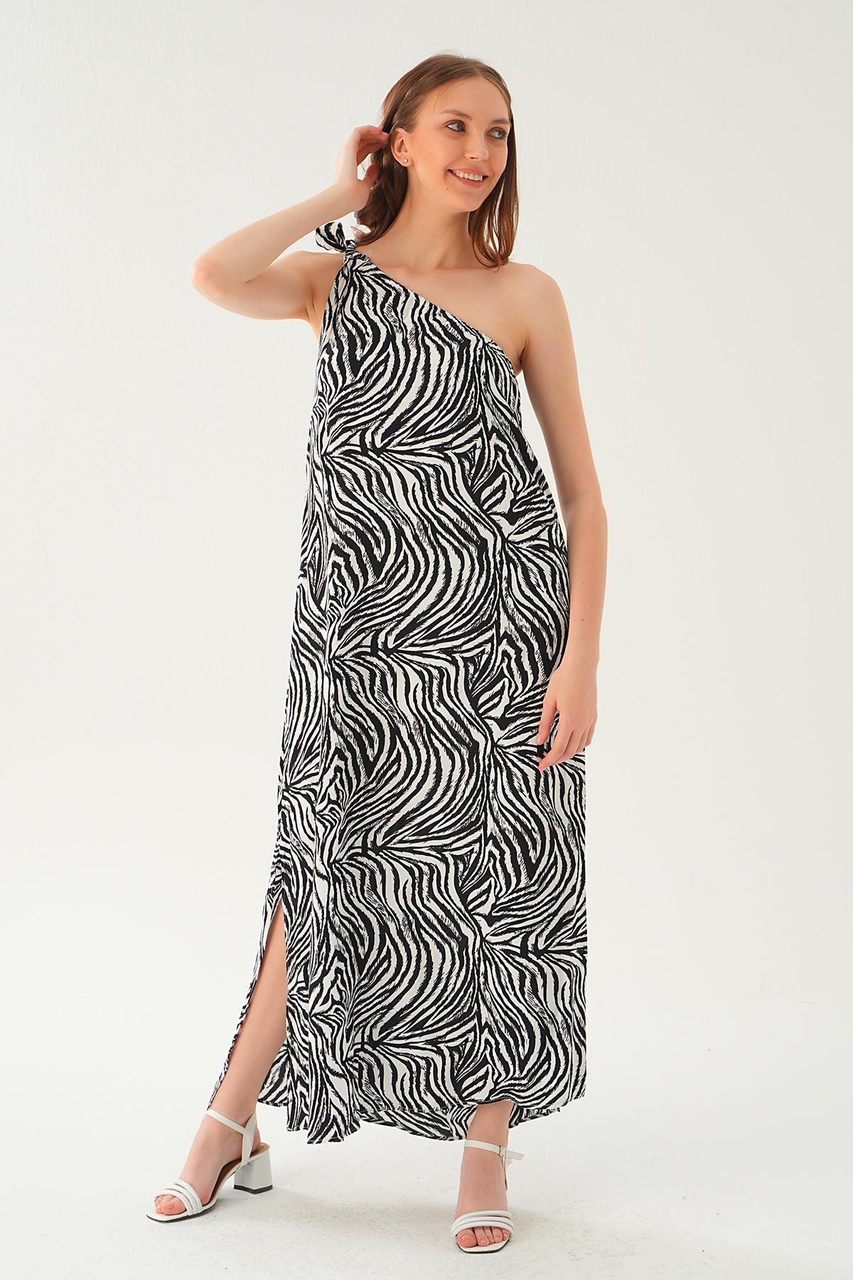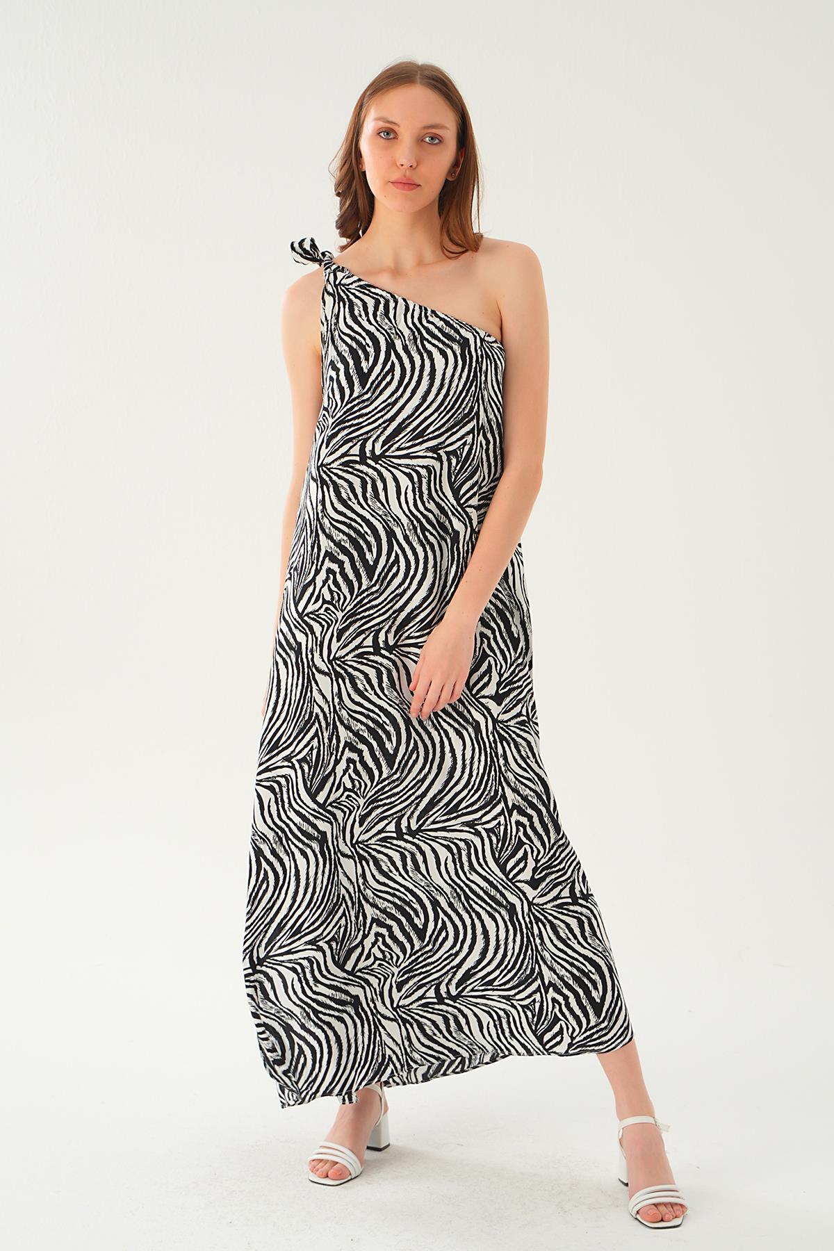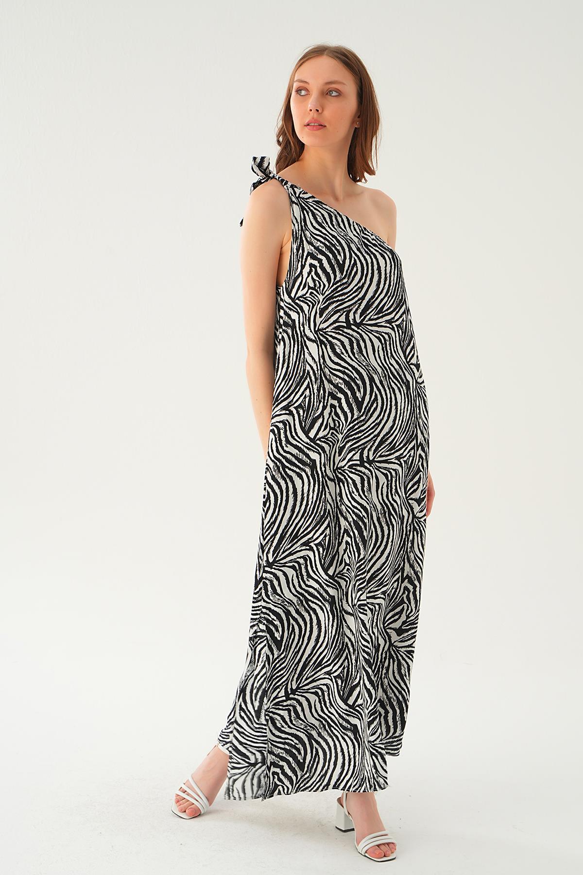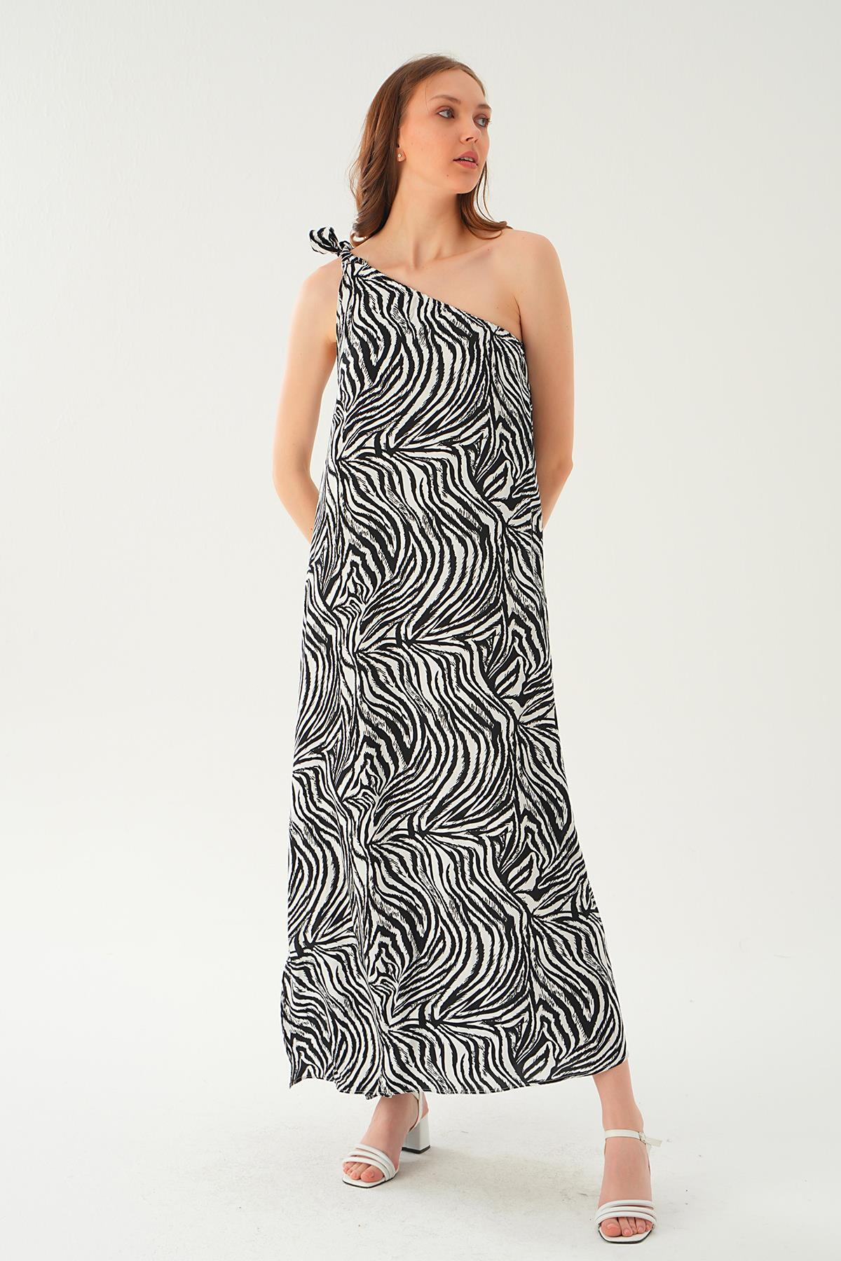 Siyah Tek Omuz Elbise 407