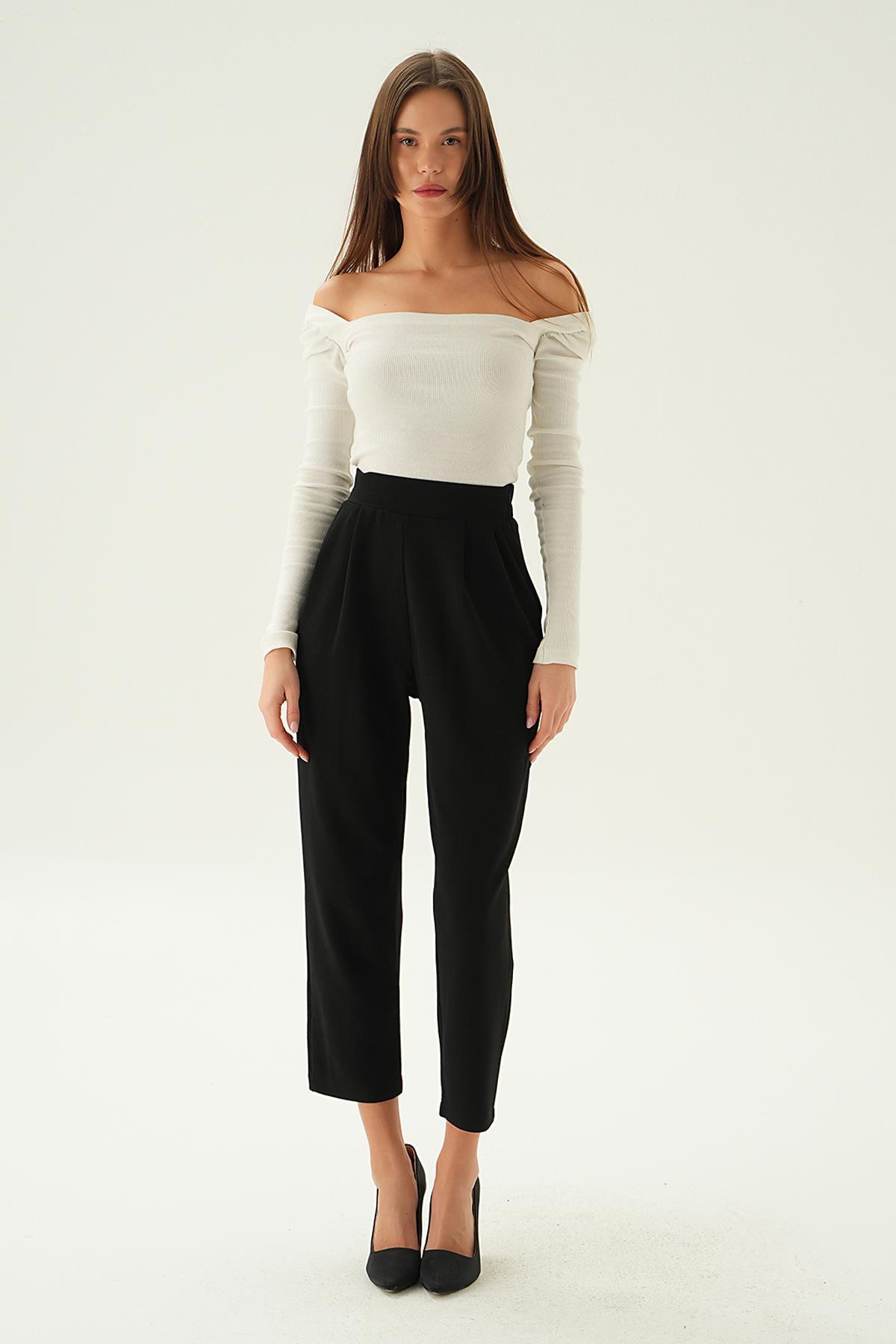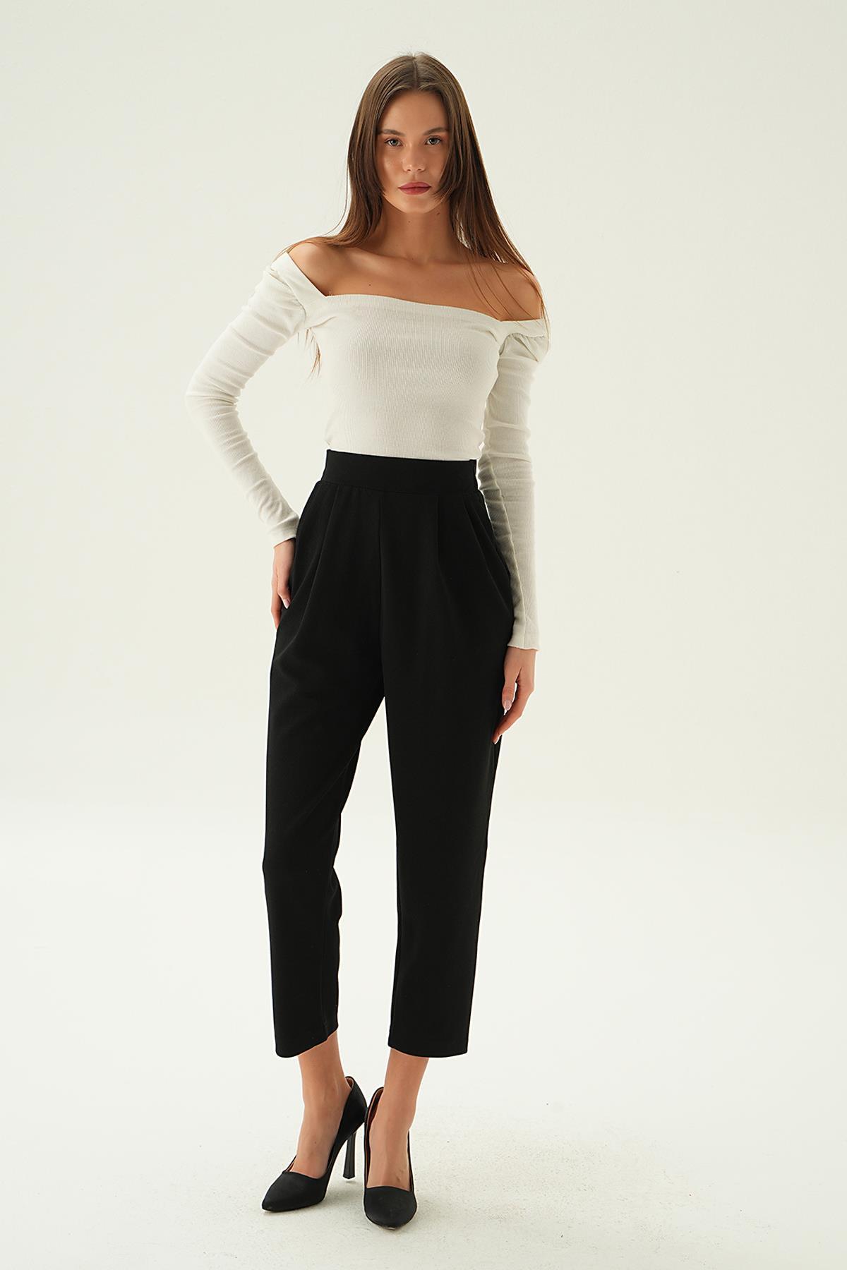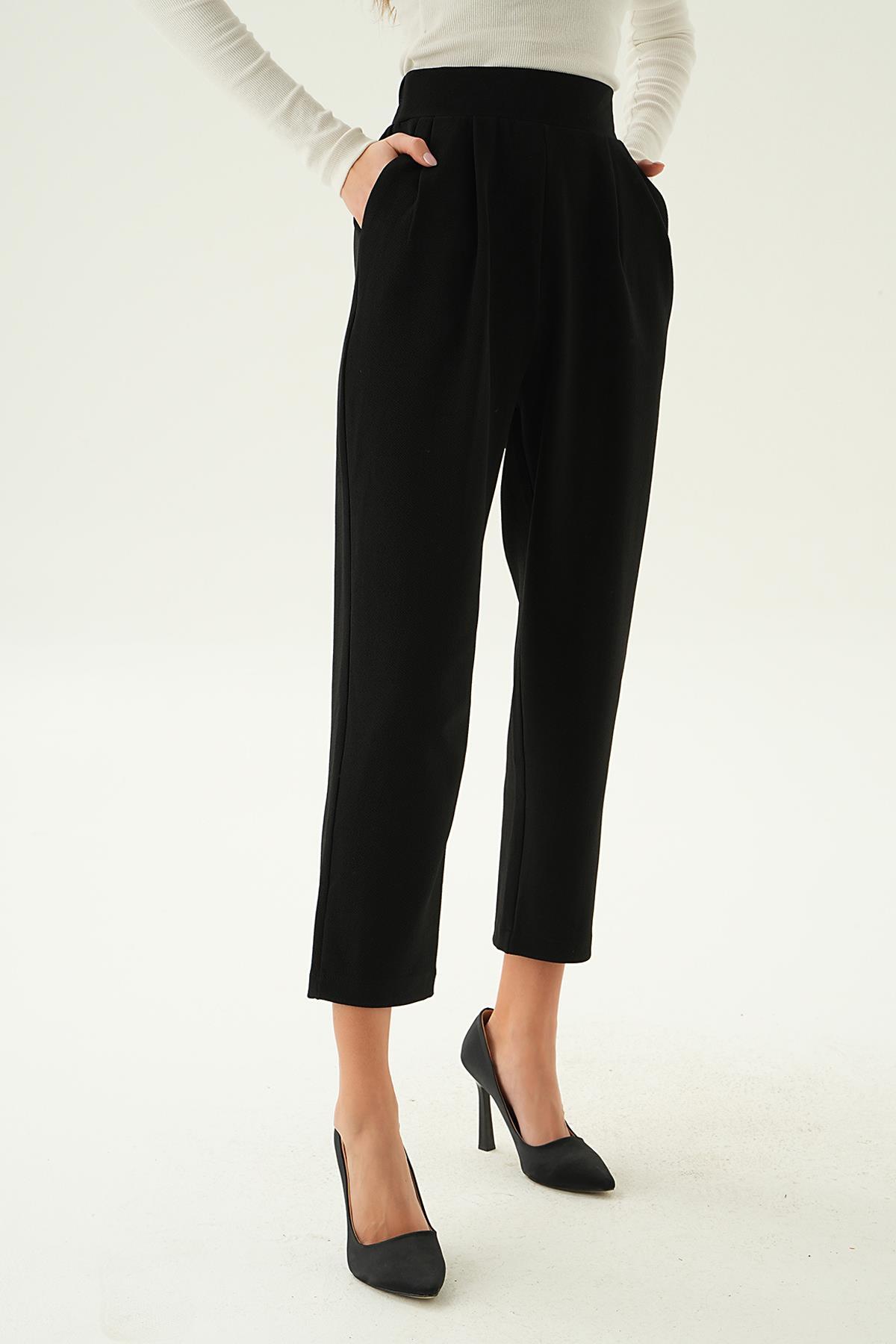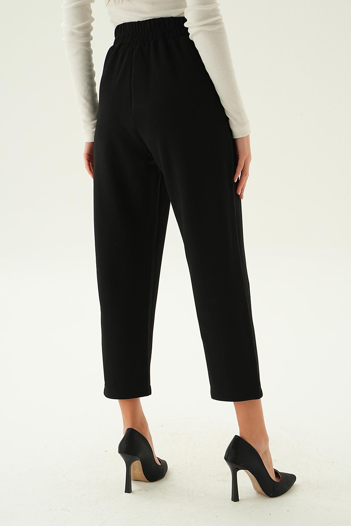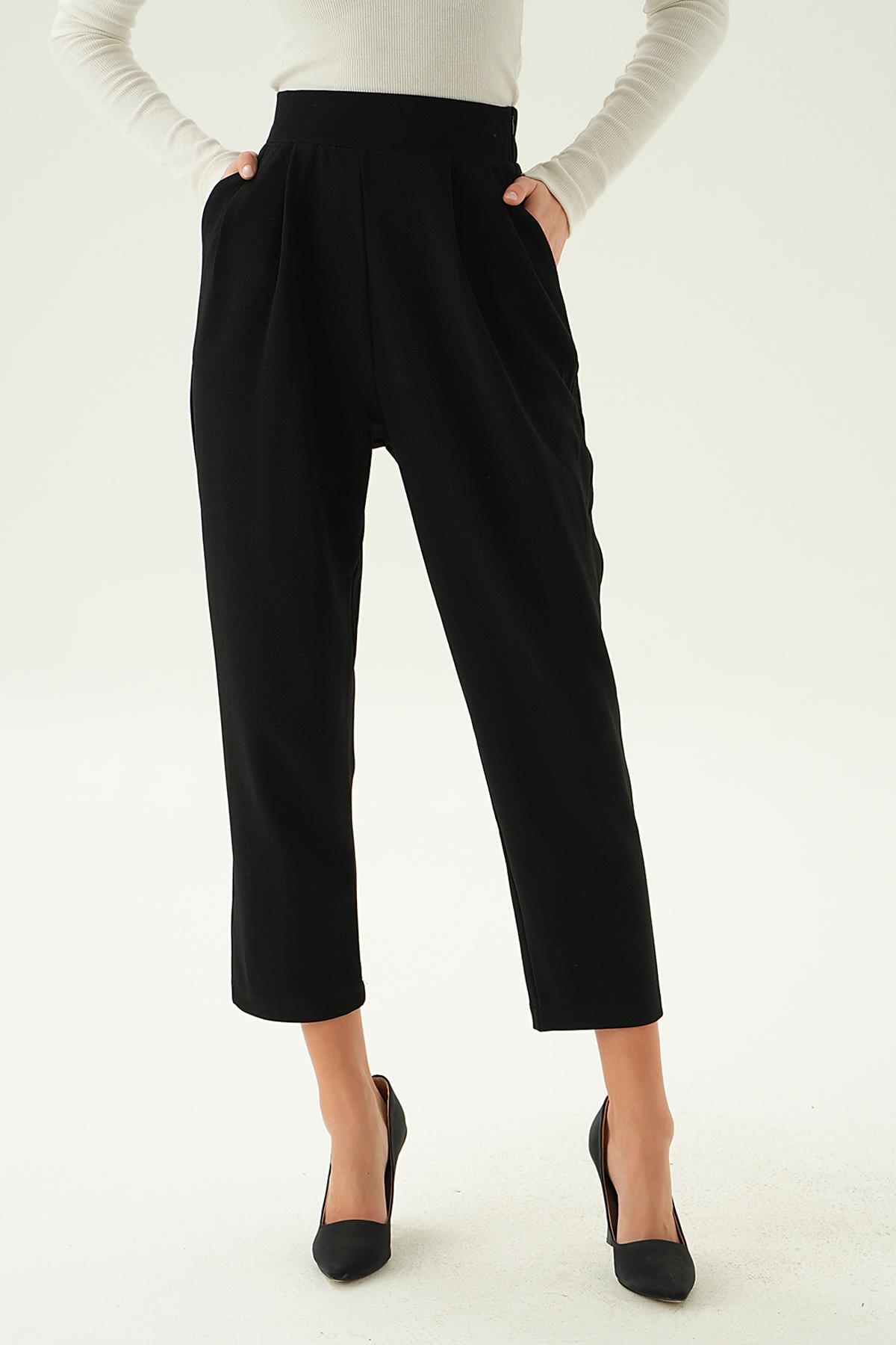 Siyah Arka Bel Lastik Pileli Pantolon 4072A