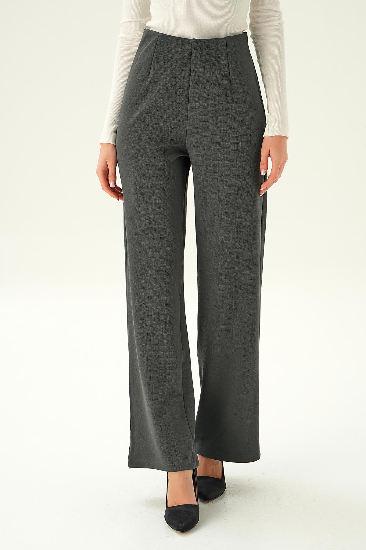 4073A Pens Detay Palazzo Pantolon Füme