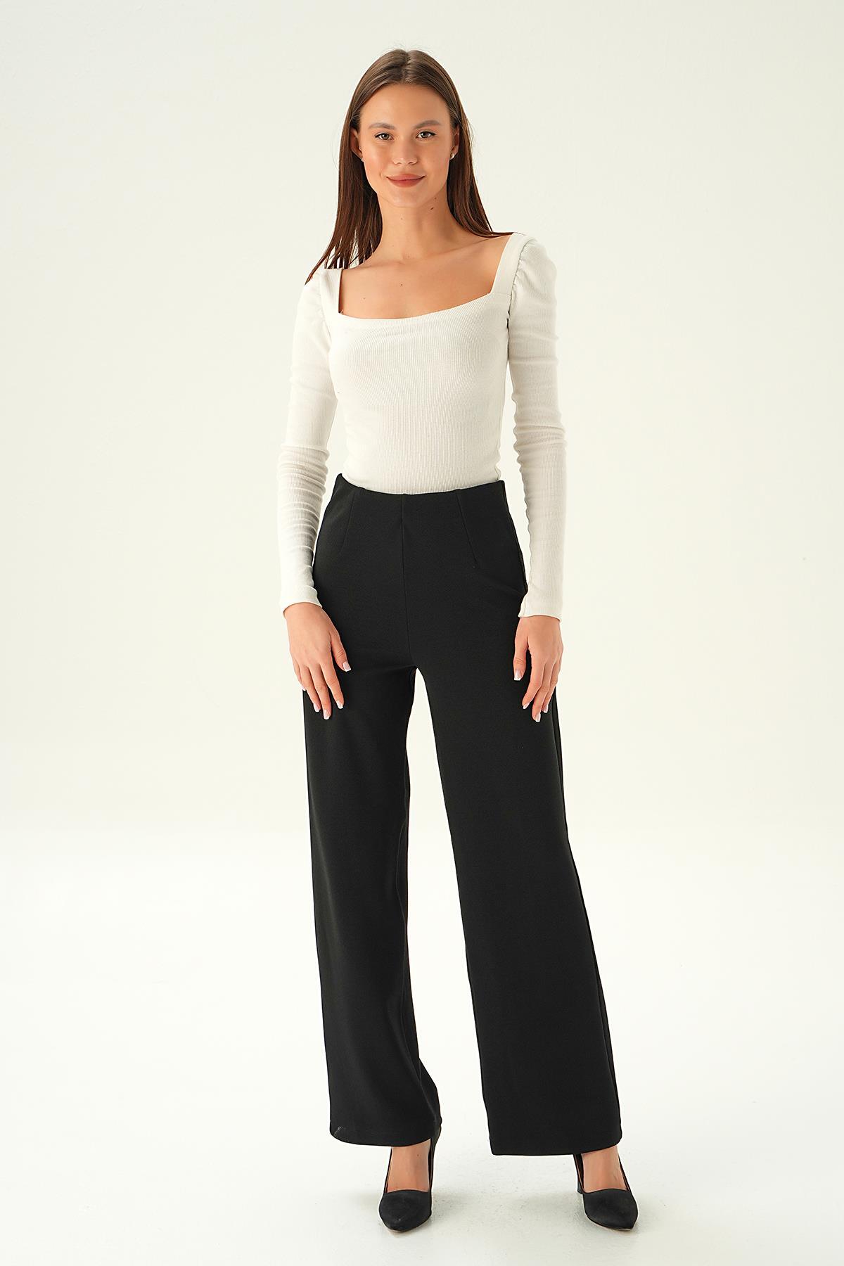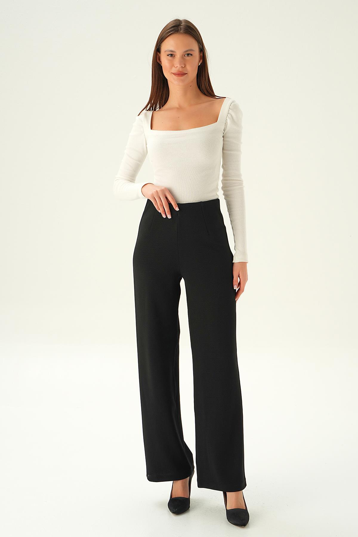 Siyah Pileli Geniş Paça Pantolon 3867 - RAYS Siyah Pileli Geniş Paça Pantolon 3867 - RAYS (1)